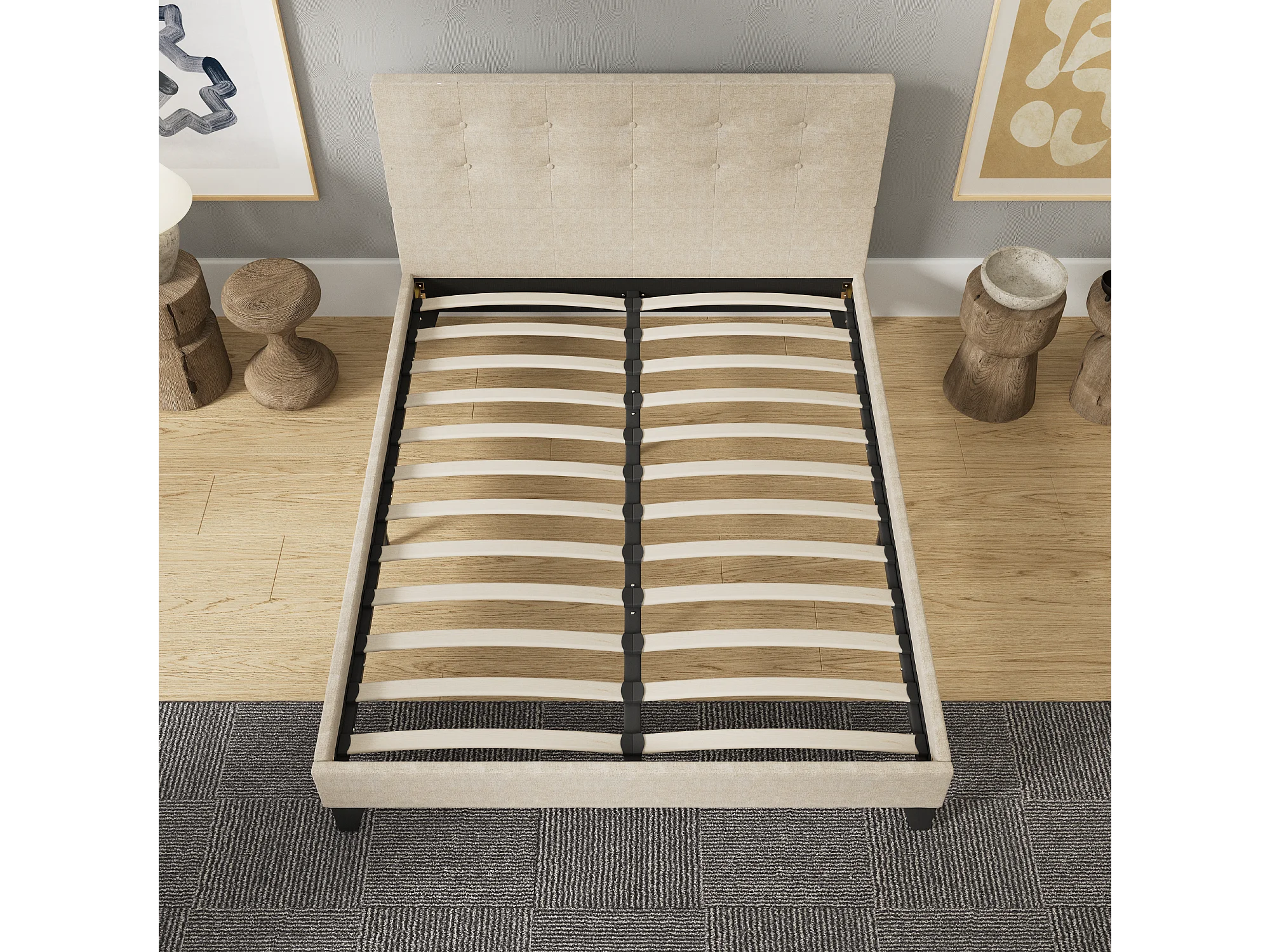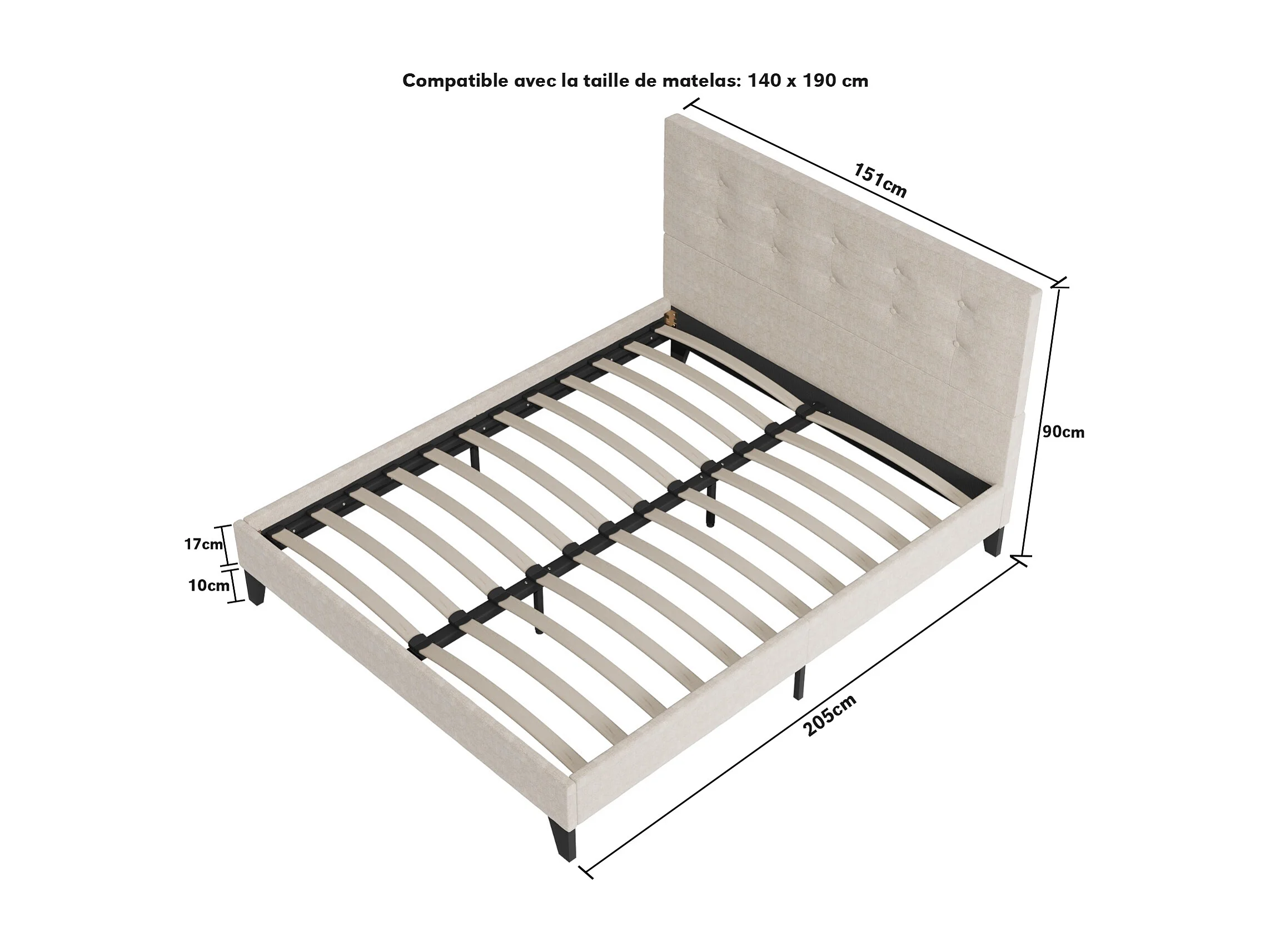 Lit 140x190 cm avec tête de lit tissu couleur lin