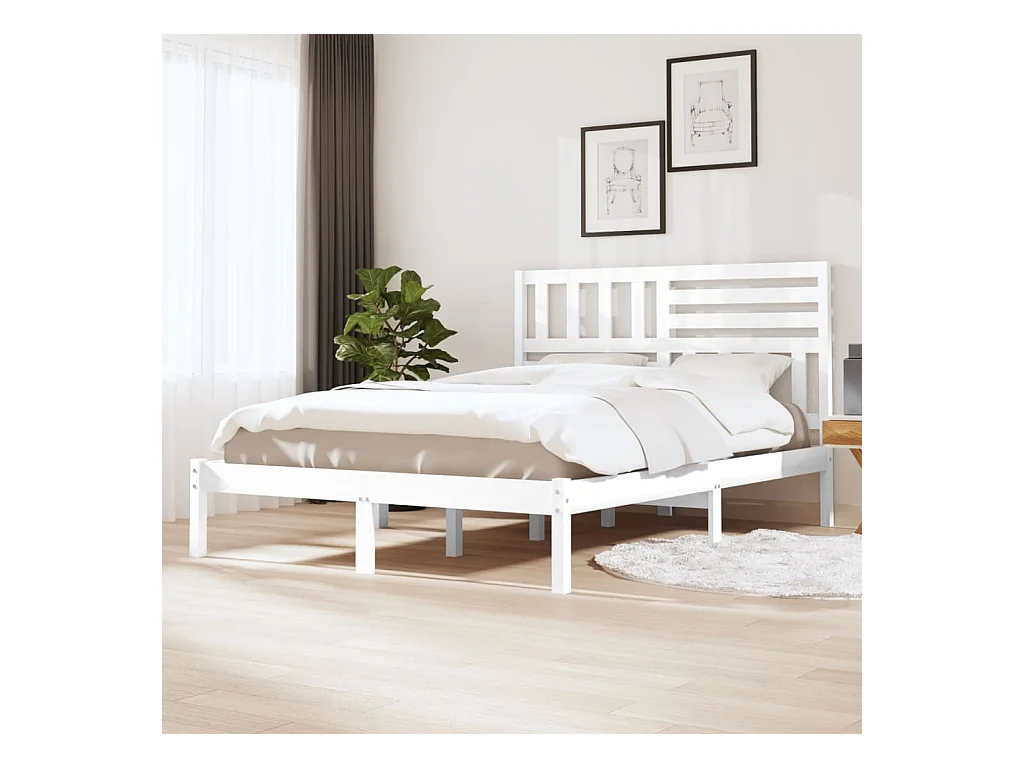 Lit-140x190 cm Blanc Bois de pin massif EGGB14650