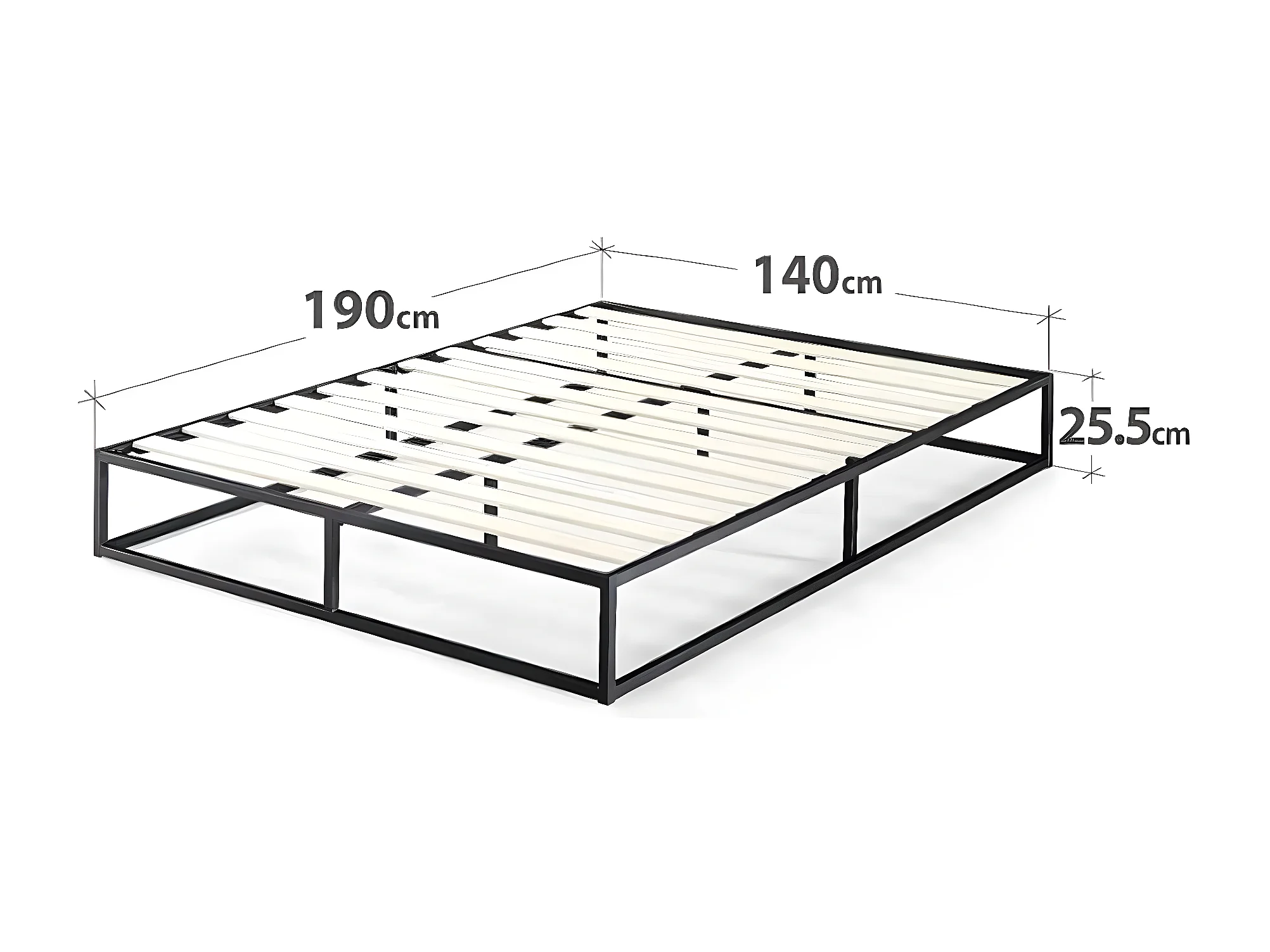 Lit 140 x 190 cm en métal - Lit double - Noir - Joseph