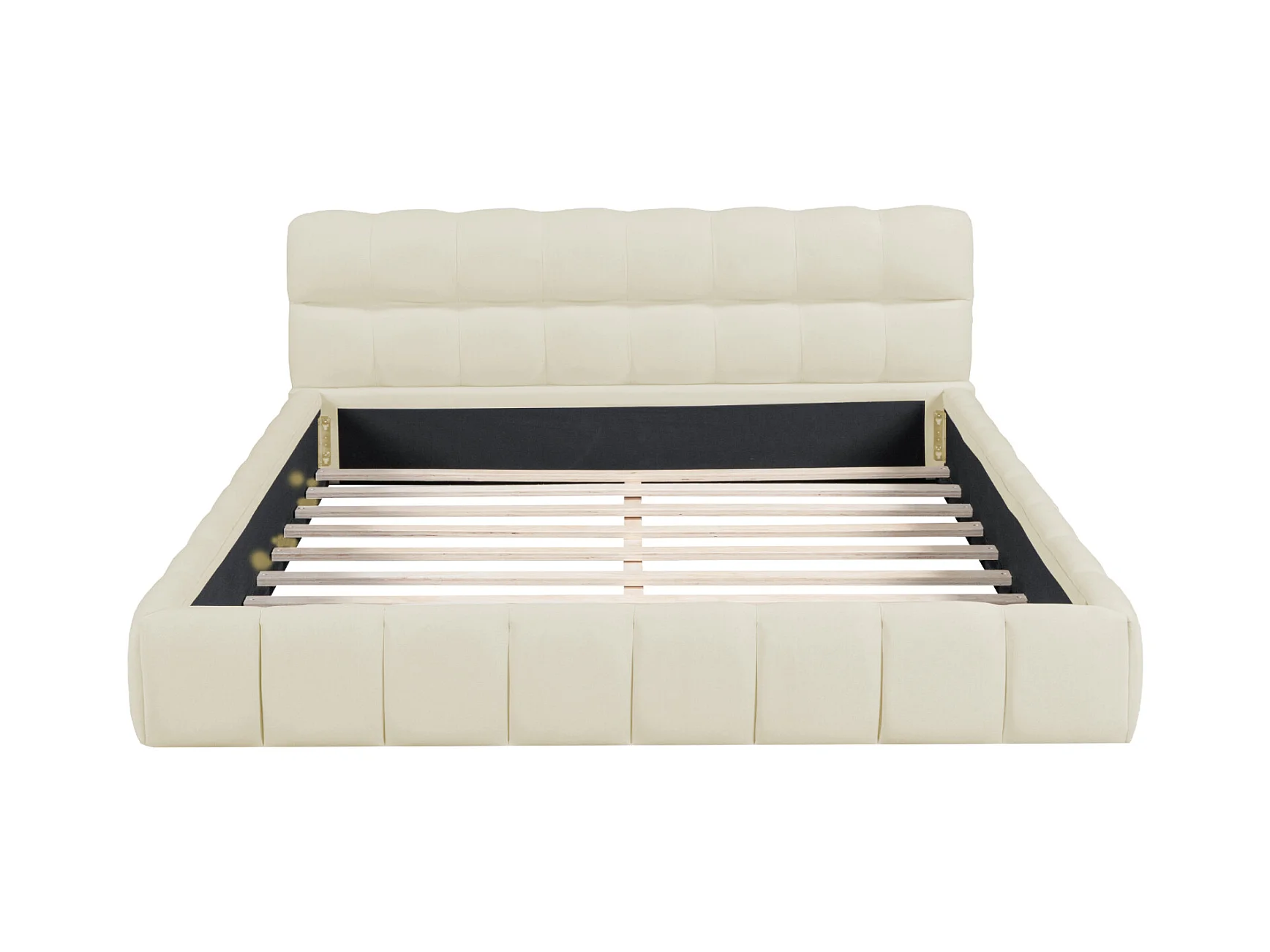Lit 140x190 cm avec sommier à lattes - NEXU - Style crémeux - Lit capitonné en tissu lin 140x200 cm - lit adulte 140x190 cm - cadre de lit 140x190 cm - beige
