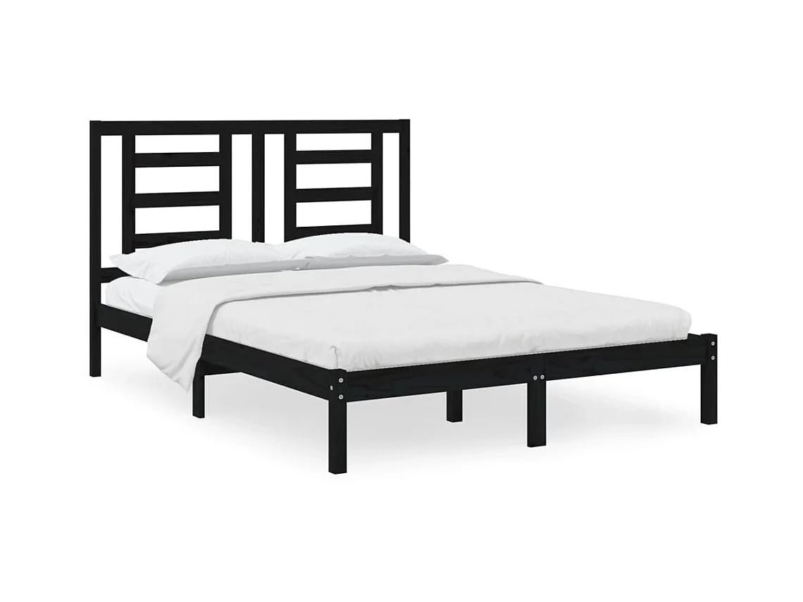 Lit-140x190 cm Noir Bois de pin massif EGGB12088