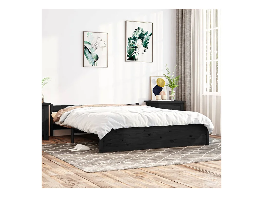 Lit-140x190 cm Noir Bois massif EGGB36357