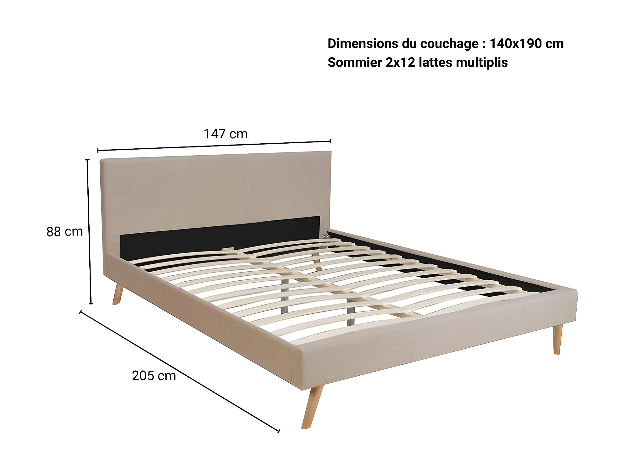 Lit FJORD 140x190 tissu + 1 sommier / Beige