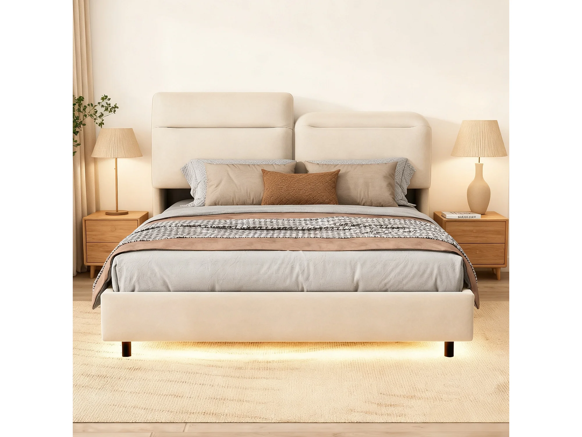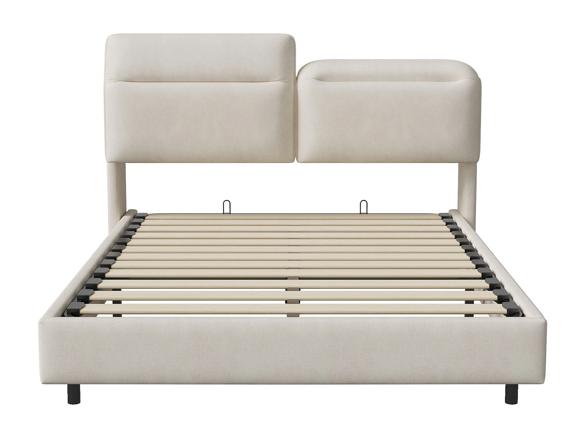 Lit 140x200 cm à tête de lit pliante avec sommier à lattes - cadre de lit coffre 140x200 cm - Lit adulte 140x200 cm soldes - tissu en velours - blanc cassé