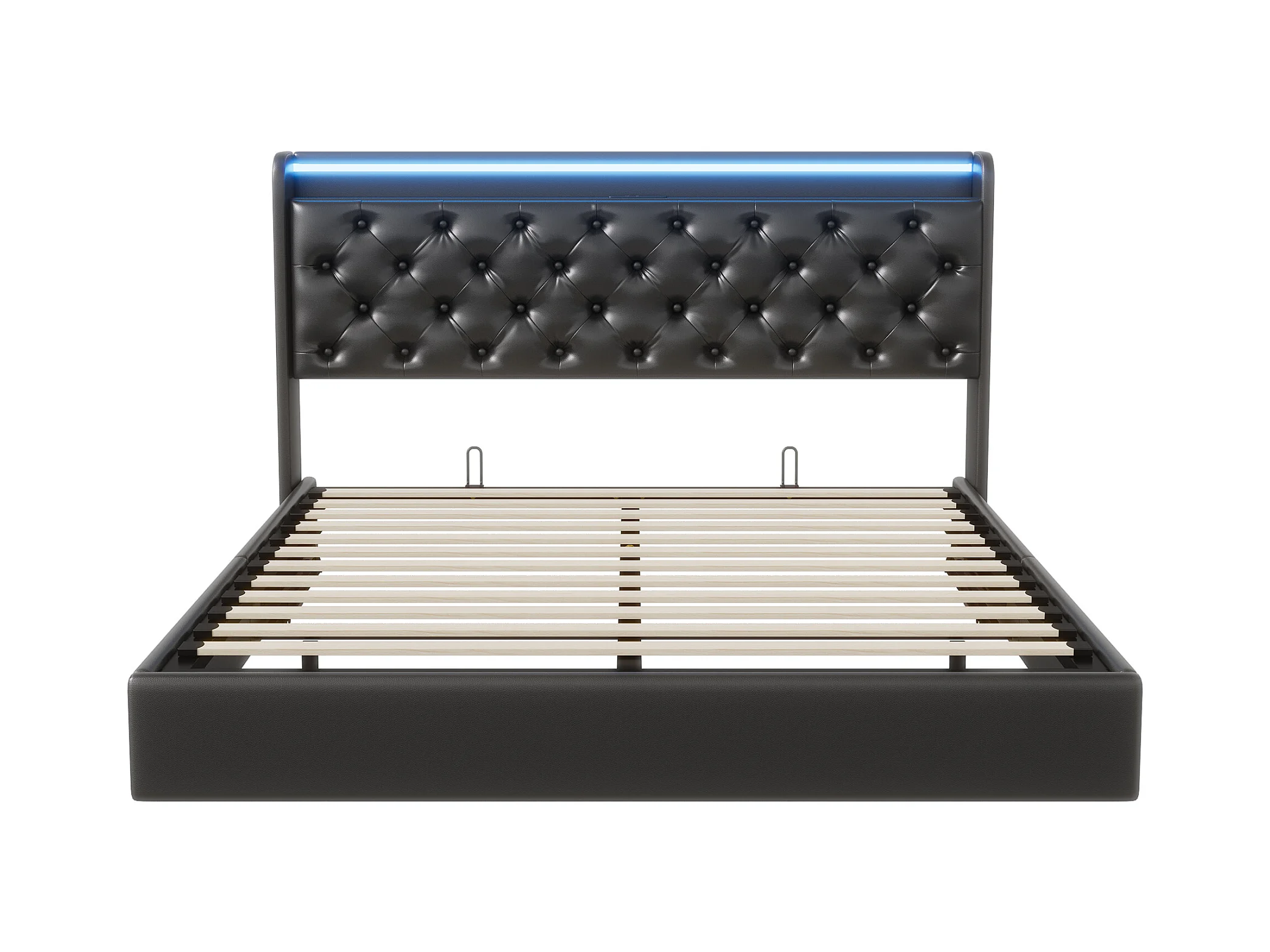 Lit flottant 160x200 cm avec sommier à lattes - cadre de lit coffre 160x200 cm avec LED et USB - Lit adulte 160x200 cm soldes - tissu en PU - noir