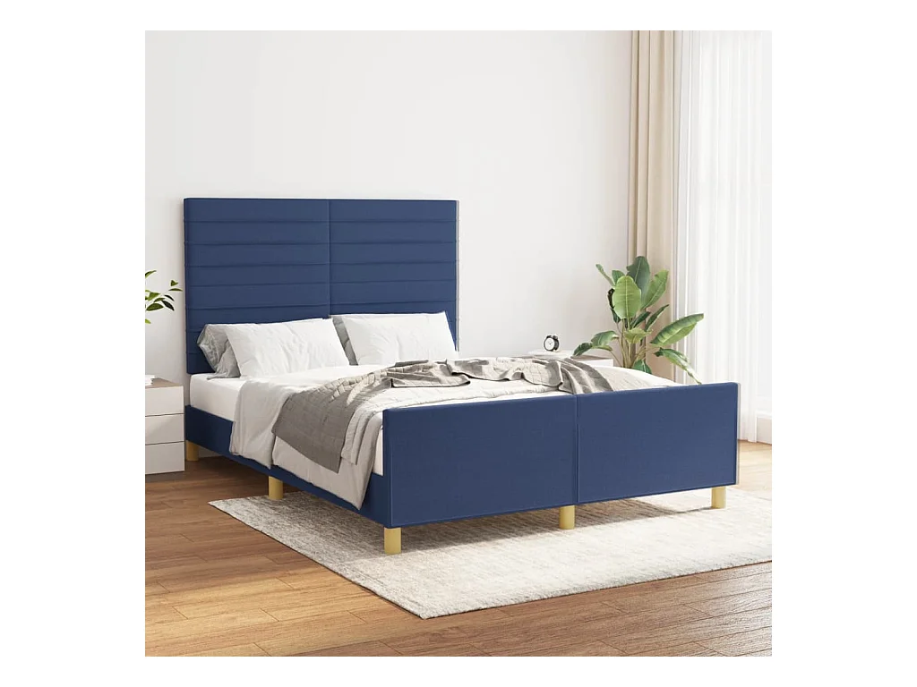 Lit-140x200 cm avec tête de lit Bleu Tissu EGGB45211