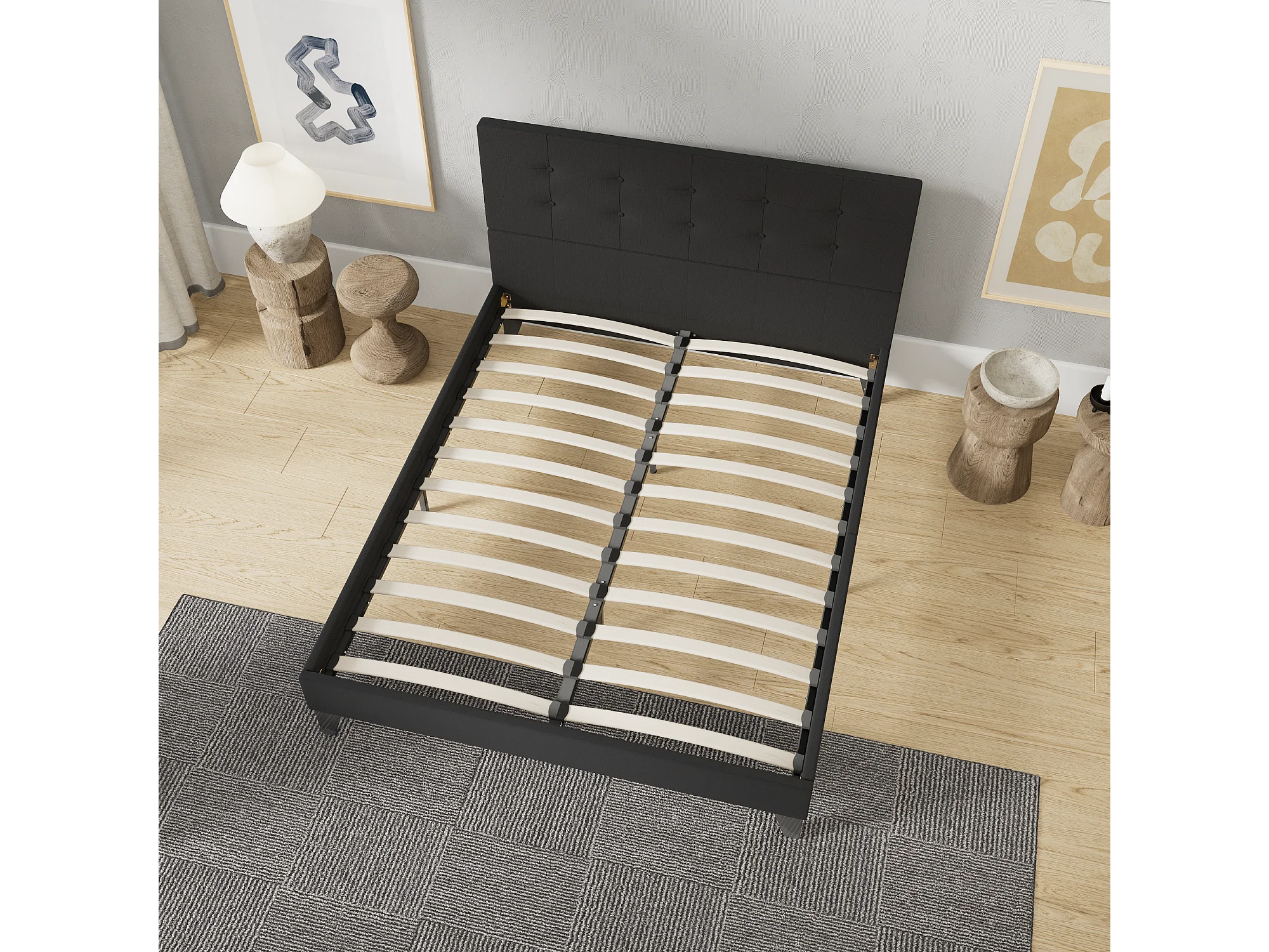Lit 140x200 cm avec tête de lit tissu couleur noir