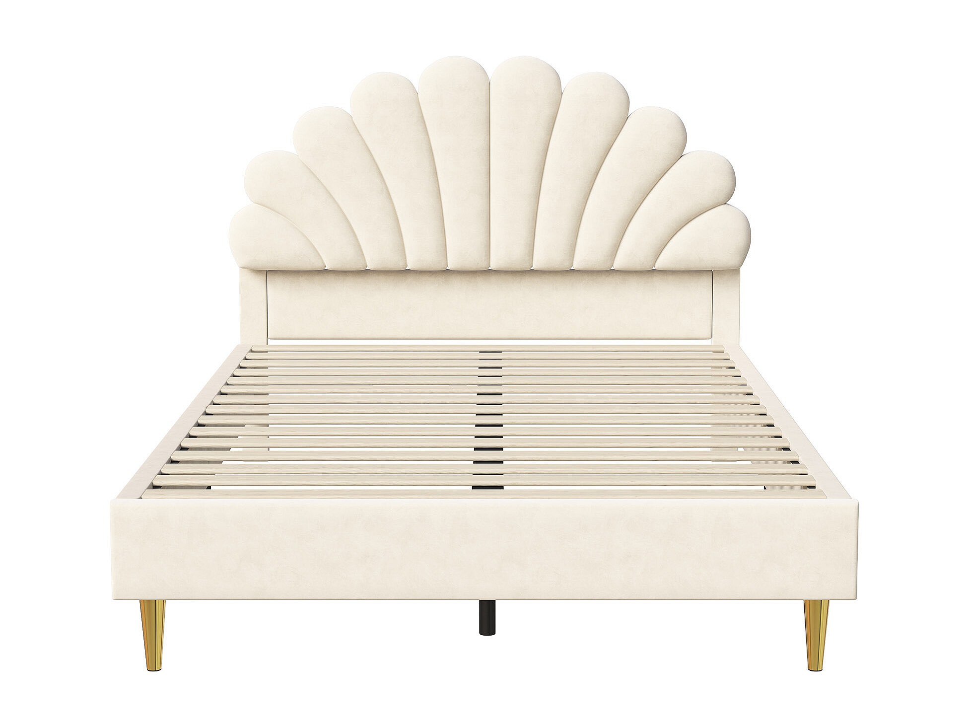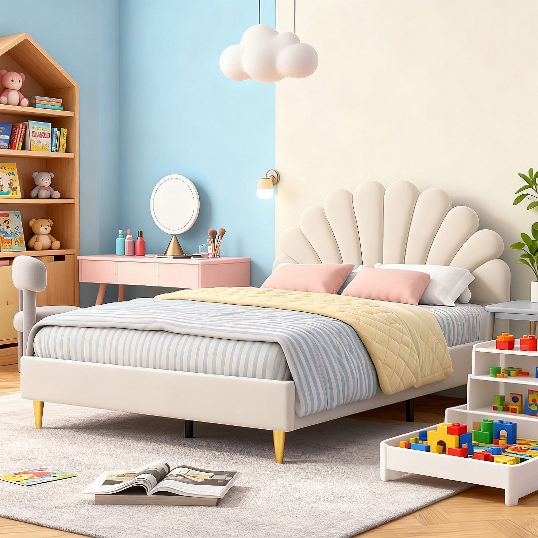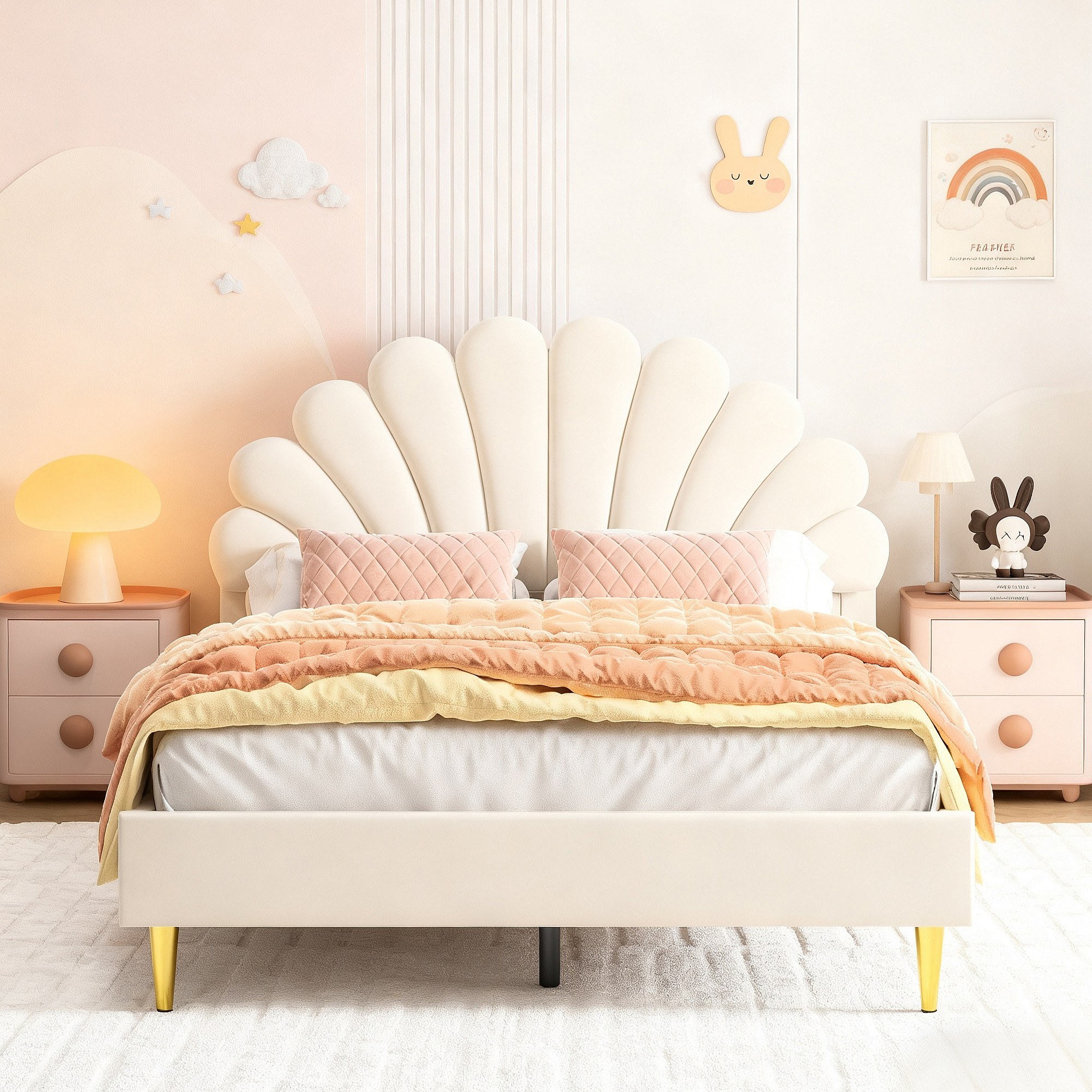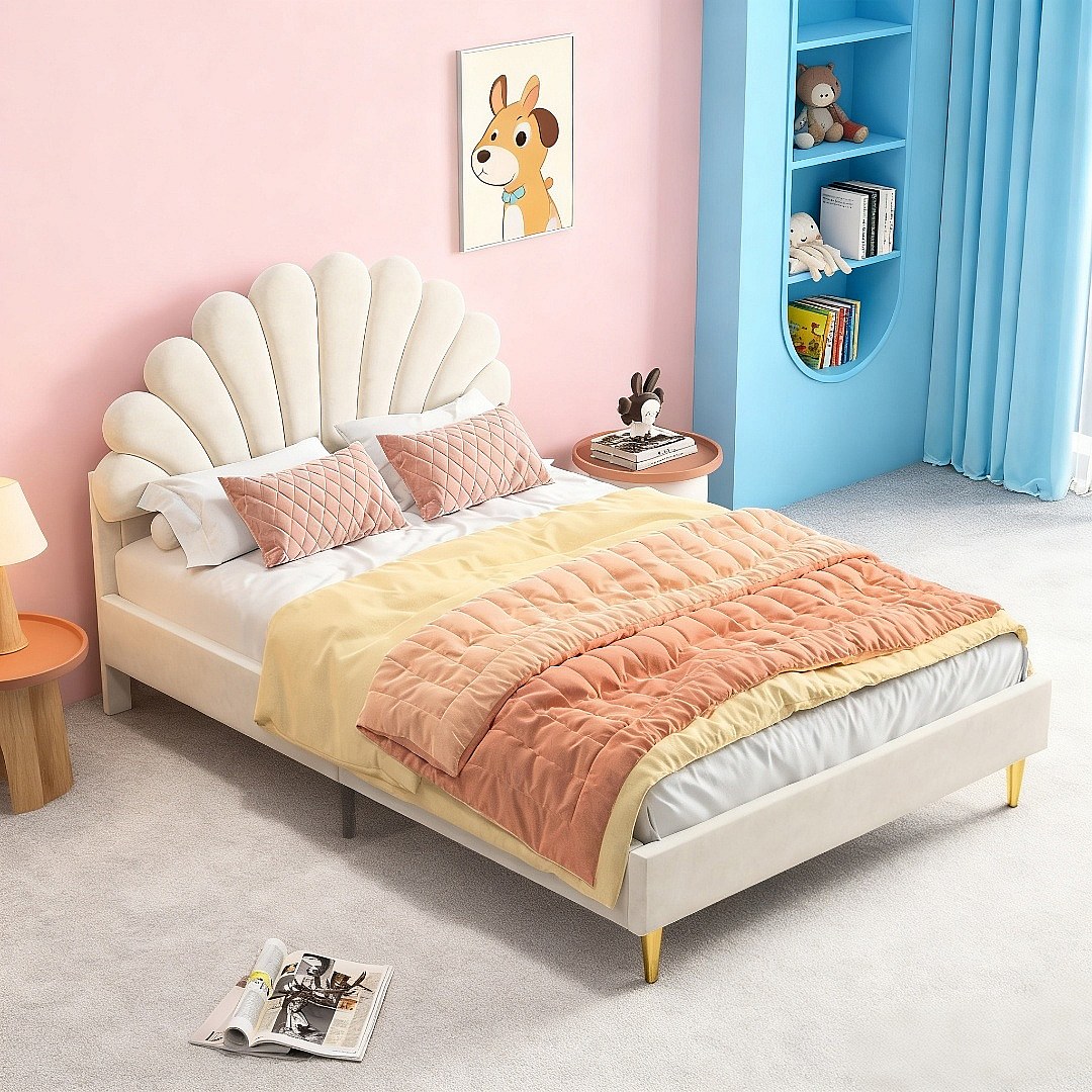 Lit 140x200 cm - lit enfant 140x200 cm - lit 1 place 140 x200 cm - lit pétale 140x200 cm - lit rembourré 140 x 200 cm -lit 140x200 cm tissu en velours - beige