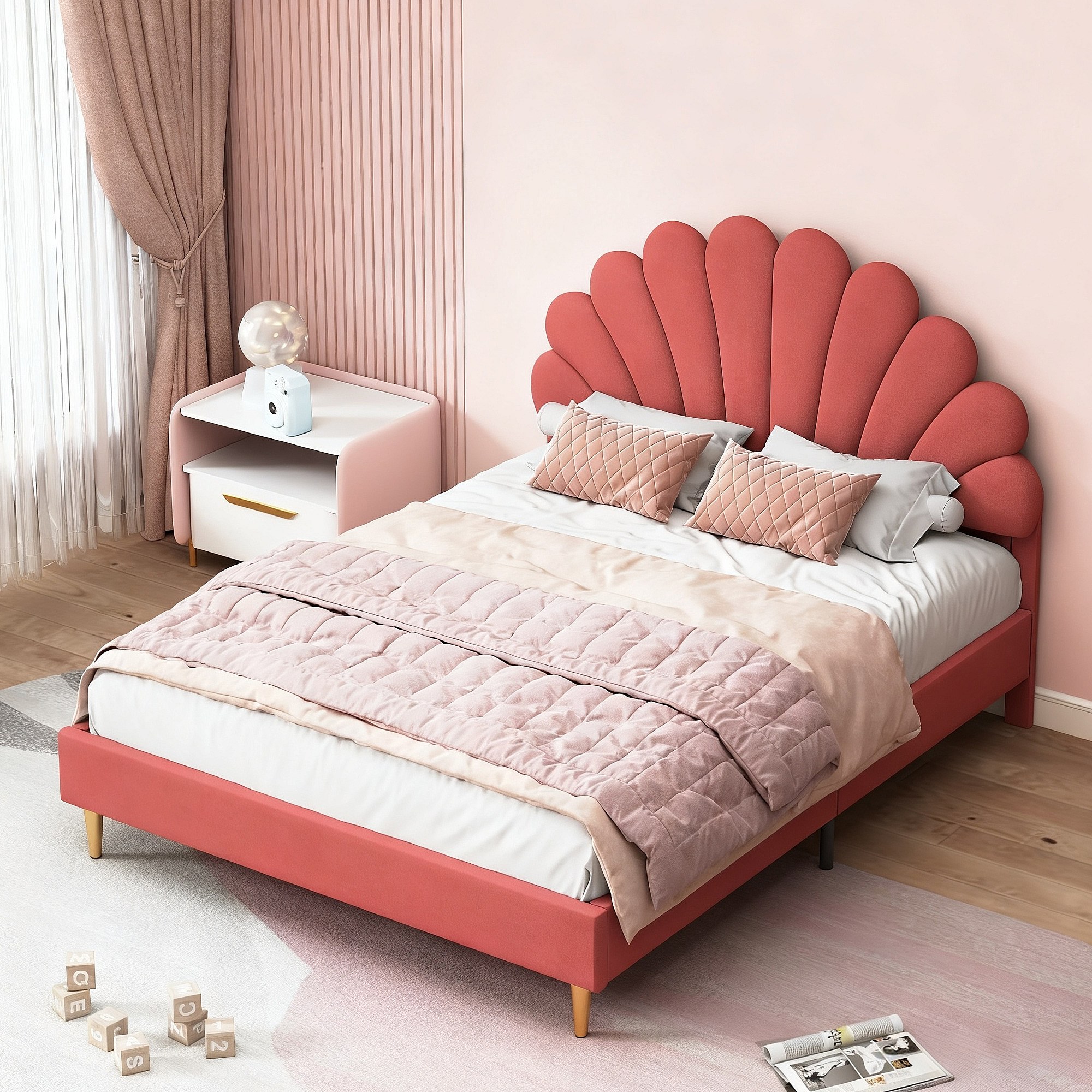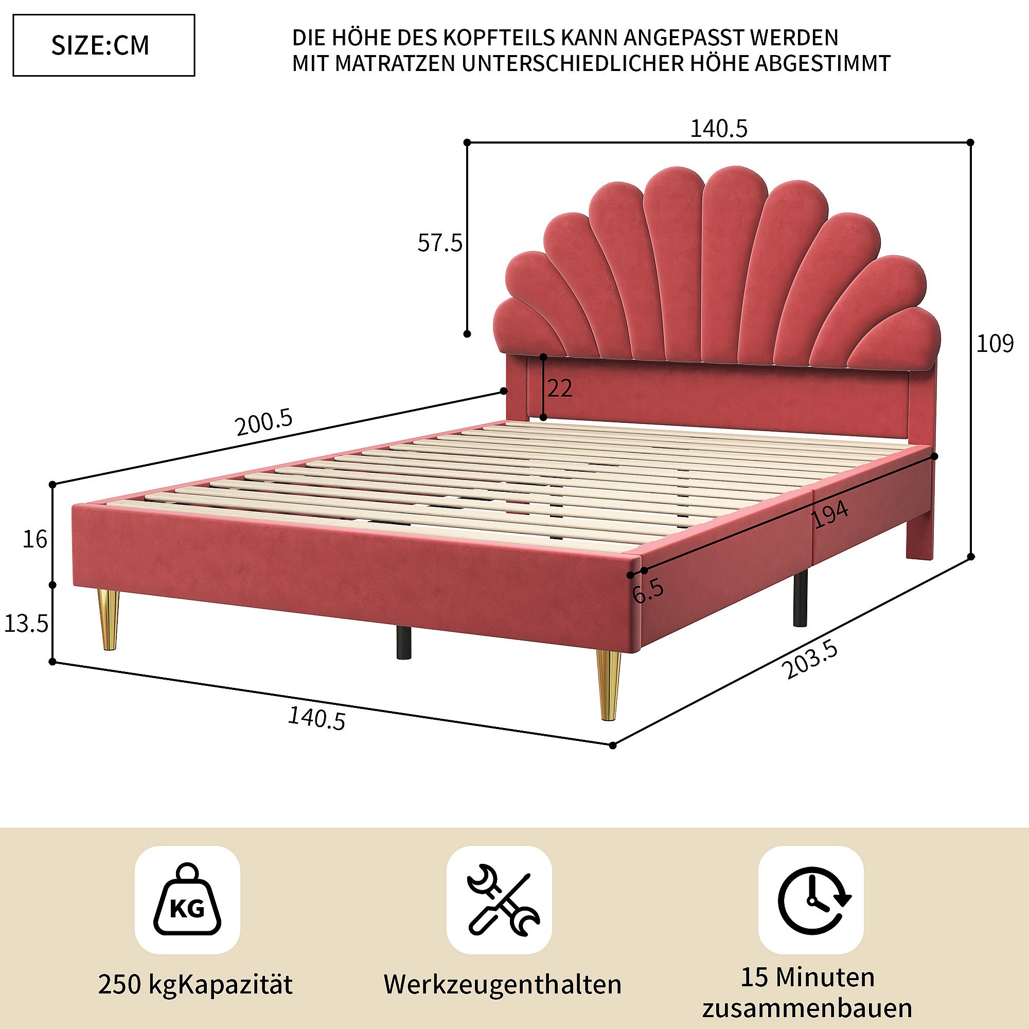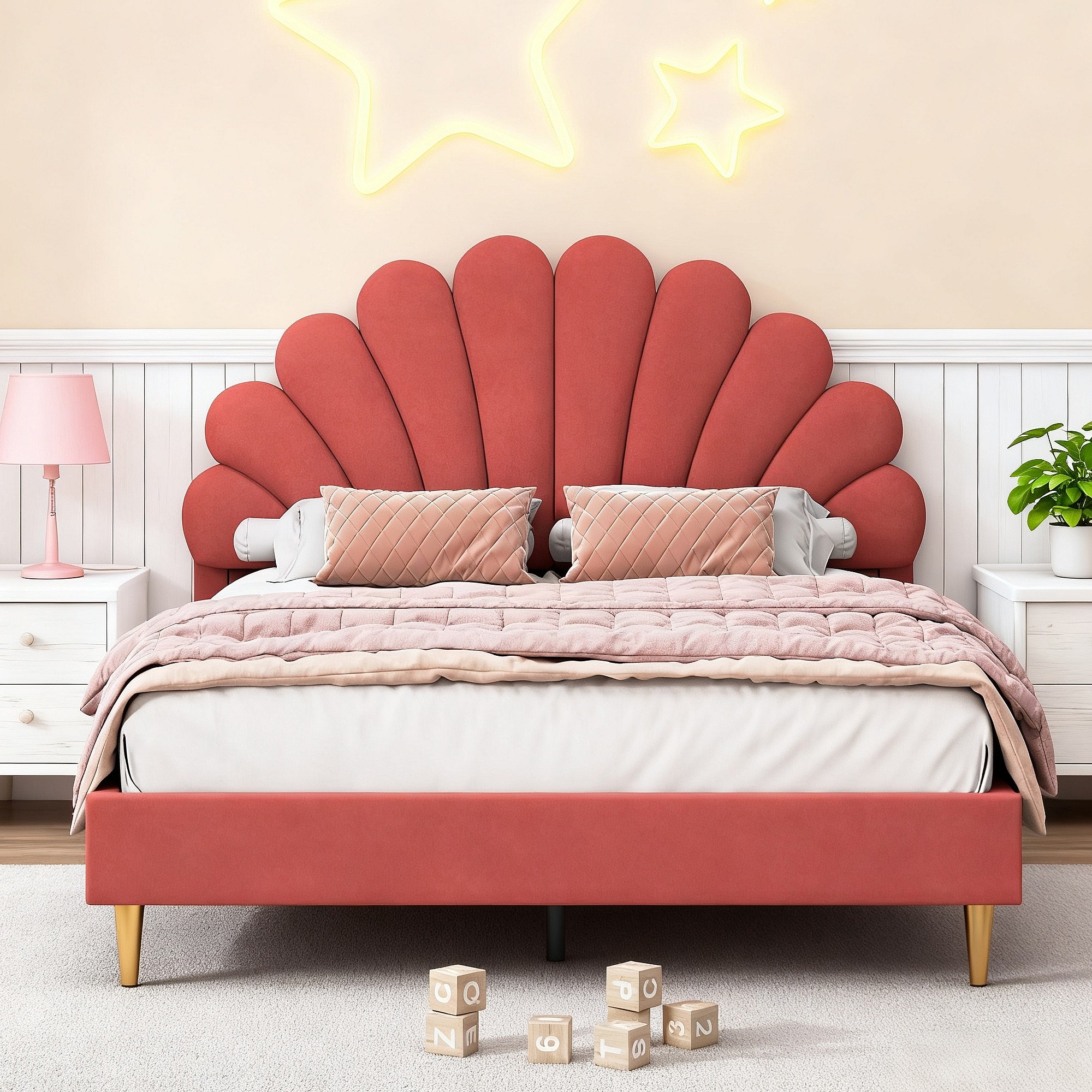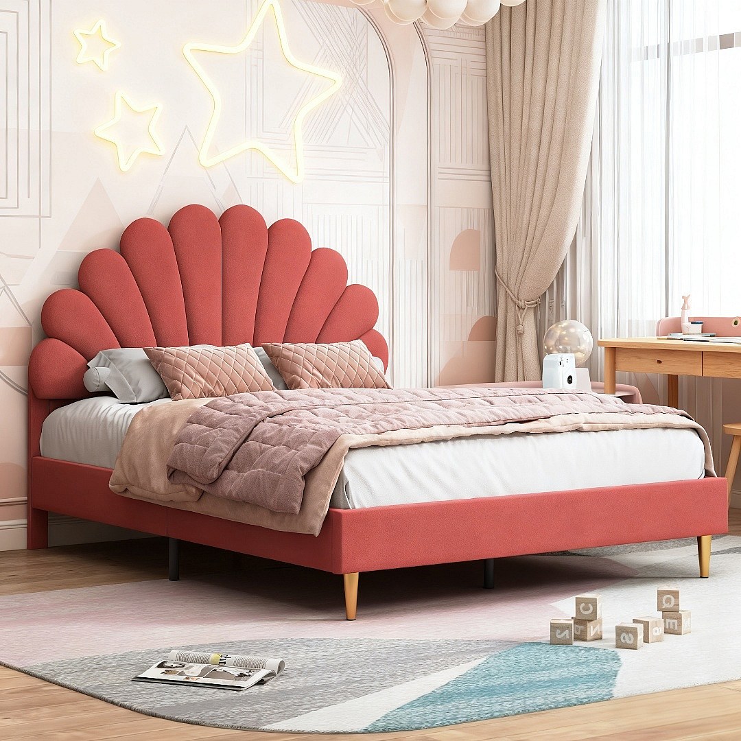 Lit 140x200 cm - lit enfant 140x200 cm - lit 1 place 140 x200 cm - lit pétale 140x200 cm - lit rembourré 140 x 200 cm -lit 140x200 cm tissu en velours - rouge