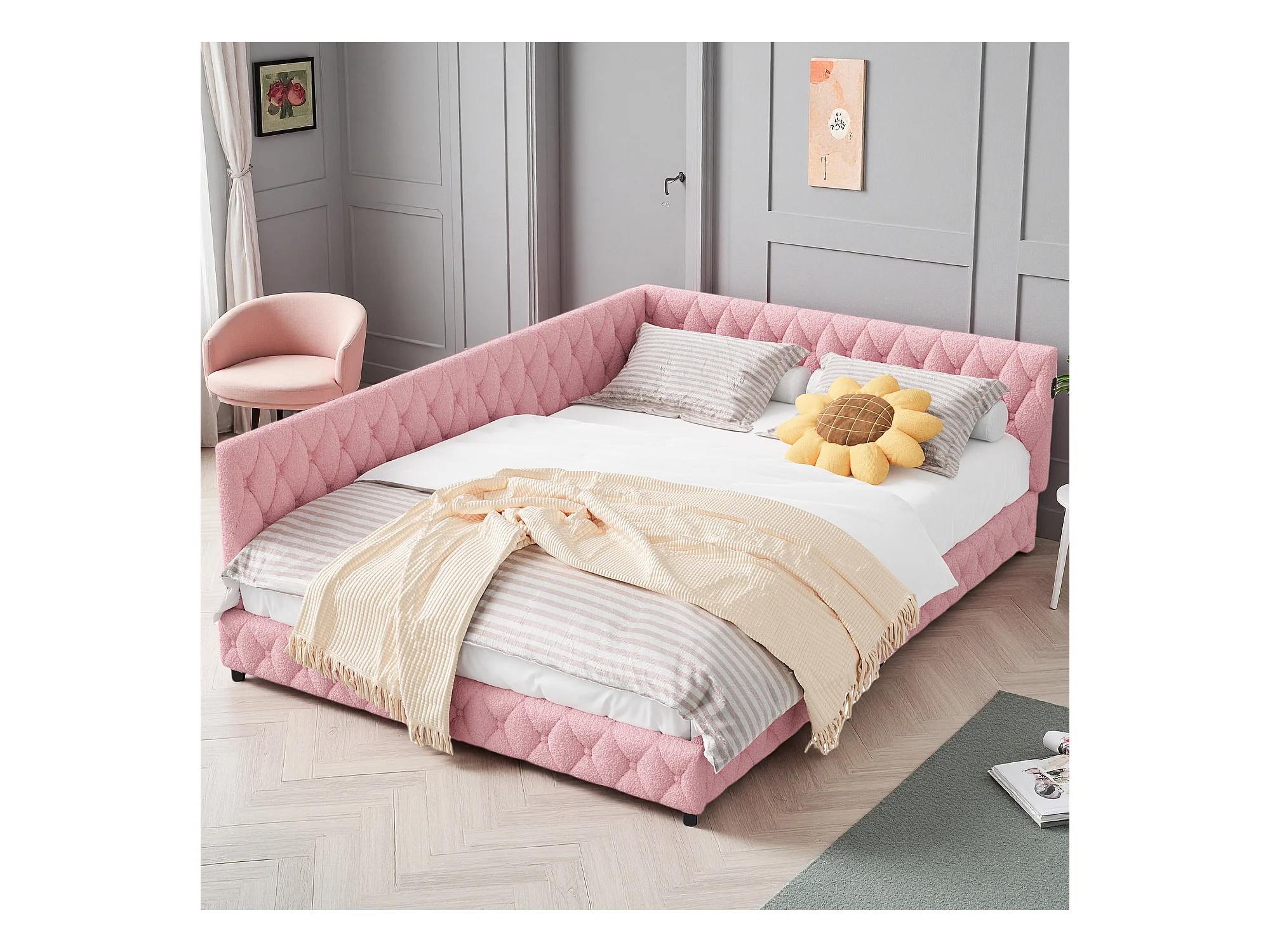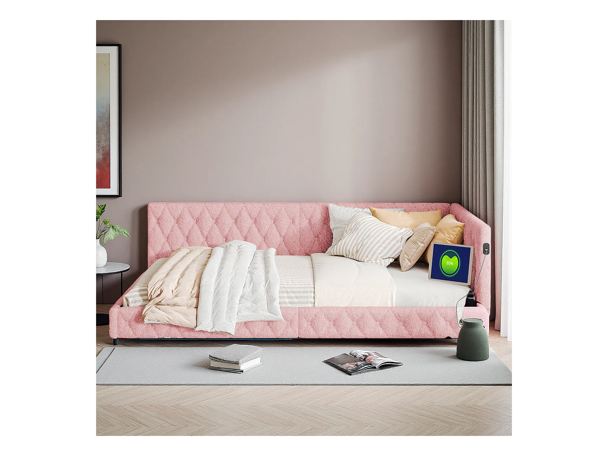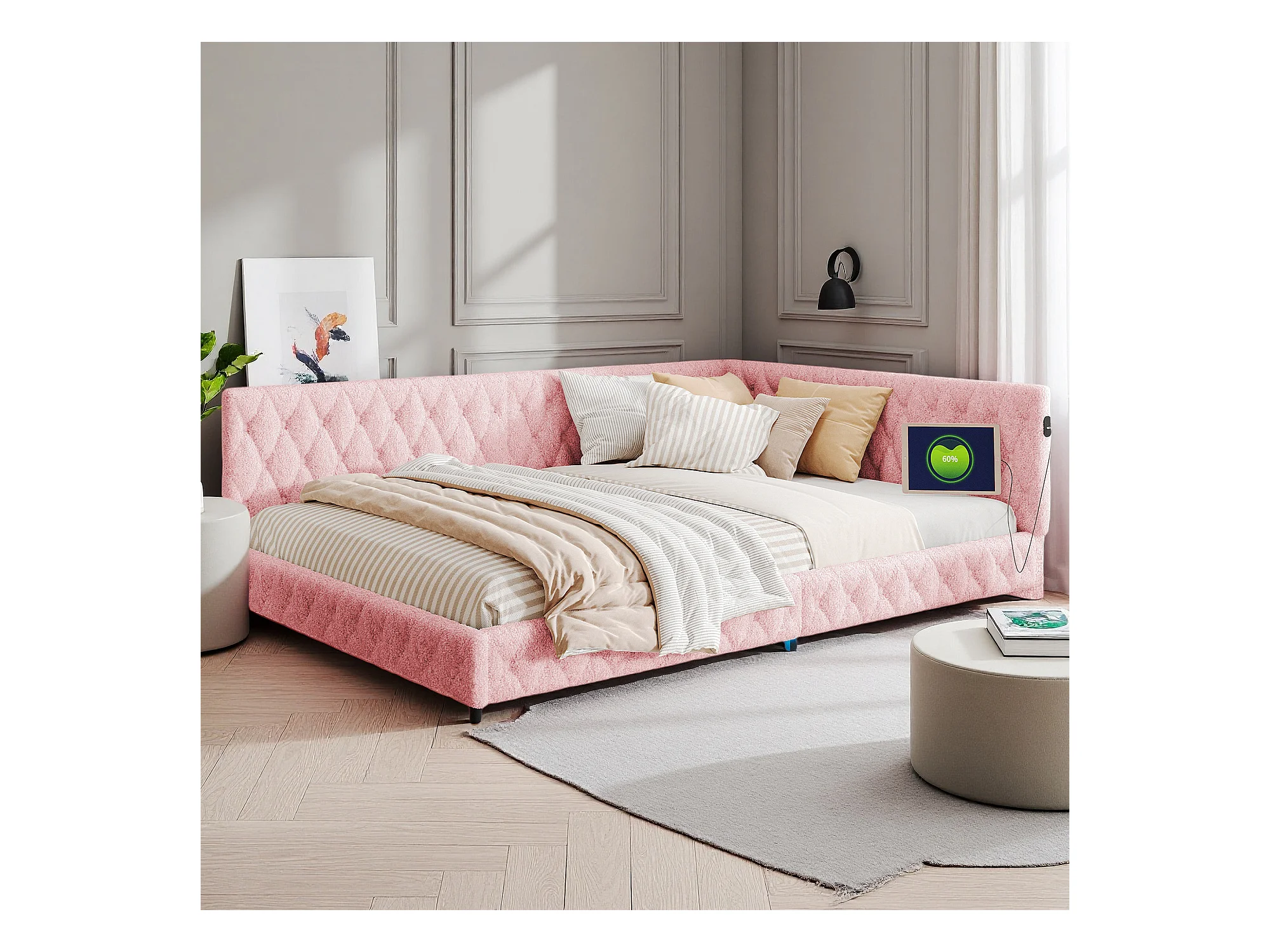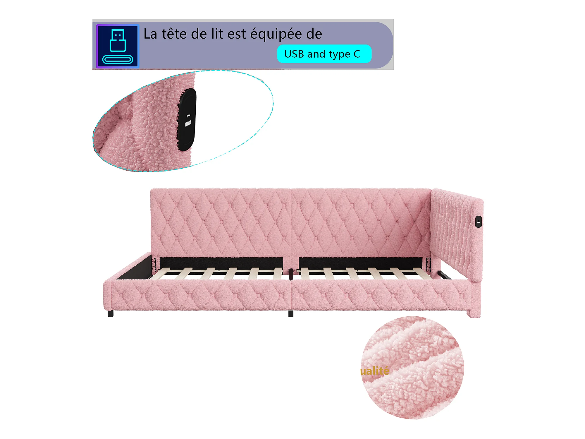 Lit double 140x200 cm - NEXU - canapé lit 140x200 cm avec LED et USB - lit fille 140x200 cm avec sommier à lattes - tissu en velours - rose
