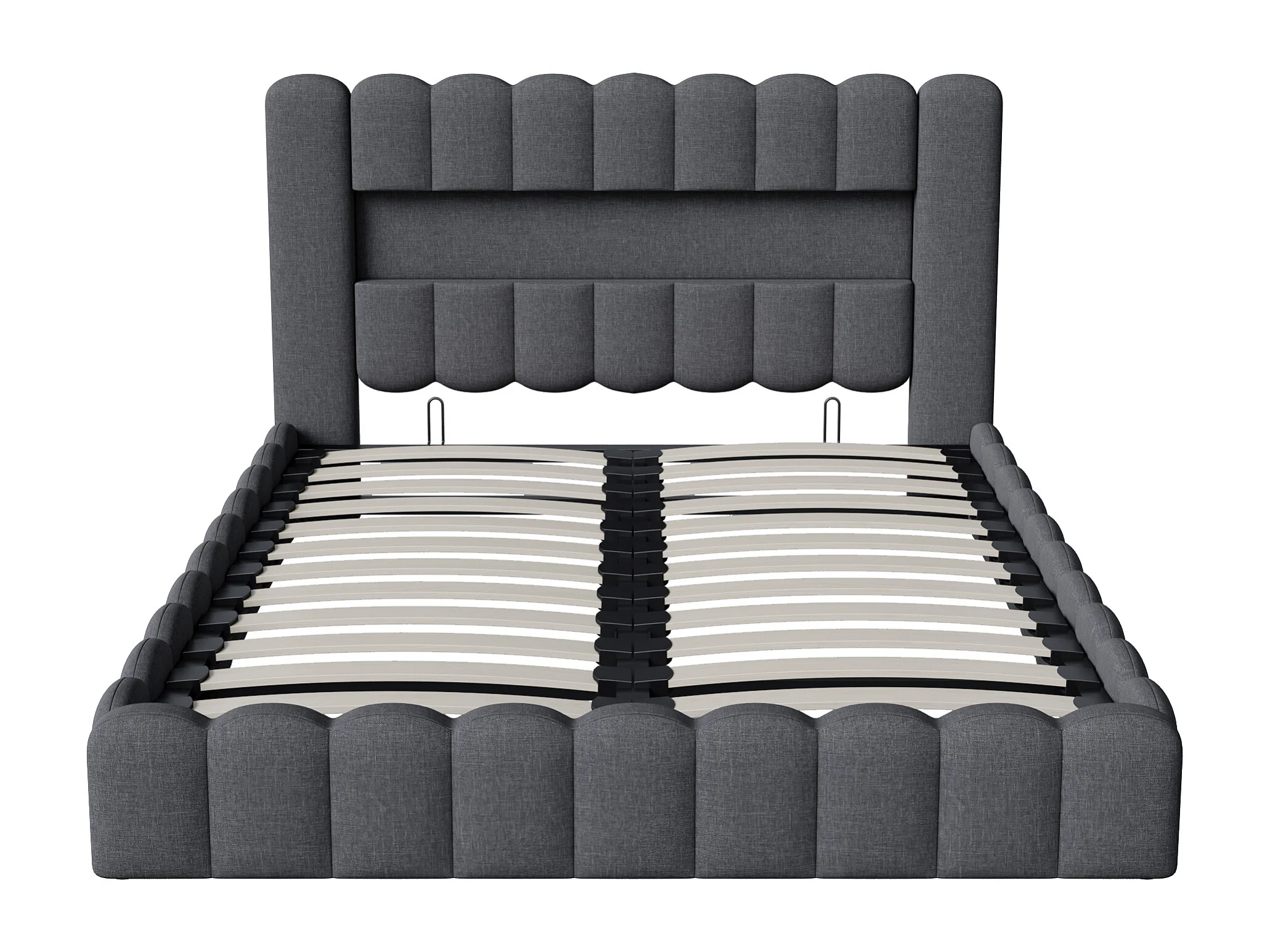 Lit adulte 140x200 cm - NEXU - LED - USB - lit adulte 140x200 cm avec sommier à lattes - cadre de lit coffre 140x200 cm - tissu en Lin - gris