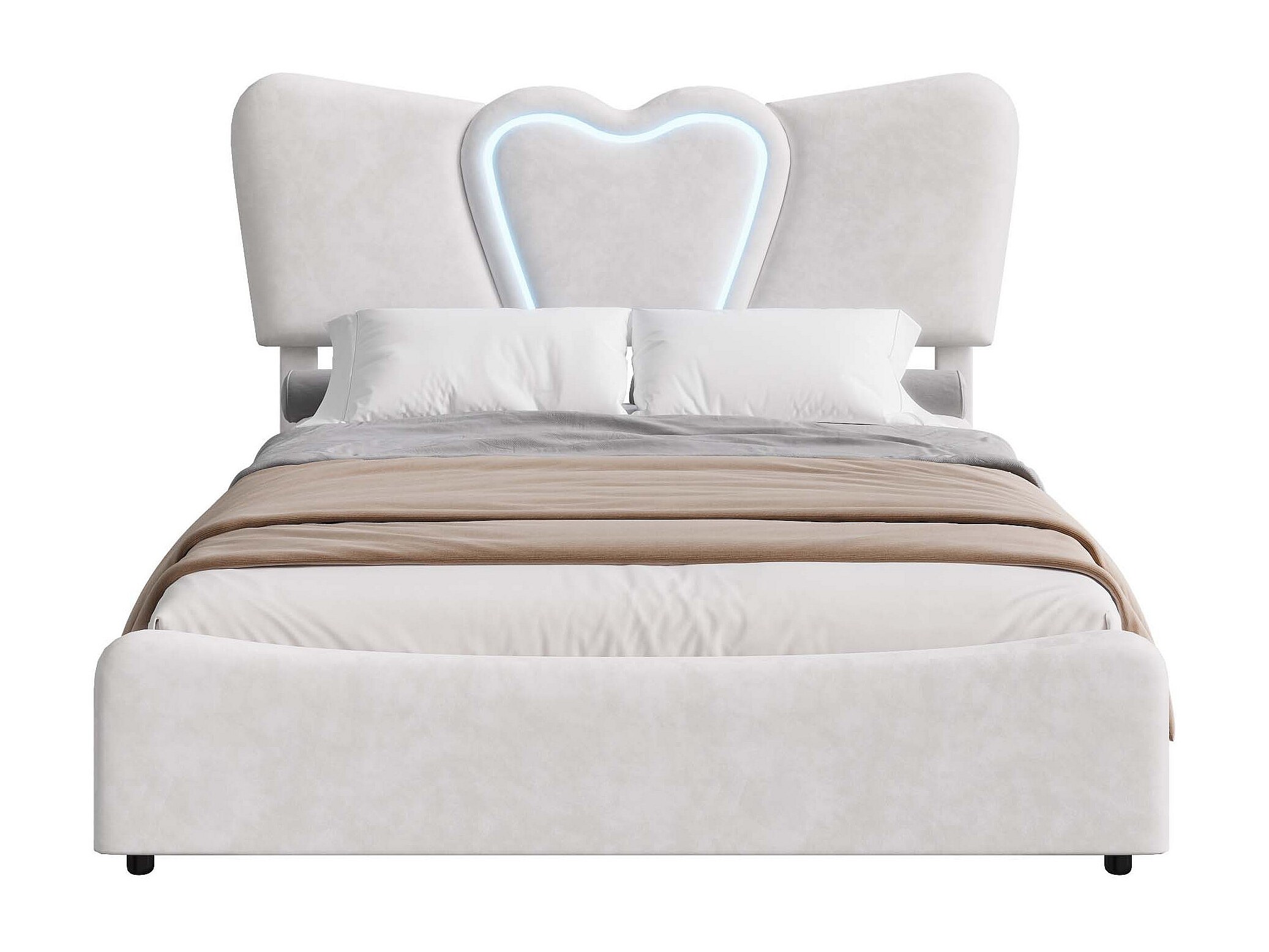 Lit 140x200 cm - NEXU - LED - USB - lit 140x200 cm tissu en Velours - cadre de lit coffre 140x200 cm - beige