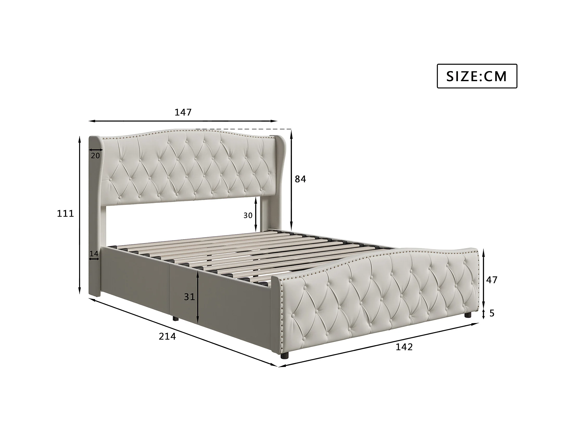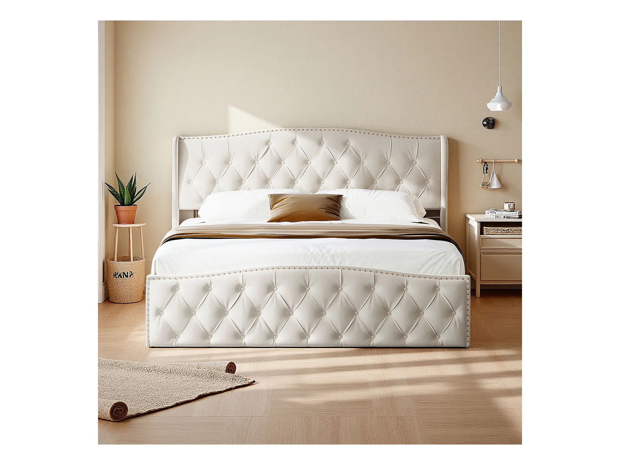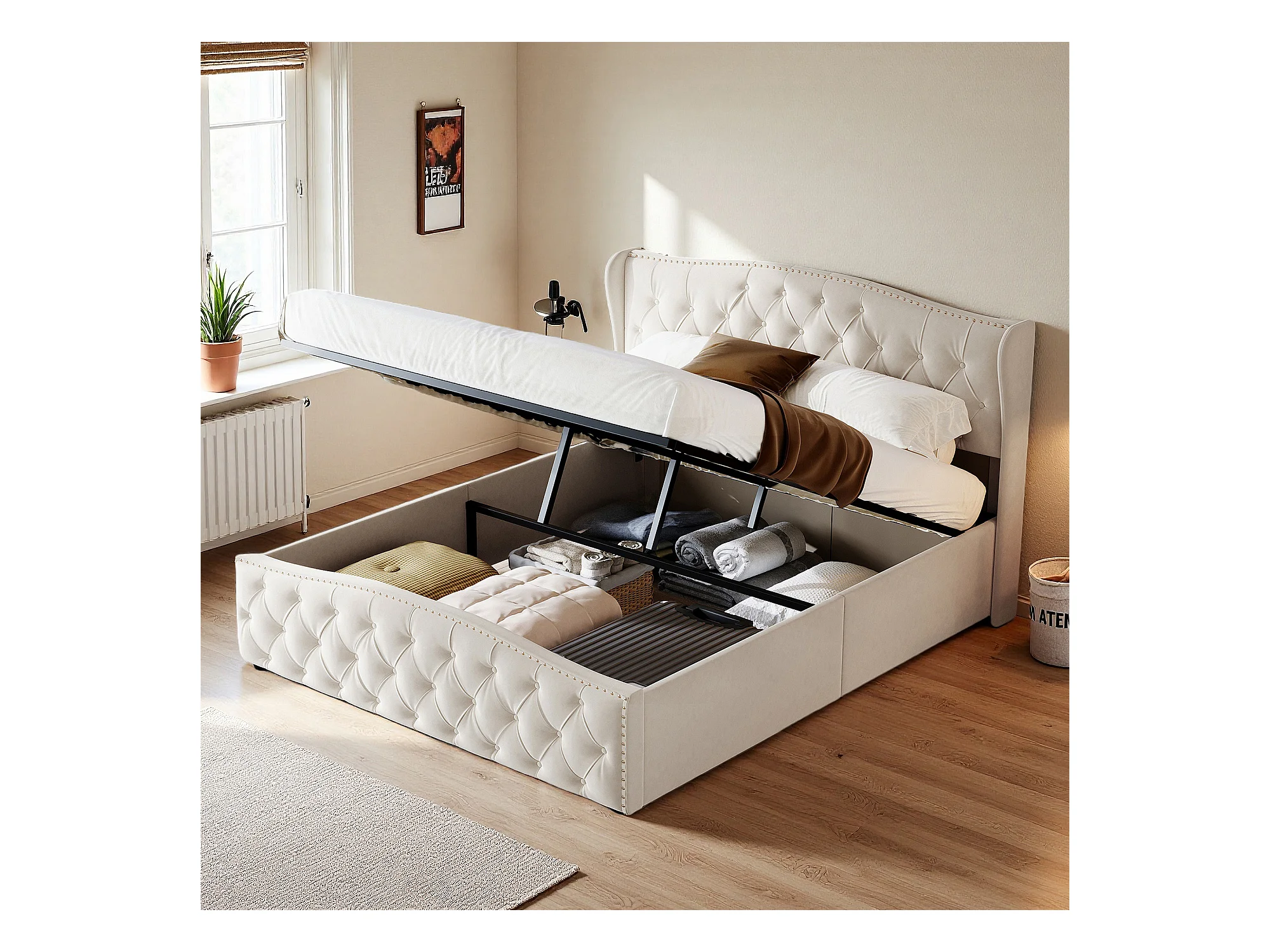 Lit 140x200 cm avec sommier à lattes - NEXU - lit double 140x200 cm avec coffre de lit - cadre de lit adulte 140x200 cm - tissu en Velours - blanc cassé