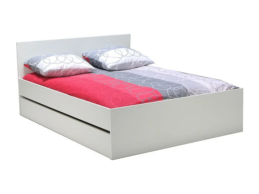 Lit OSLO 140x200 + 2 tiroirs / Blanc