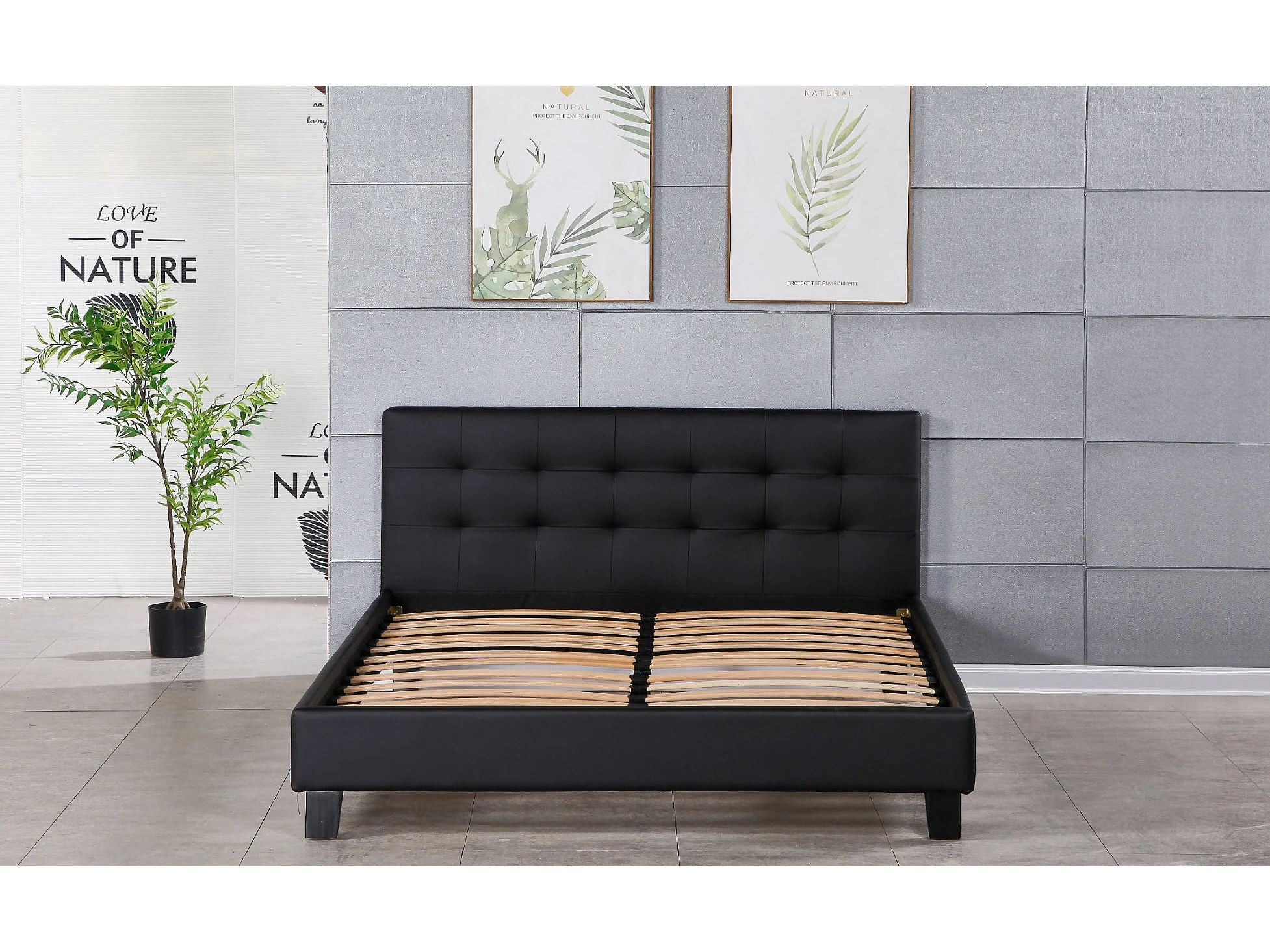 Lit 140x200 Solide et Confortable - Tête de Lit Capitonnée NOIR - Pieds 10 cm - 13 Lattes - Revêtement PVC Simili Facile d'entretien - Montage Rapide et Facile