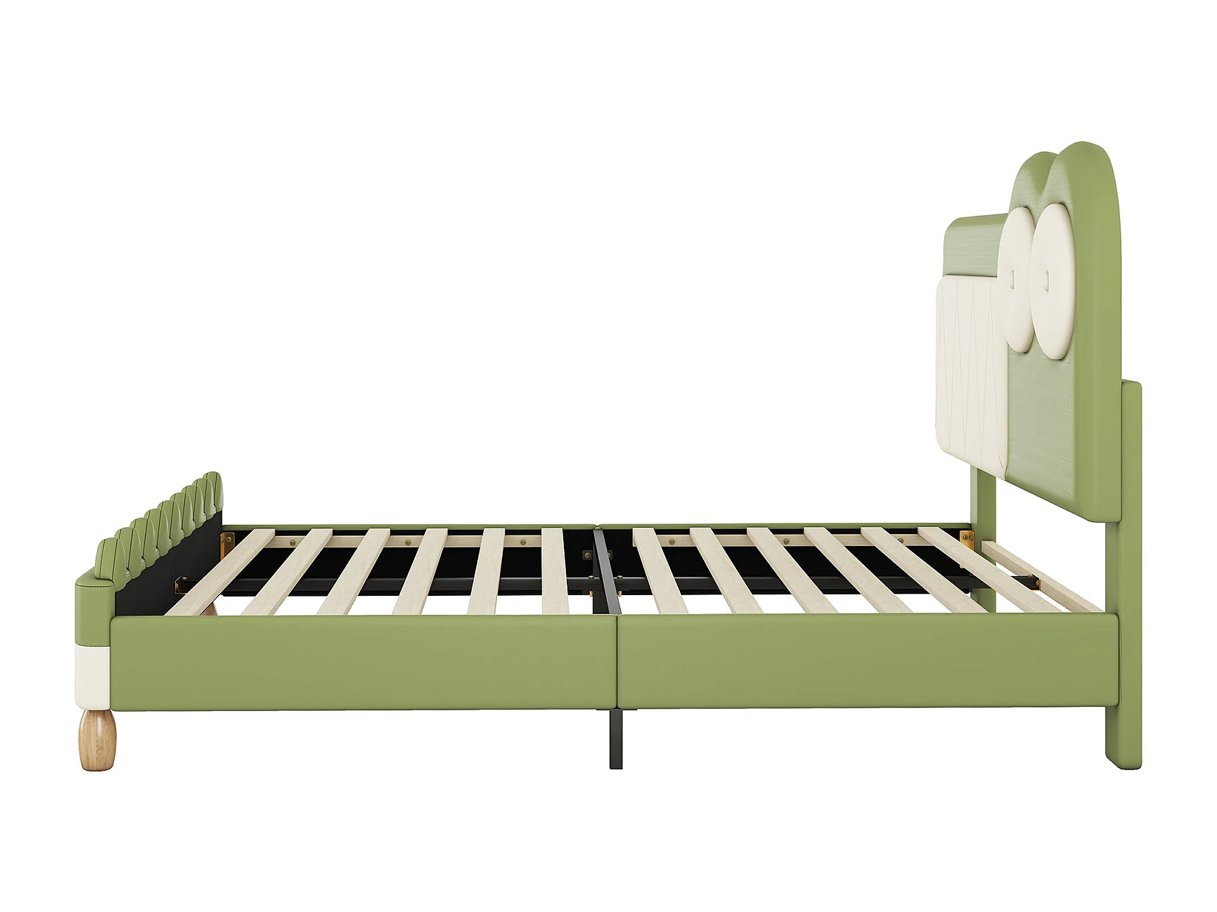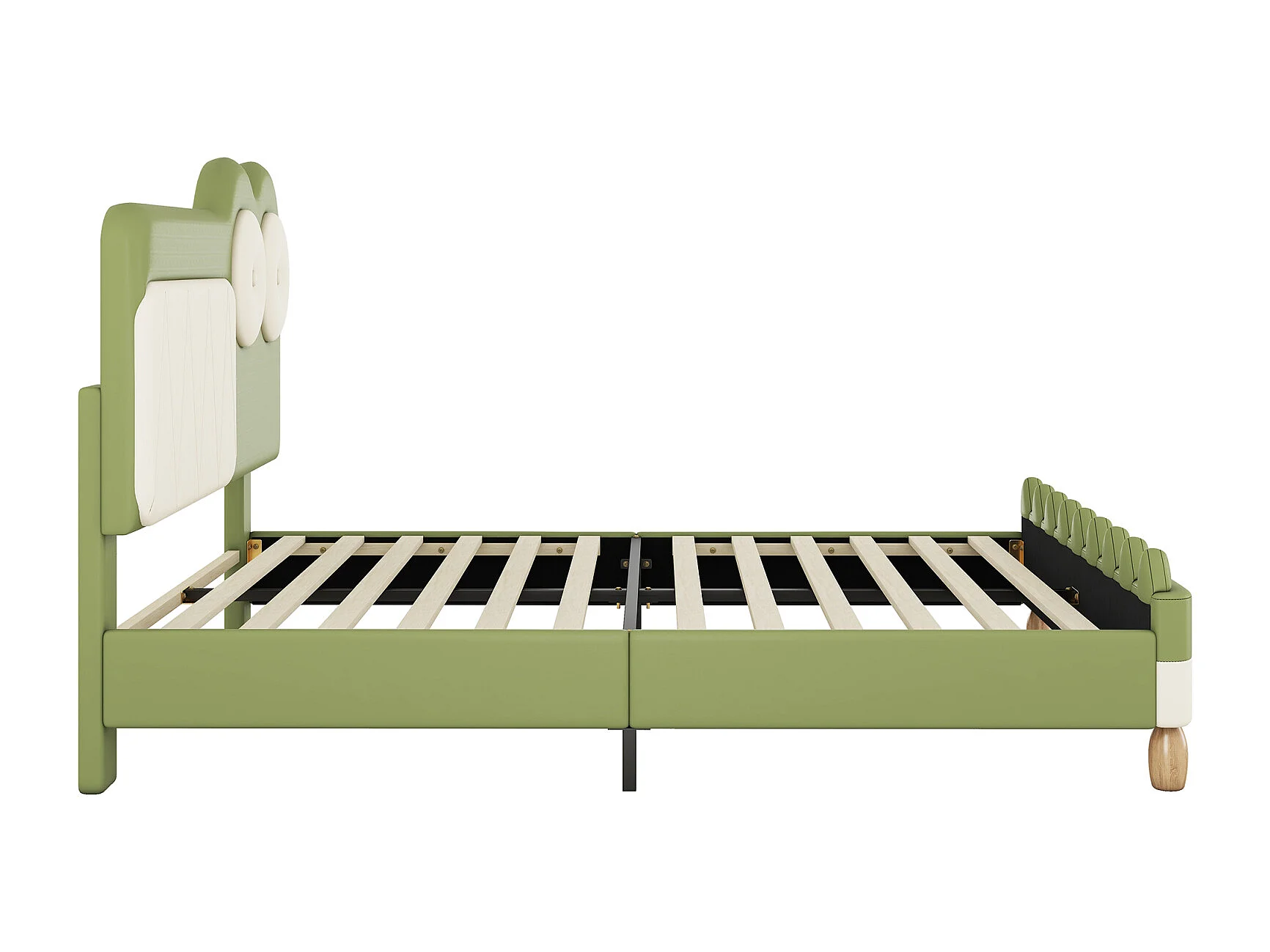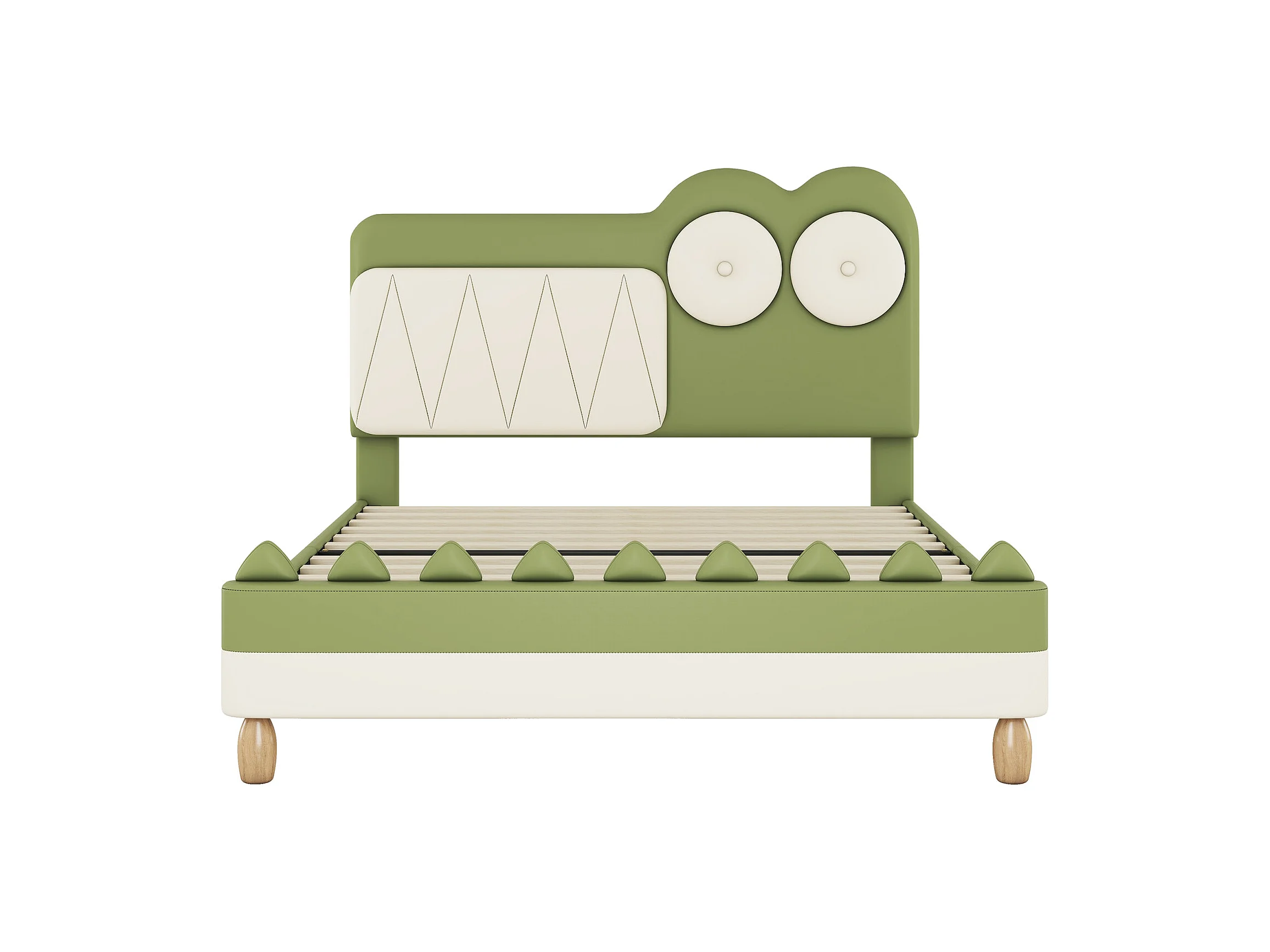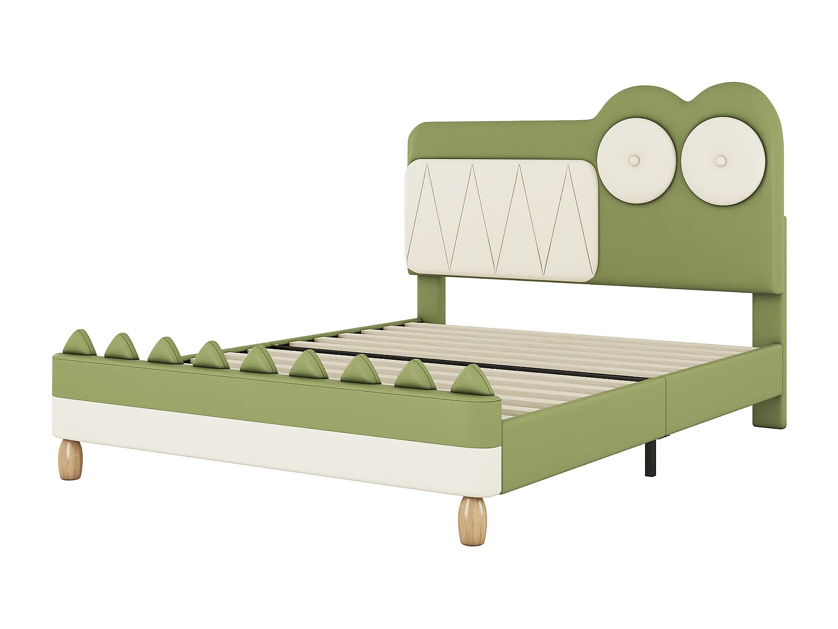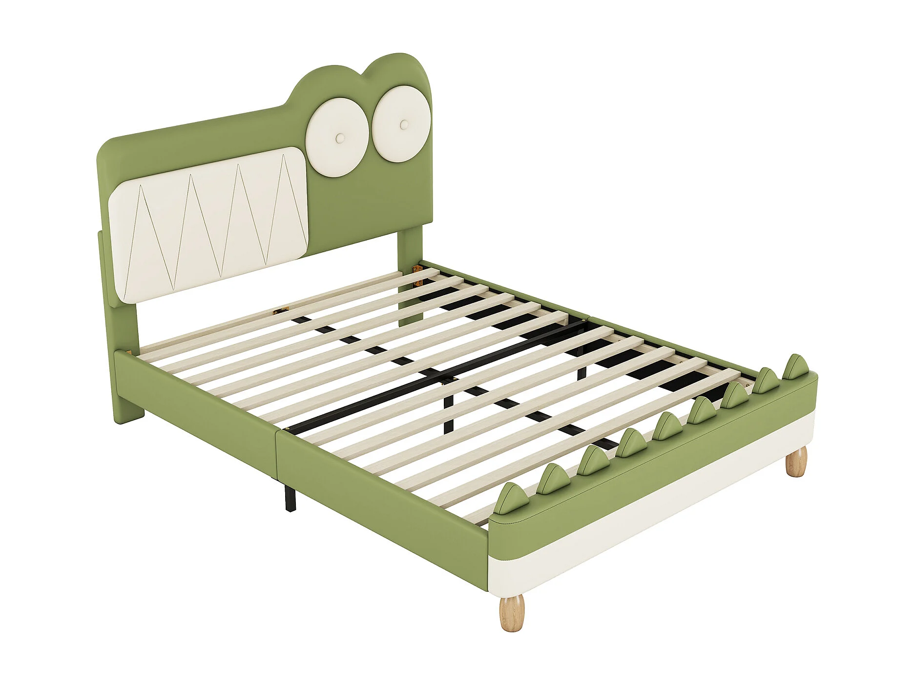 Lit 140x200cm, lit d'enfant en forme de crocodile de dessin animé, avec sommier à lattes et tête de lit, PU, Vert