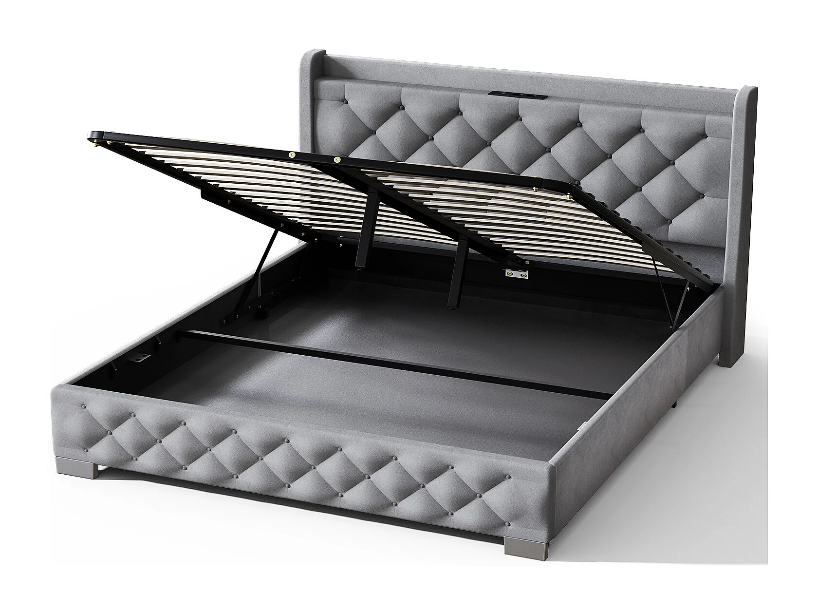 Lit 140 x 200 cm avec rangements, tête de lit avec éclairage LED, sommier à lattes - Gris anthracite