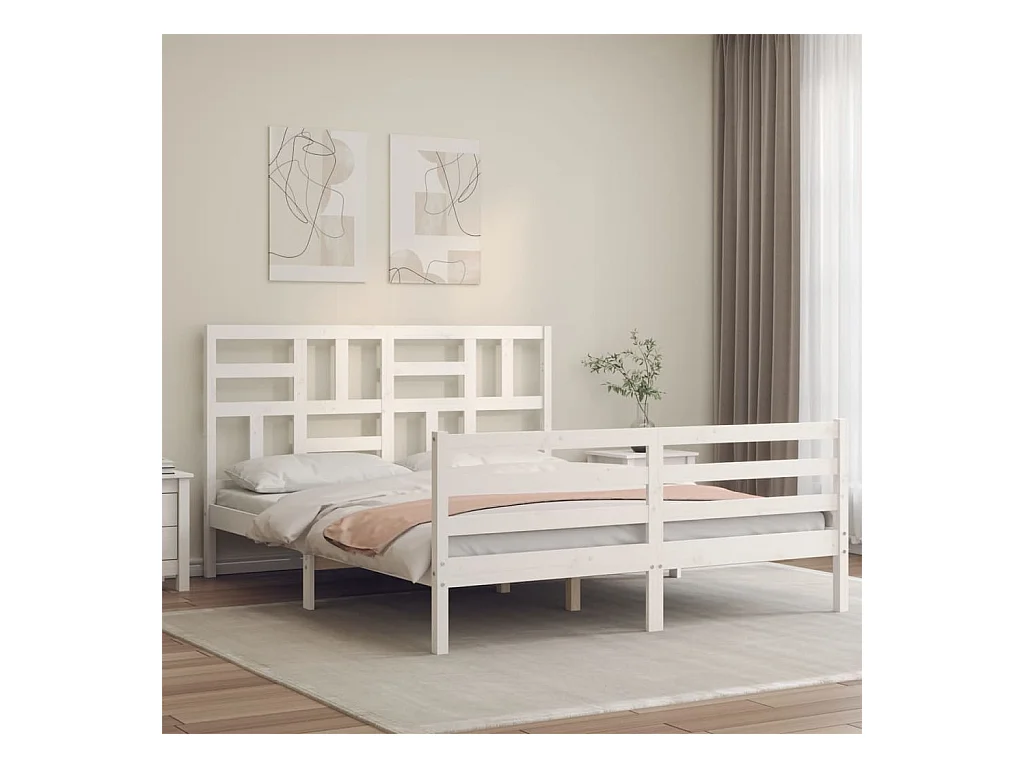Lit-150x200 cm avec tête de lit blanc King Size bois massif EGGB74463