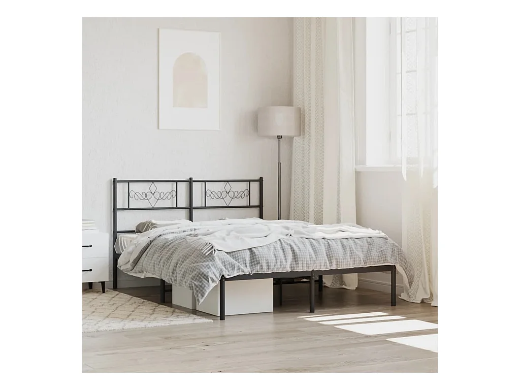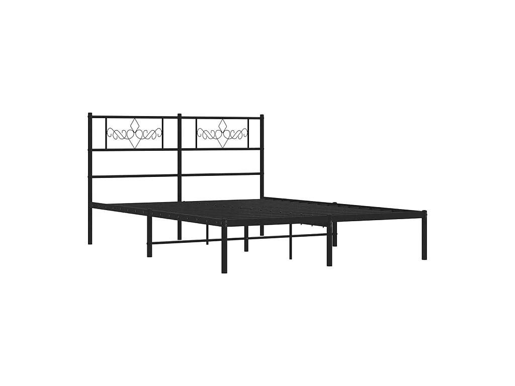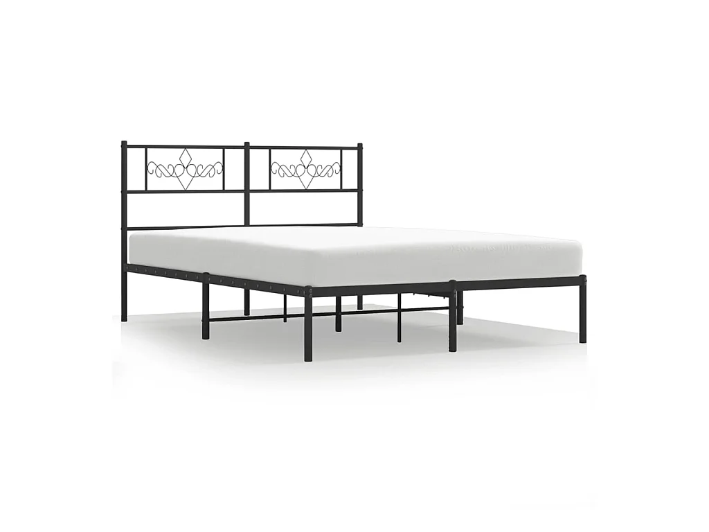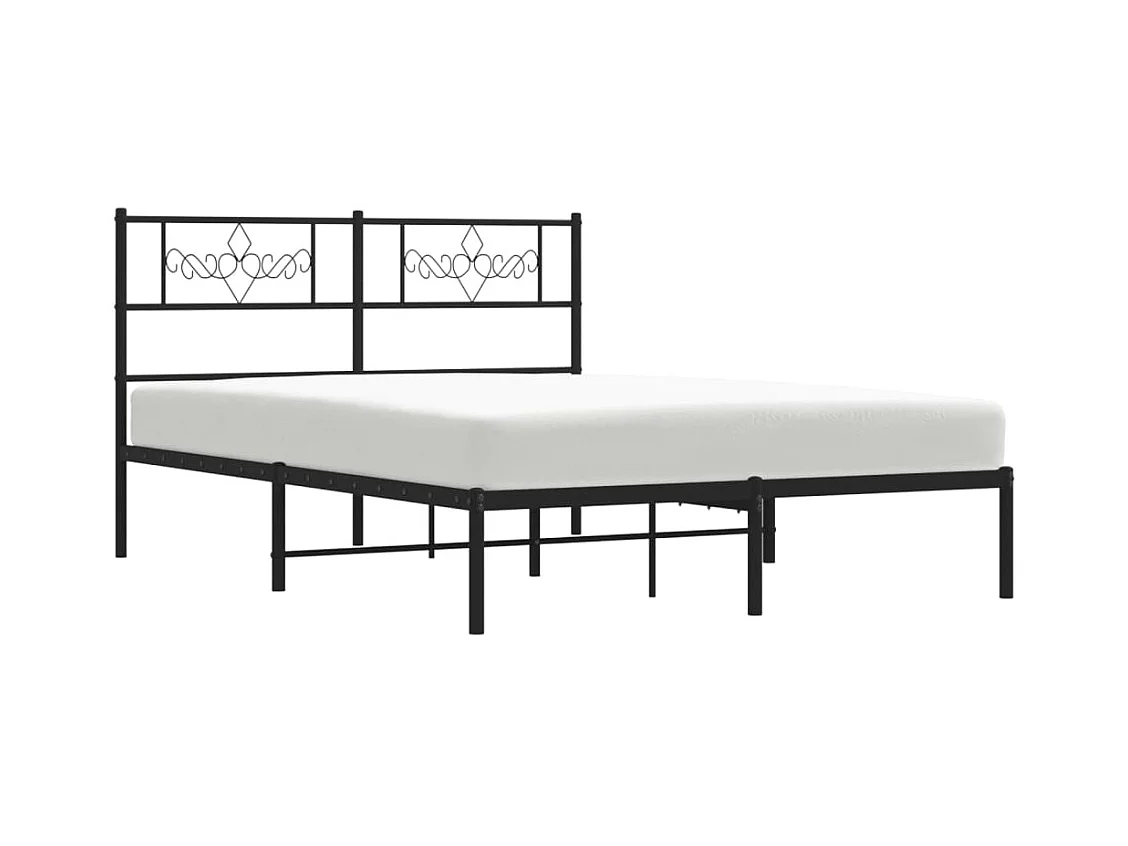 Lit double métal + tête de lit noir 150x200 cm FR55779