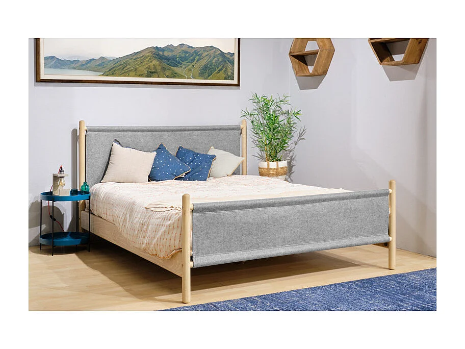 Lit 160 x 200 cm en bois de frêne et feutrine gris - AGDE 7008