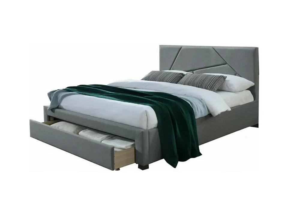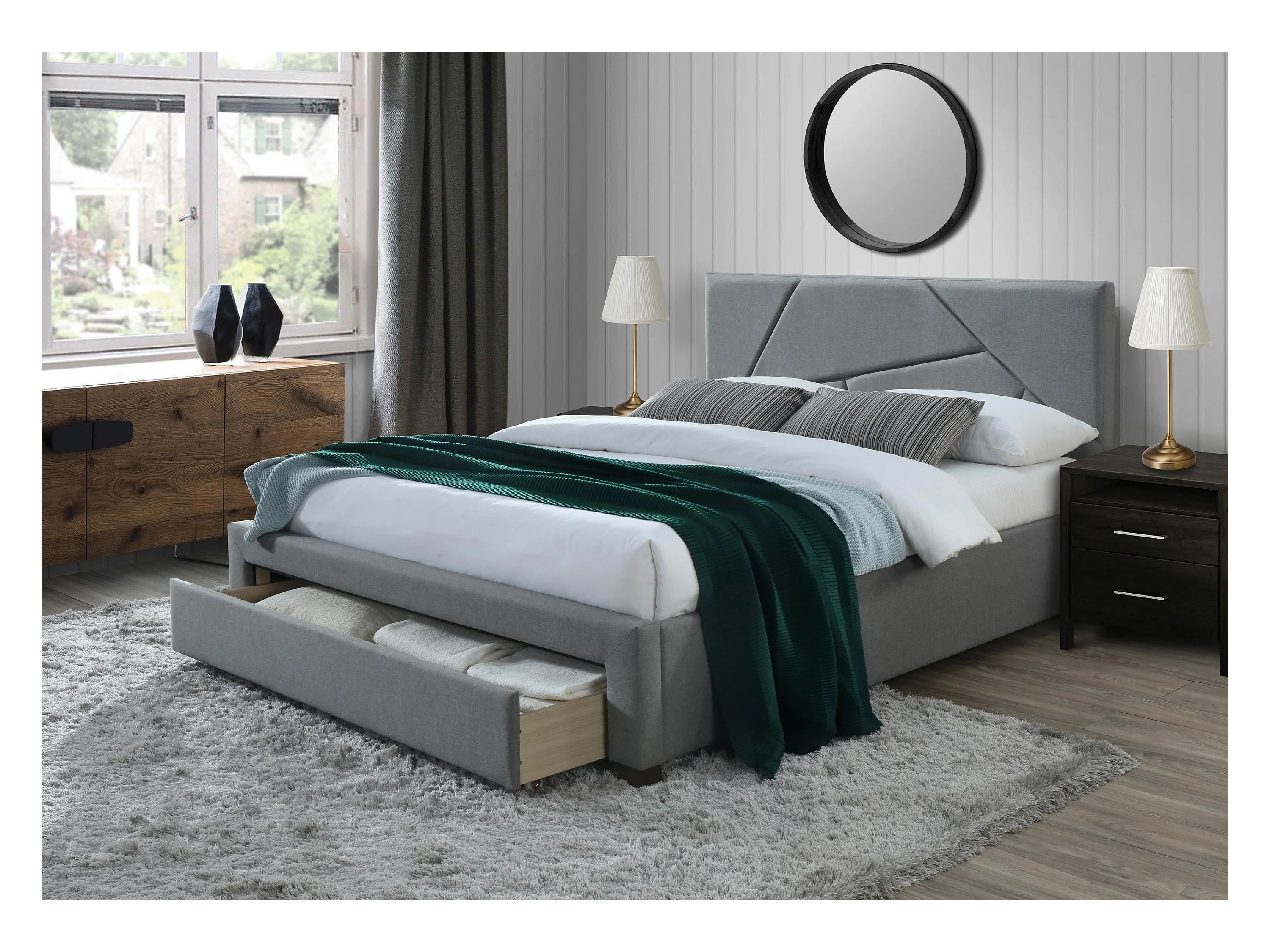 Lit 160 x 200 cm gris avec structure en bois de noyer massif et tiroir de rangement Starter