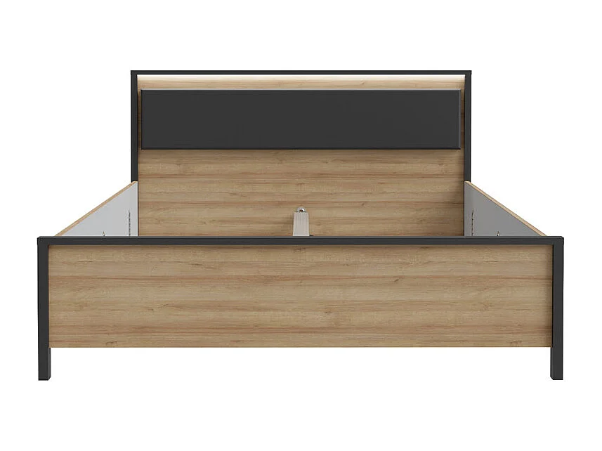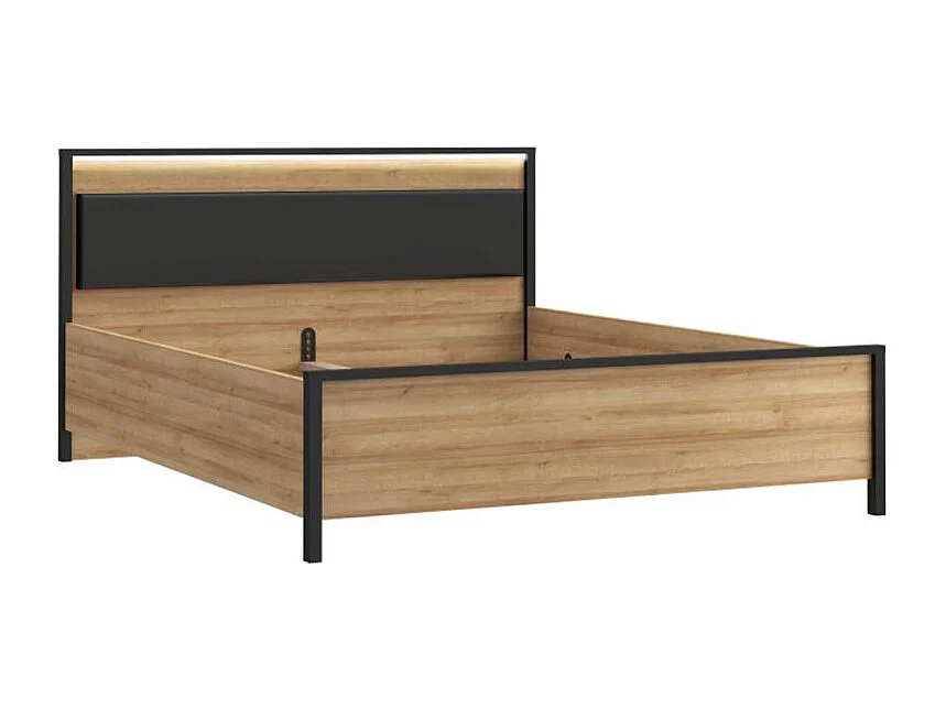 Lit 160 x 200 cm décor chêne et noir avec tête de lit et LED - MODE