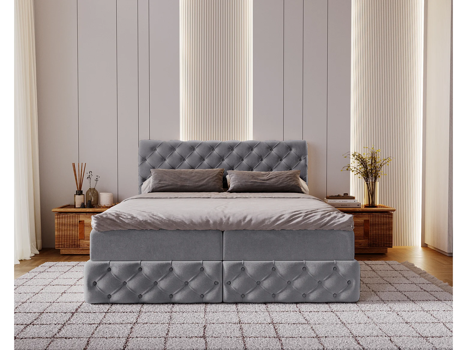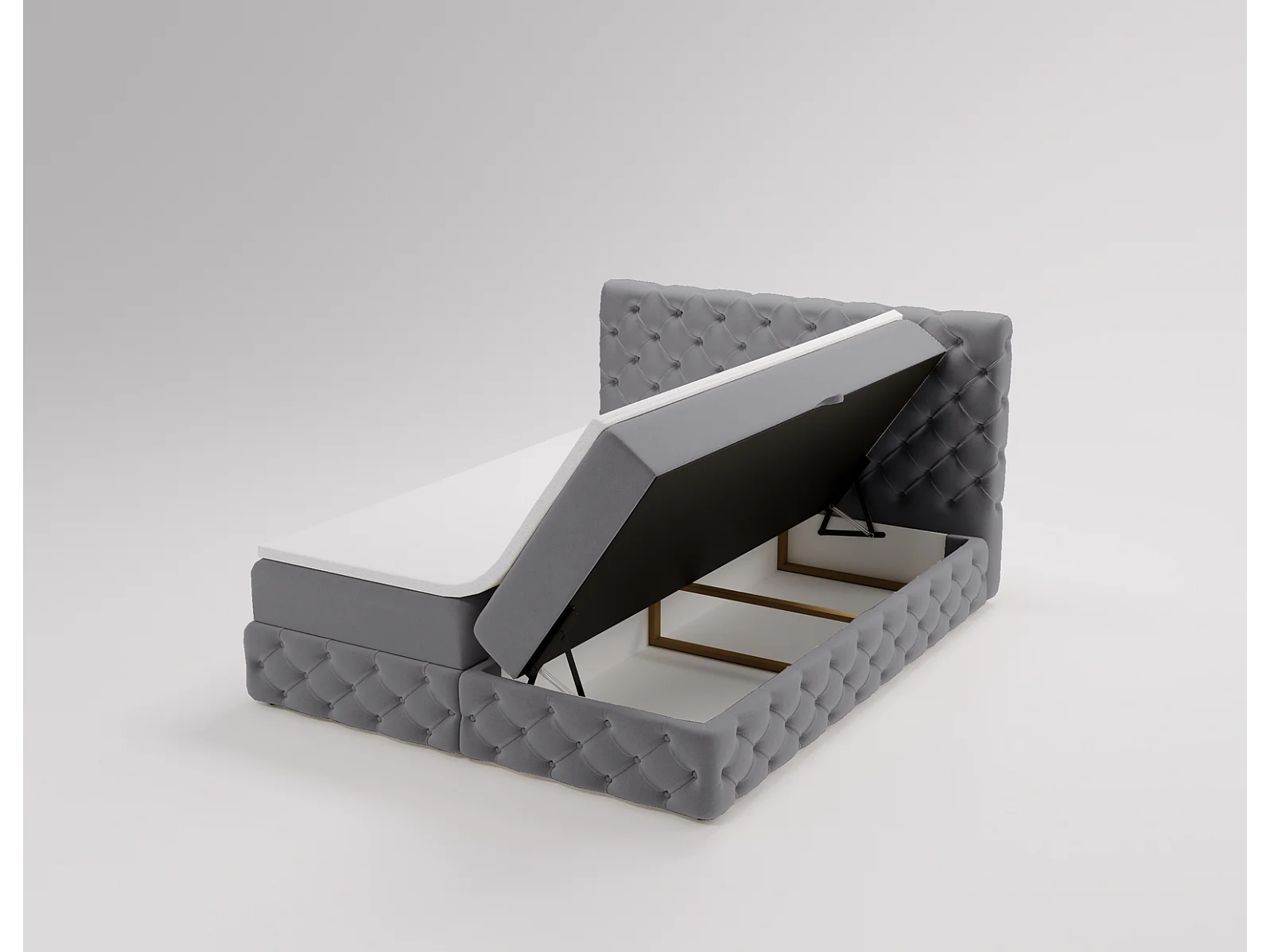 Lit 160x200 avec Rangement Royal - Matelas Ressorts ensachés, Surmatelas - Lit Gris (Royal Velvet 20)
