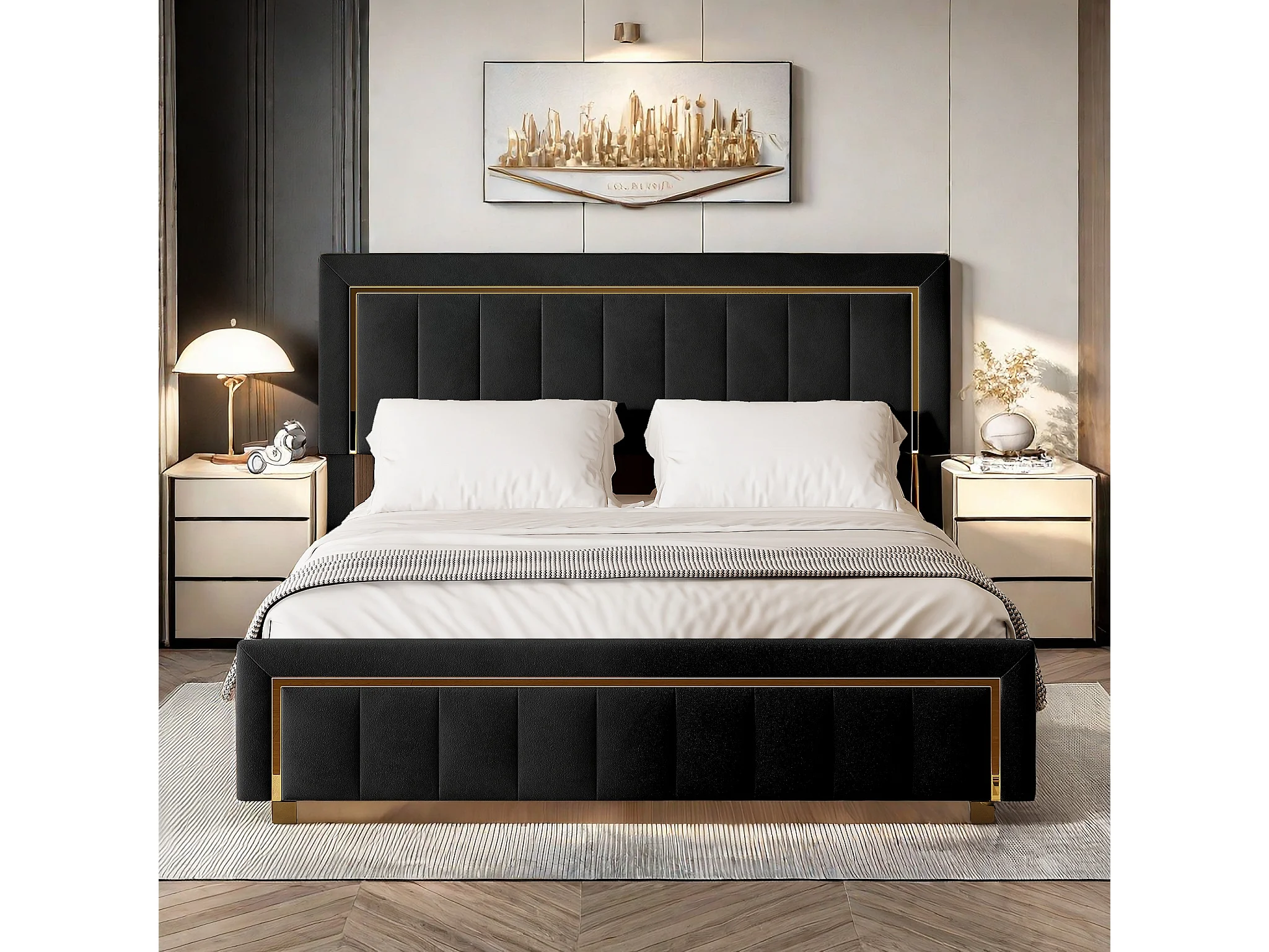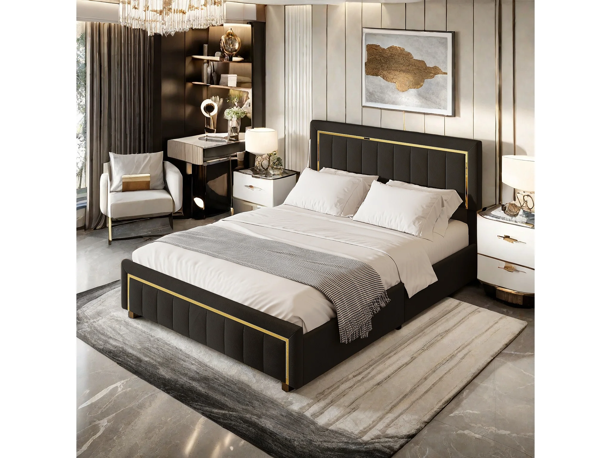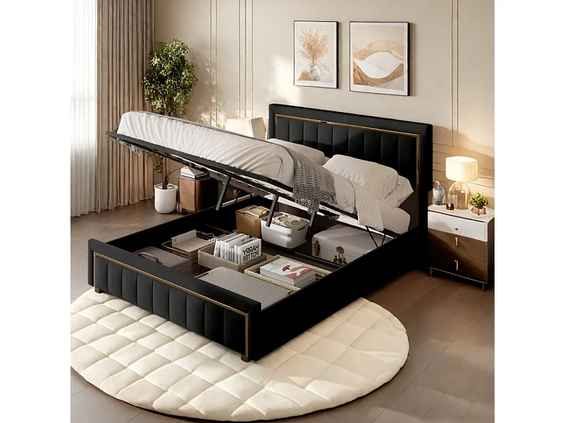 Lit 160x200 cm avec sommier, Lit Coffre 160 x 200, Lit rembourré double, Lit Adulte avec Hydraulique Rangement, Noir