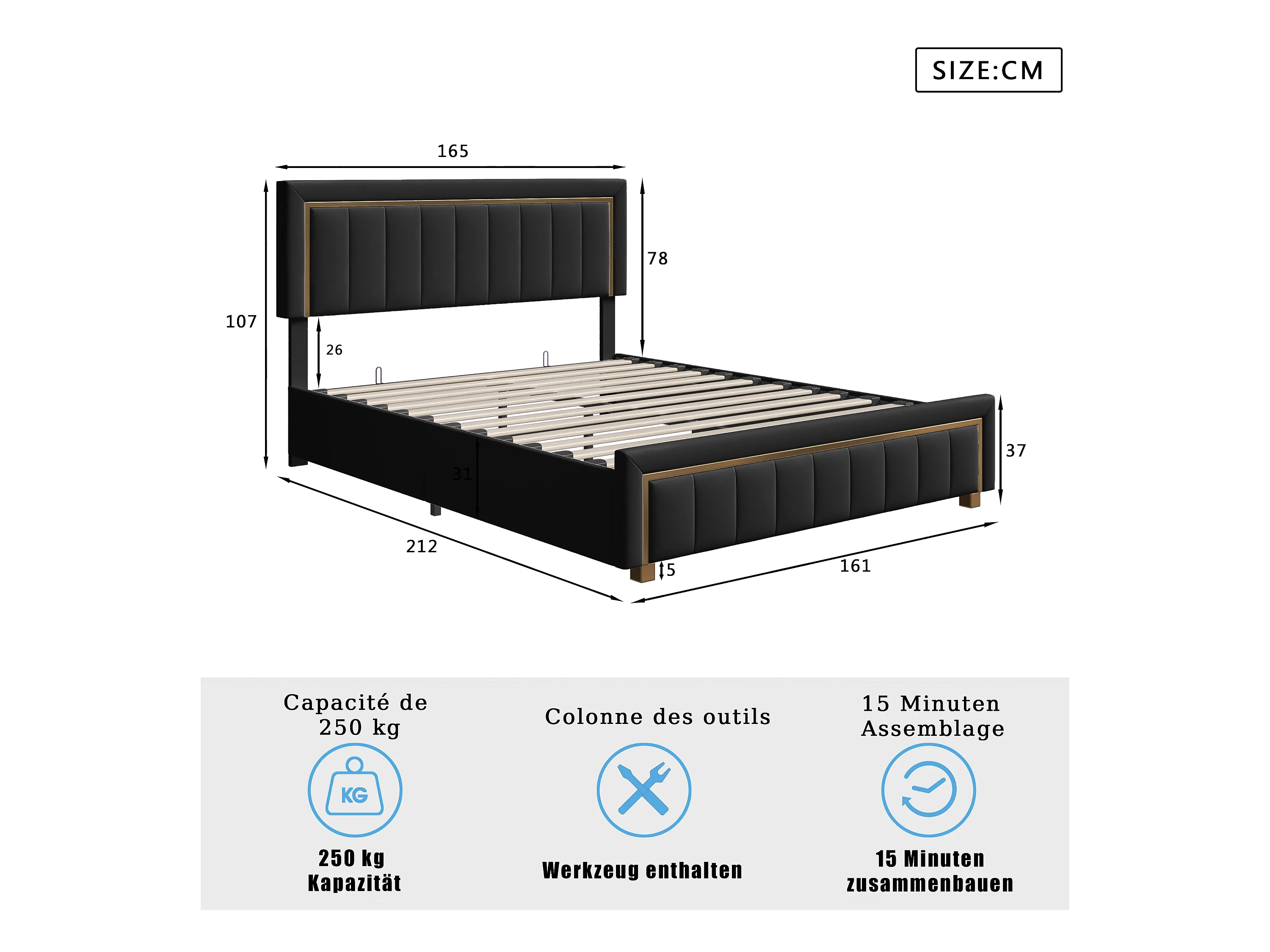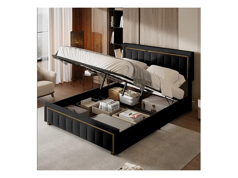 Lit 160x200 Cm, Lit Coffre Avec Rangement, Cadre De Lit Avec Tête De Lit, Velours, Noir