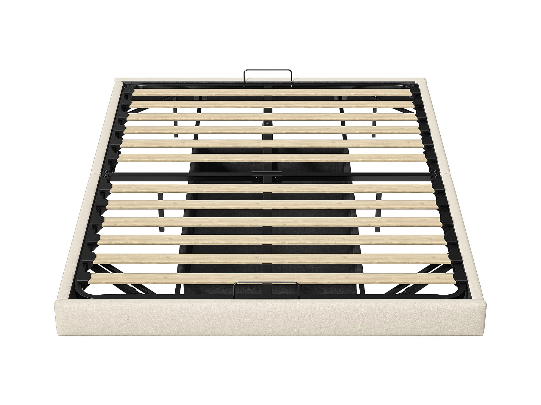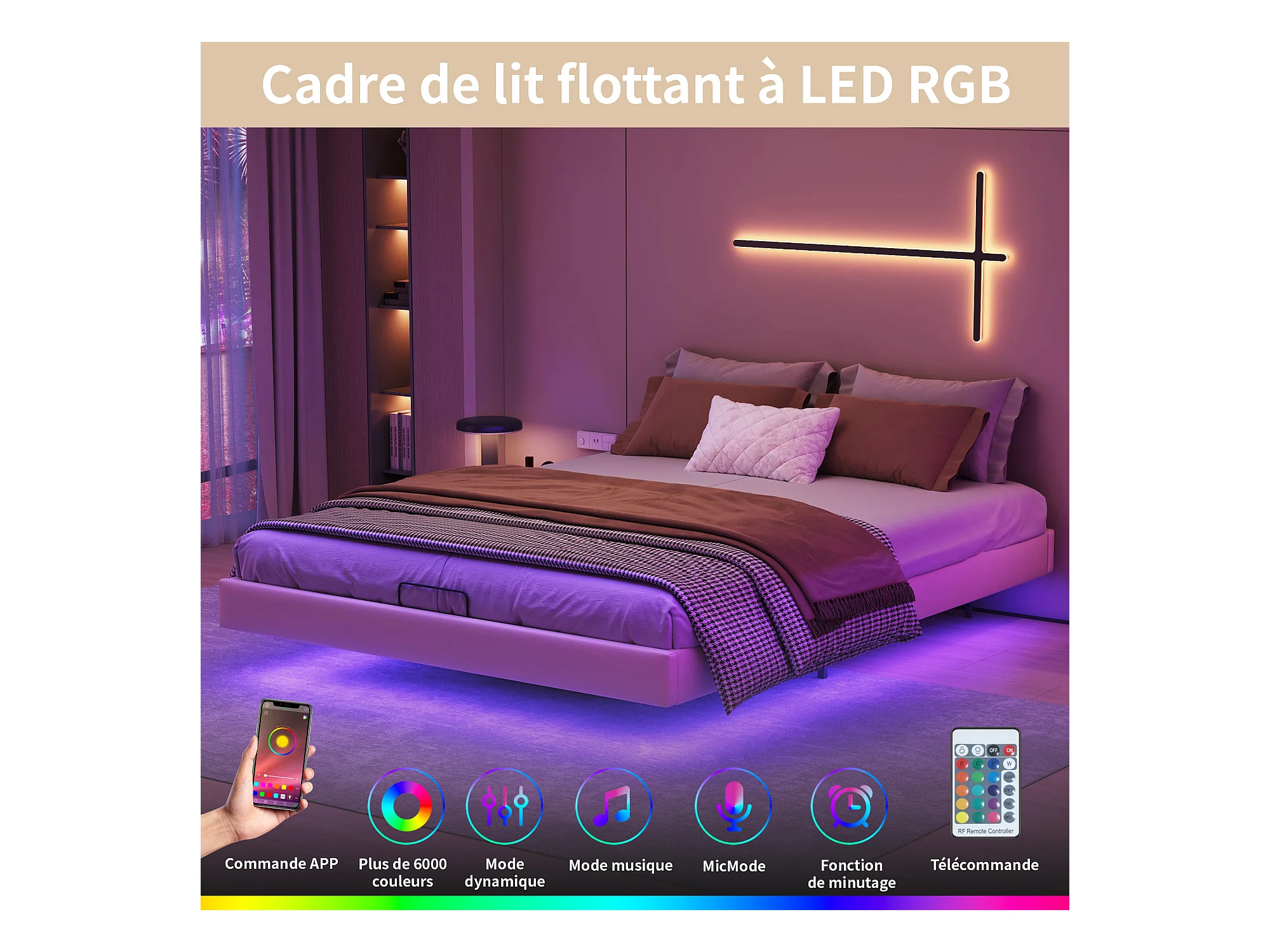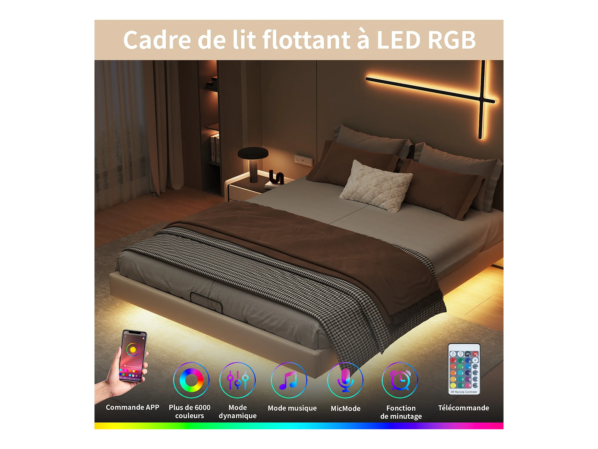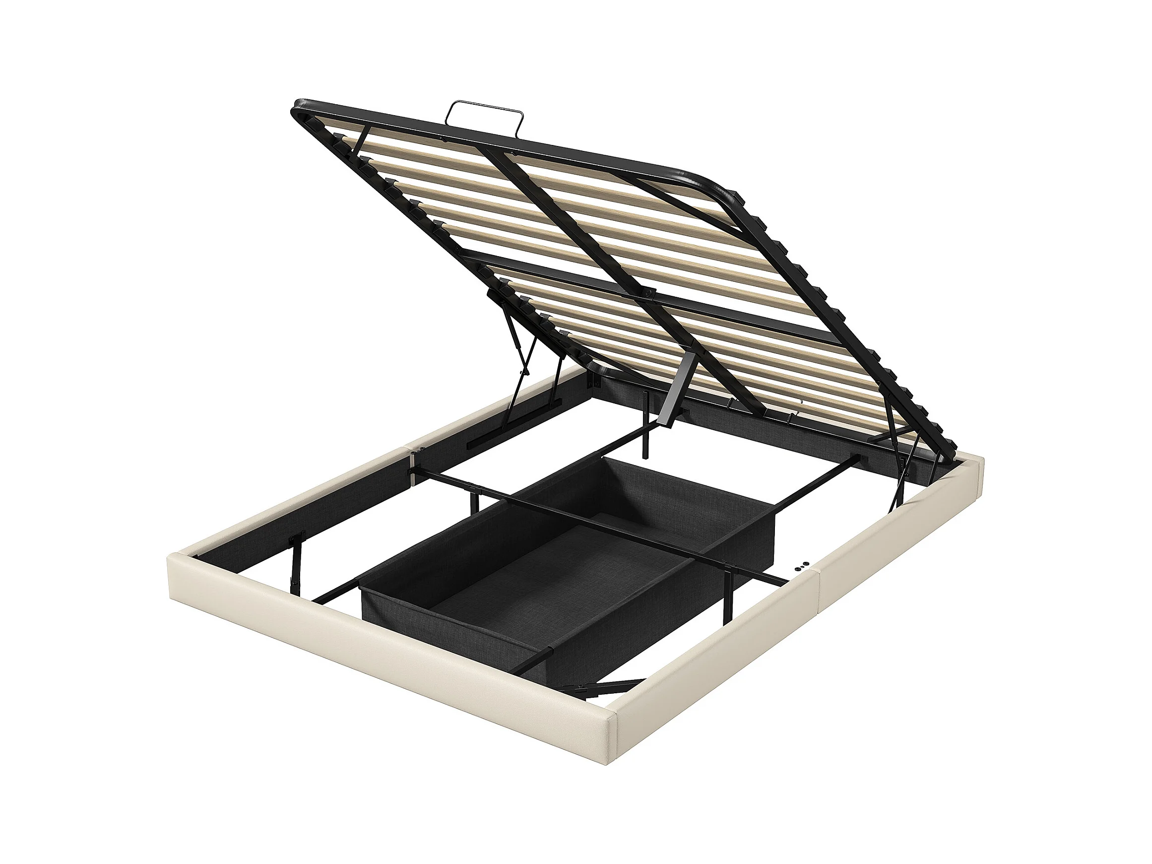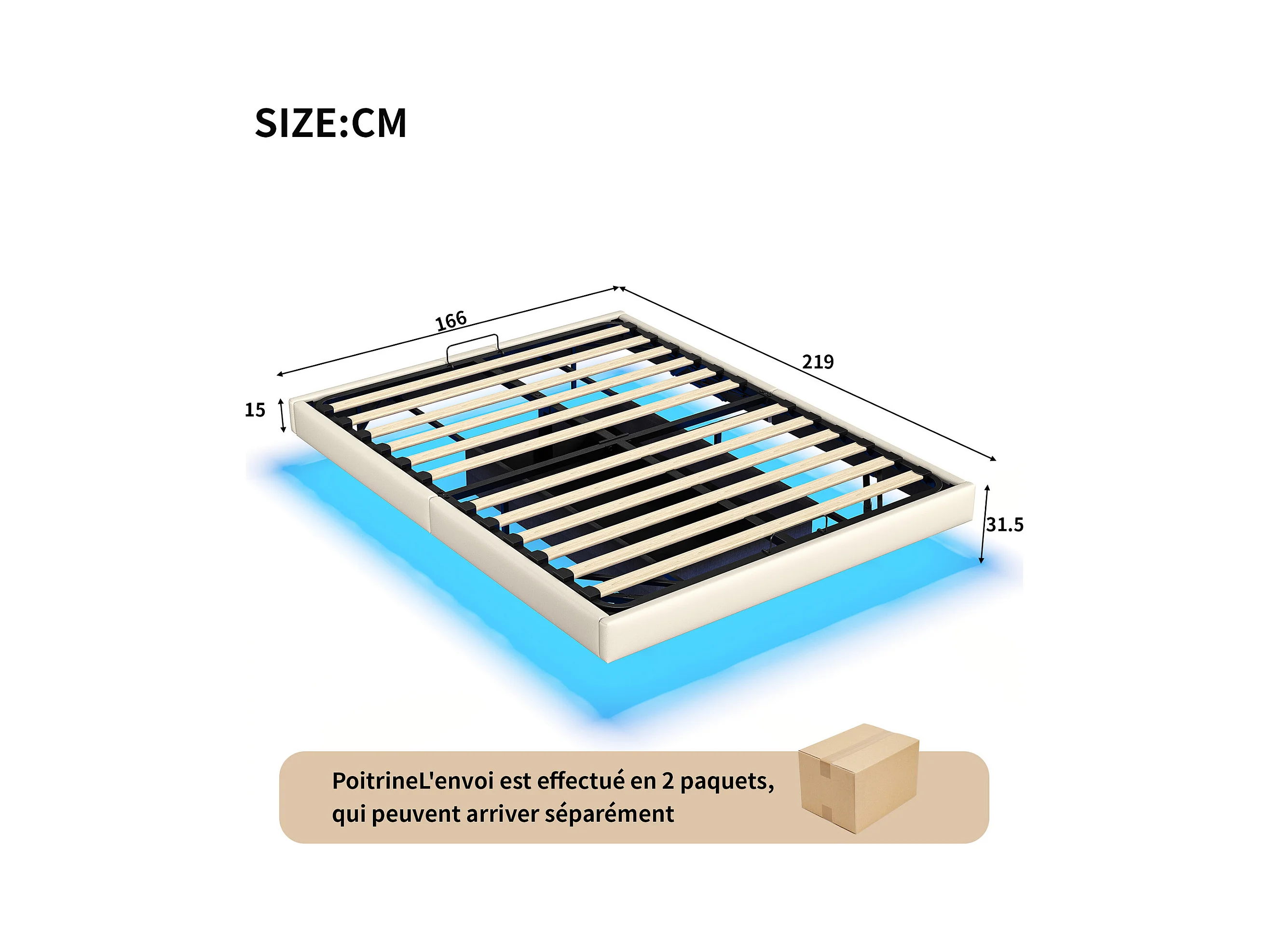 Lit 160x200 cm, Lit Flottant avec LED et Espace de Rangement, Cadre de Lit sans Tête de Lit,Beige