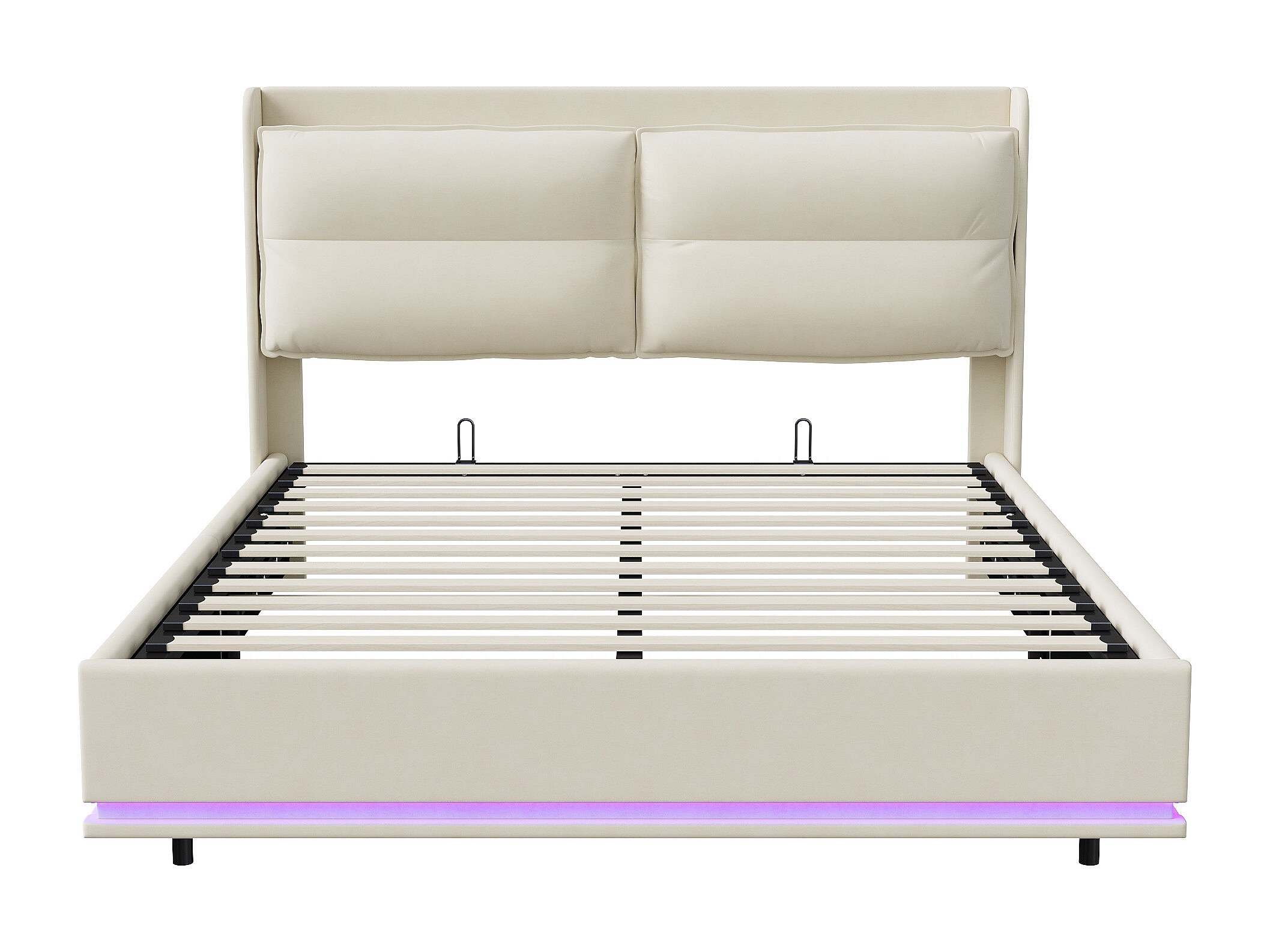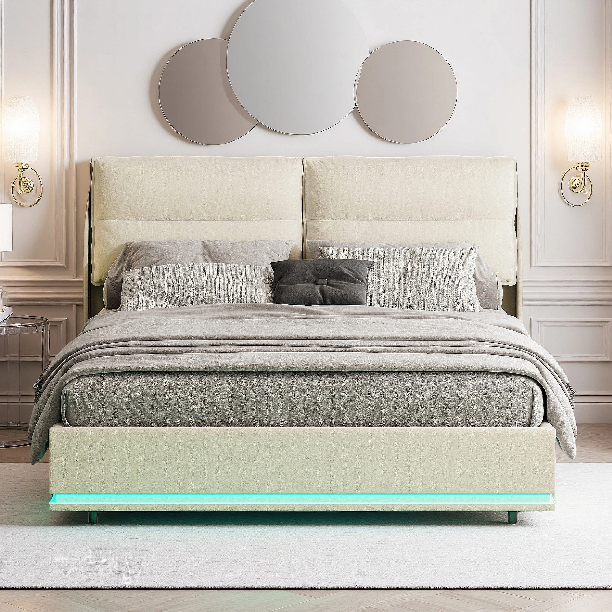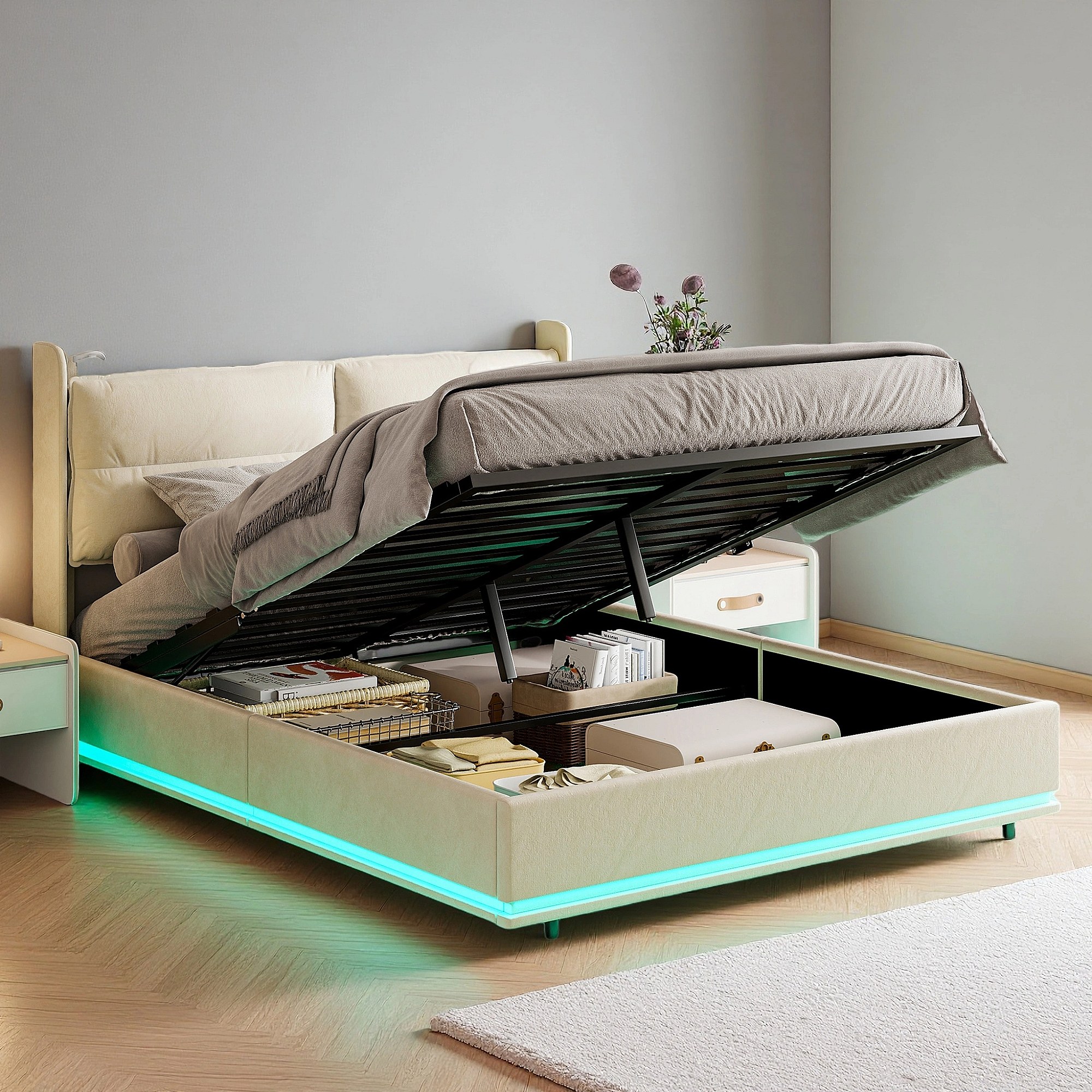Lit 160x200 cm - NEXU - LED - Chargement sans fil - lit 160x200 cm tissu en Velours - cadre de lit coffre 160x200 cm - blanc cassé
