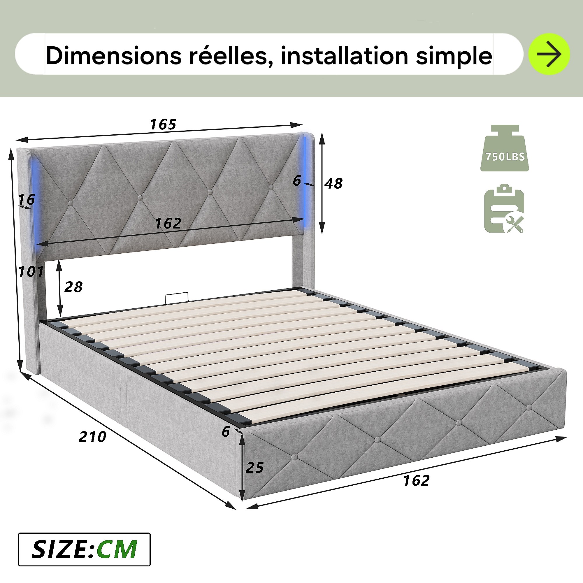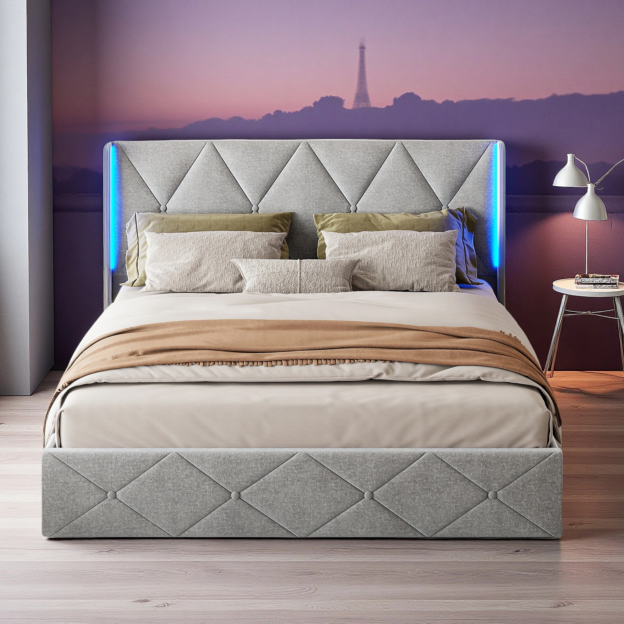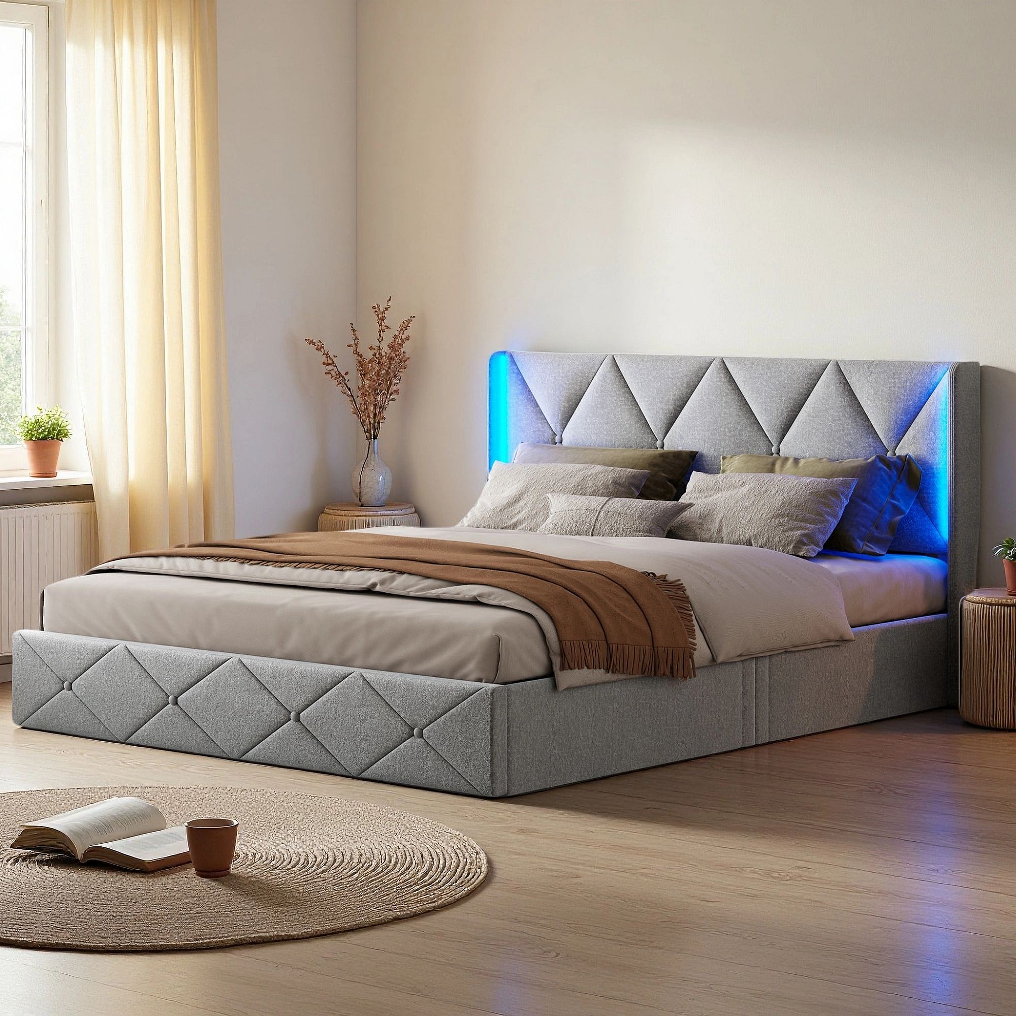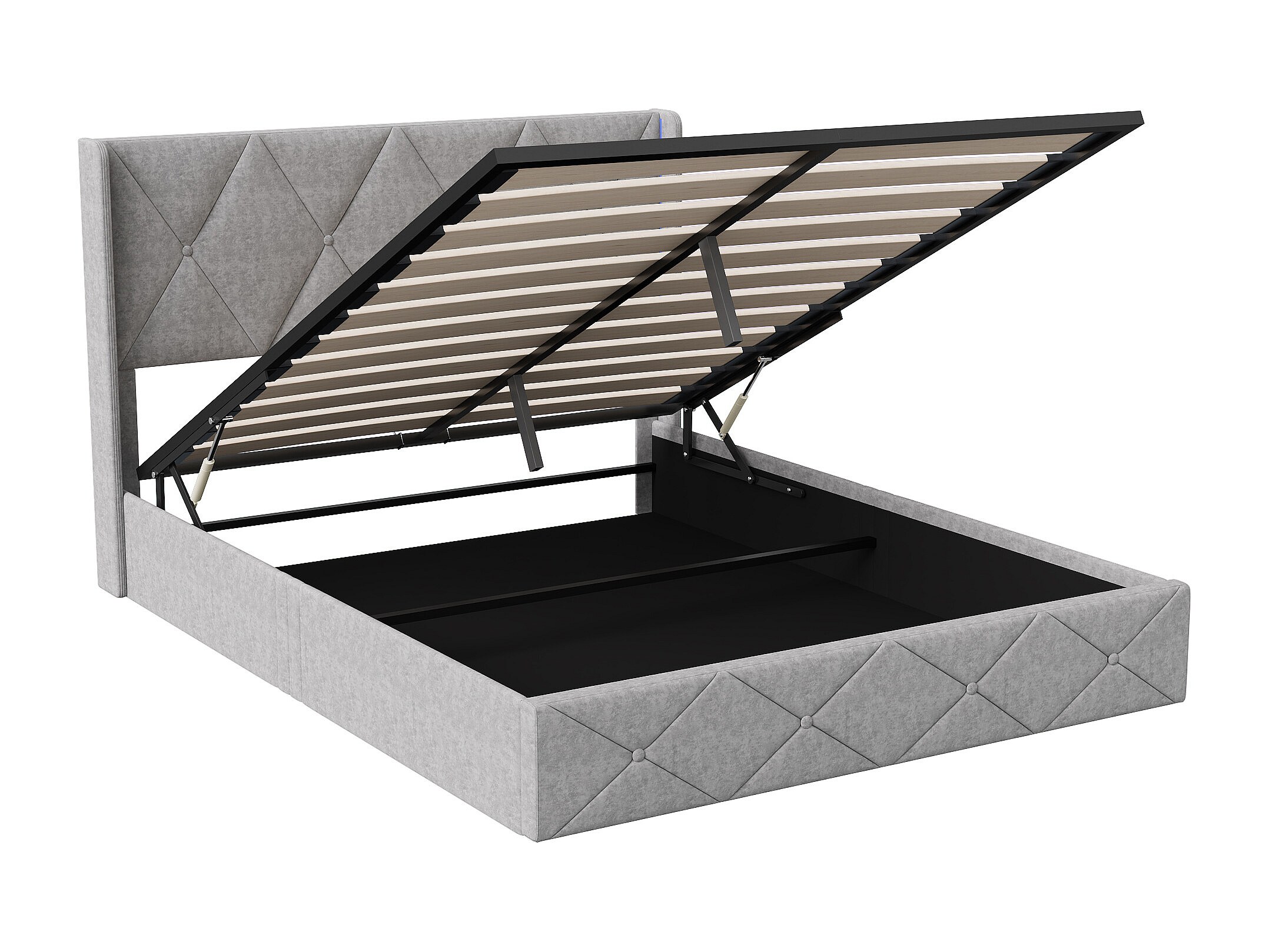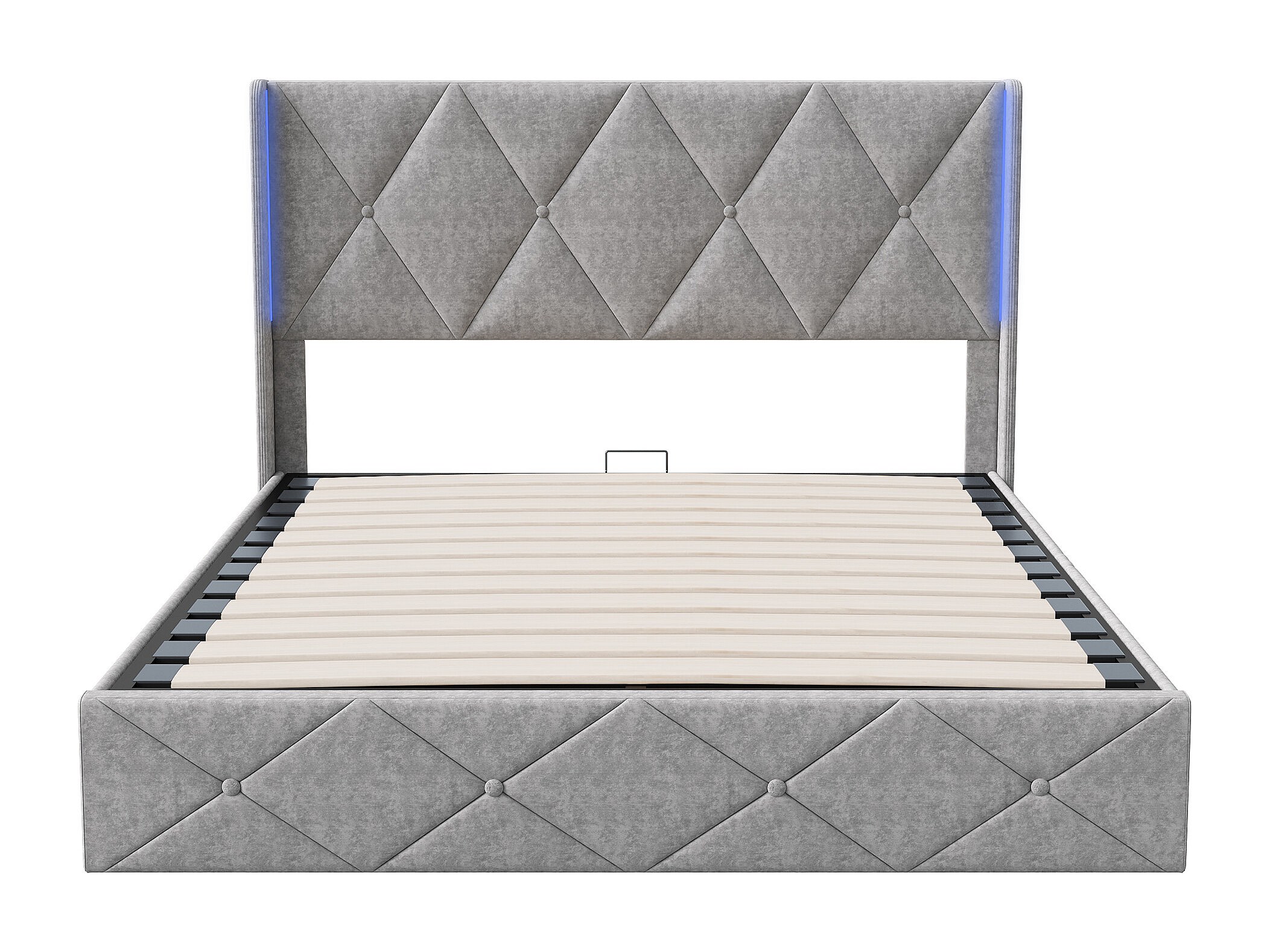 Lit 160x200 cm - NEXU - LED - sommier à lattes - tissu en velours - cadre de lit coffre 160x200 cm - gris glace