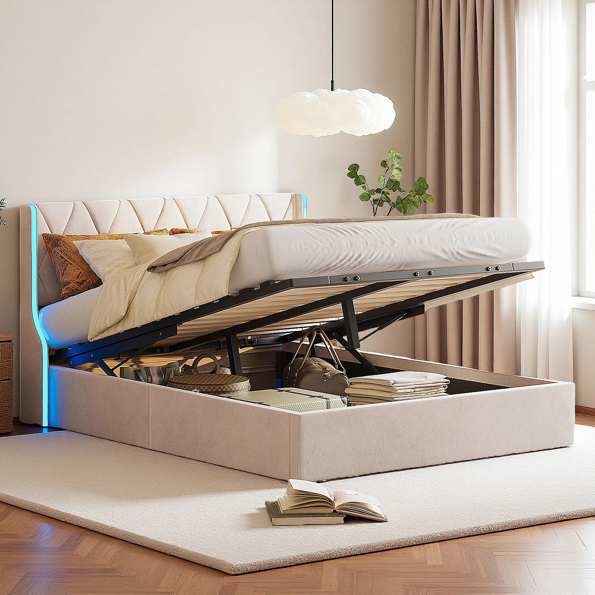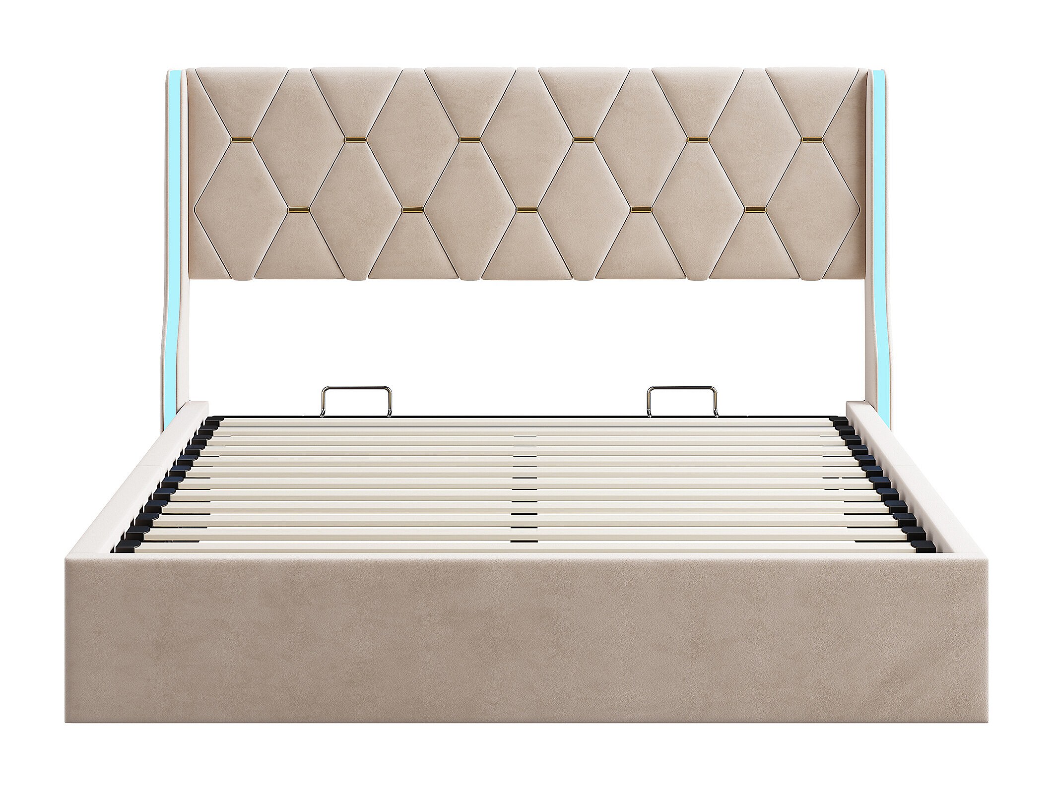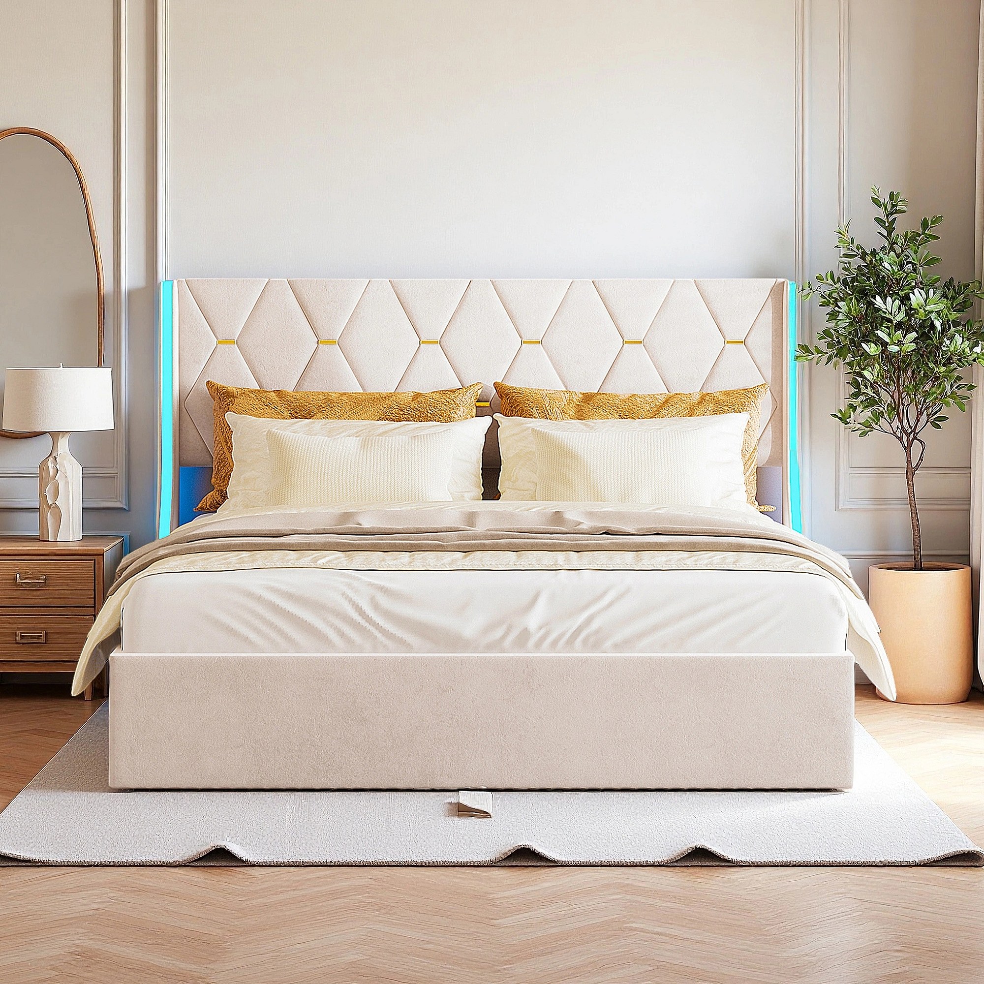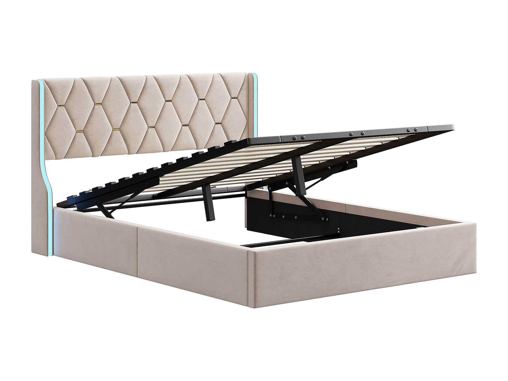 Lit 160x200 cm - NEXU - LED - tissu en velours - cadre de lit coffre 160x200 cm - beige