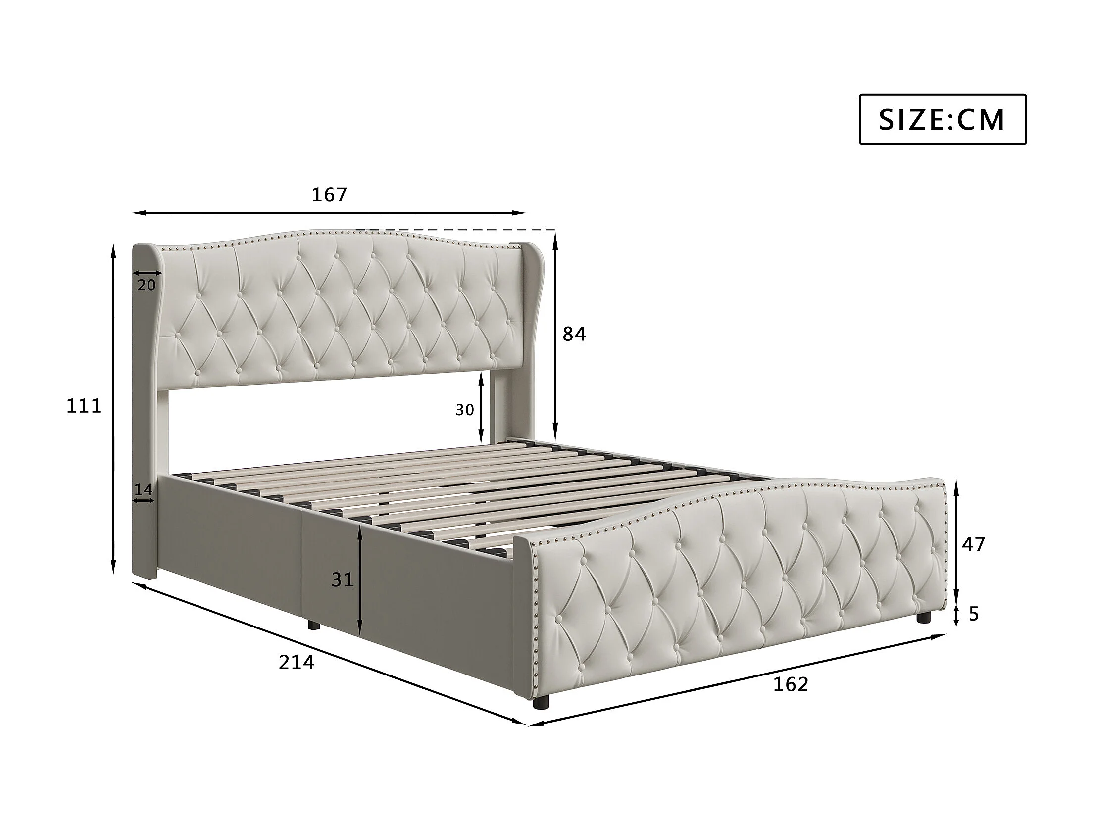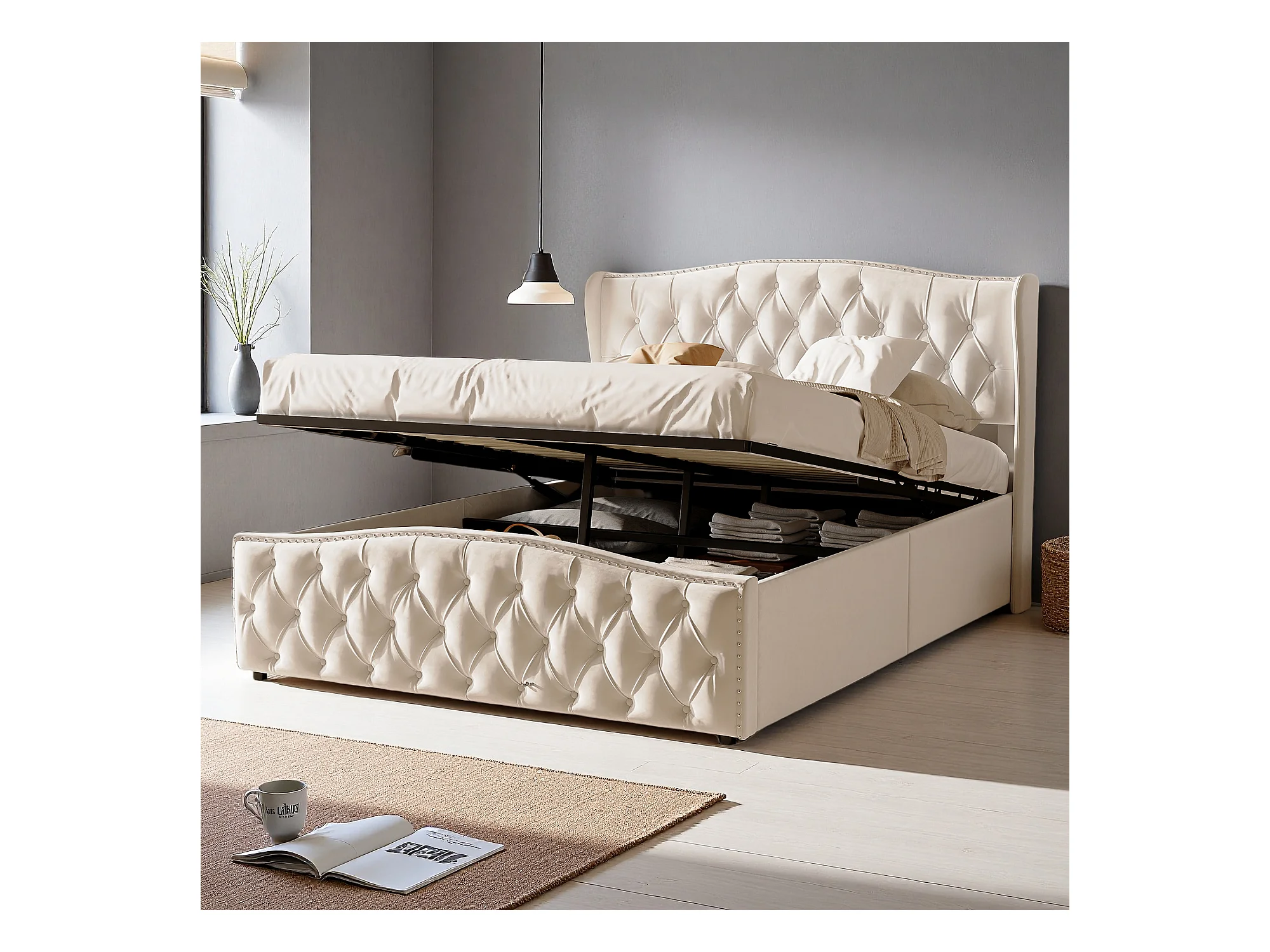 Lit capitonné 160x200 cm avec sommier à lattes - lit double 160x200 cm avec coffre de lit - cadre de lit adulte 160x200 cm - tissu en Velours - blanc cassé