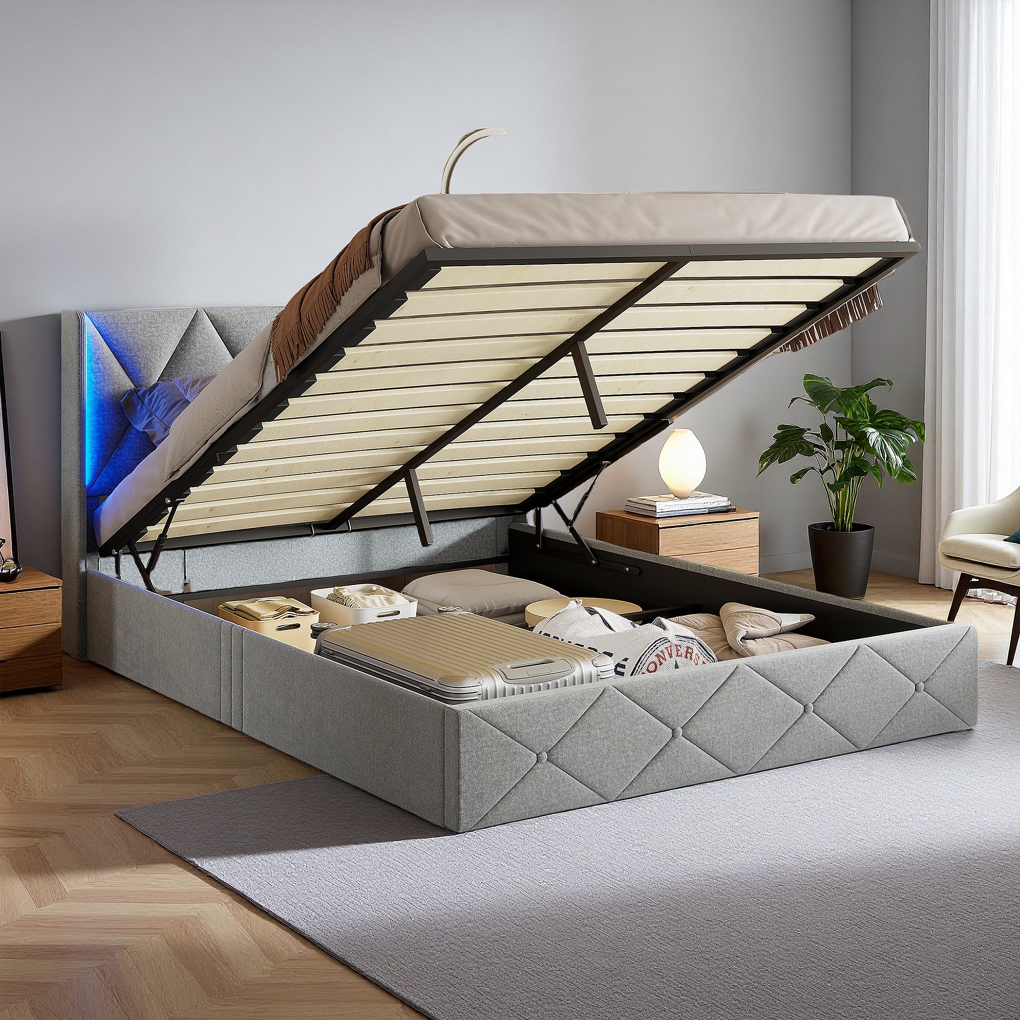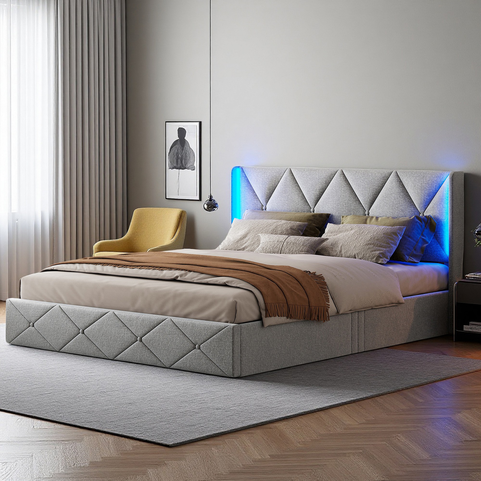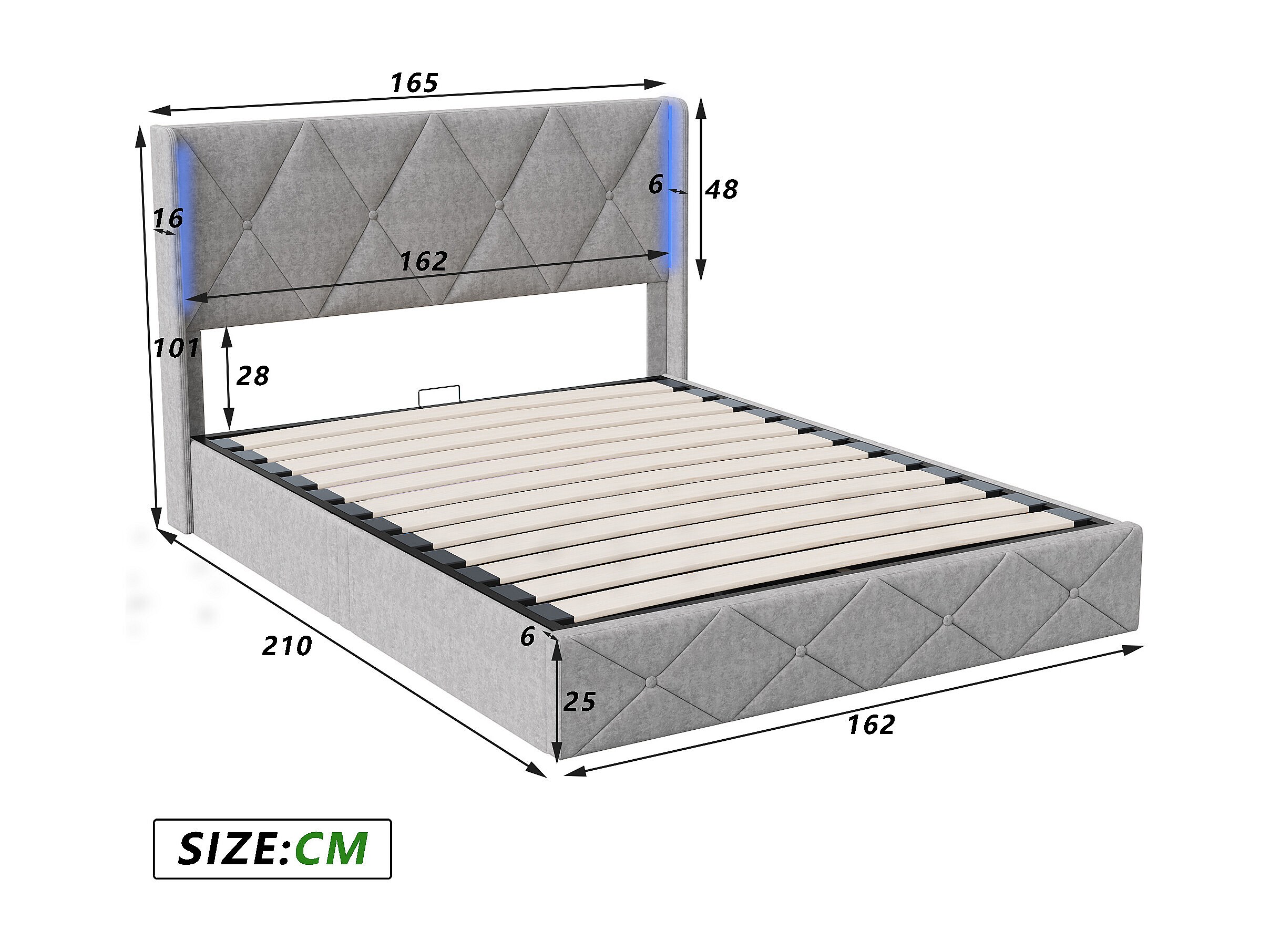 Lit 160x200 cm - NEXU - lit coffre 160x200 cm avec LED - cadre de lit adulte 160x200 cm avec sommier à lattes - tissu en velours - gris