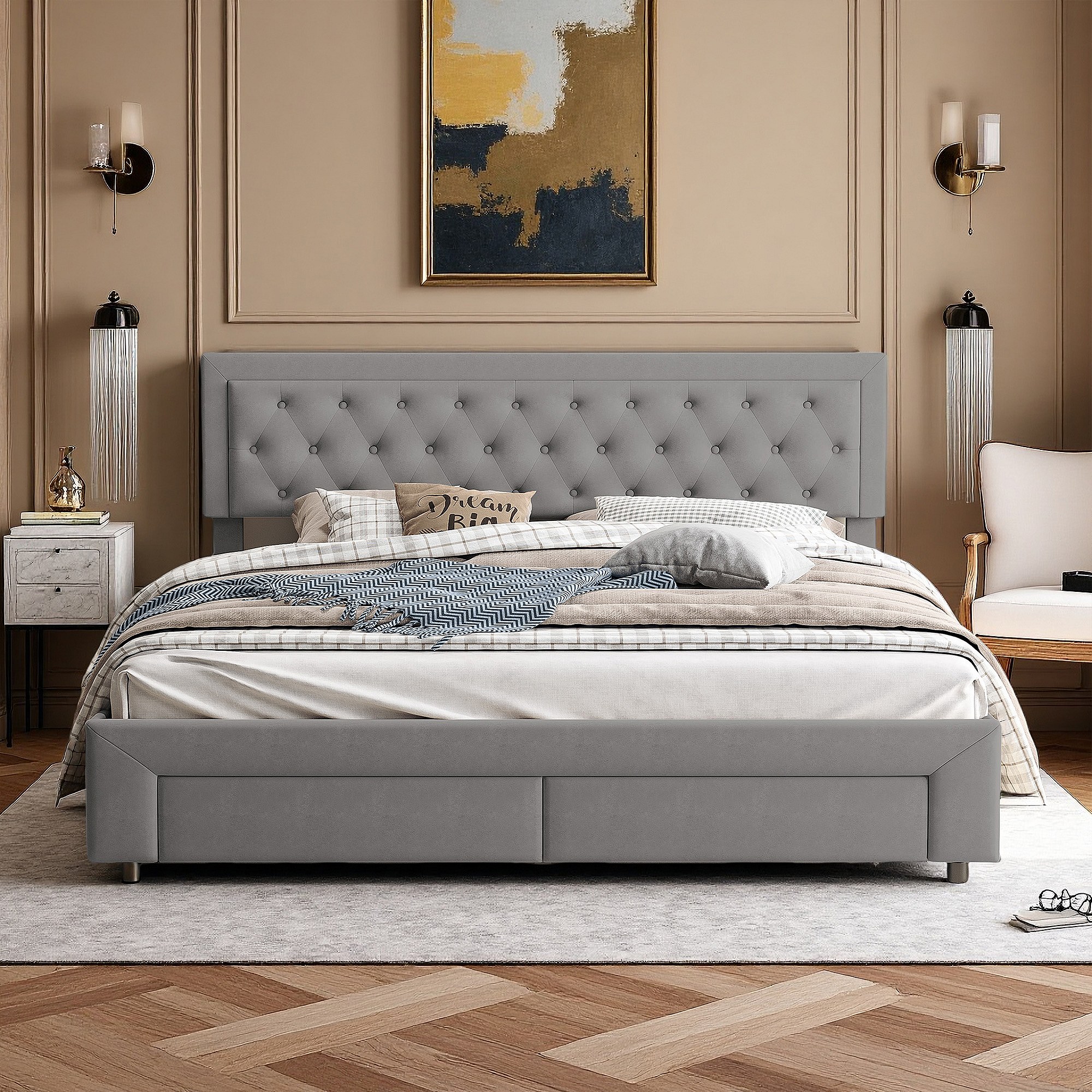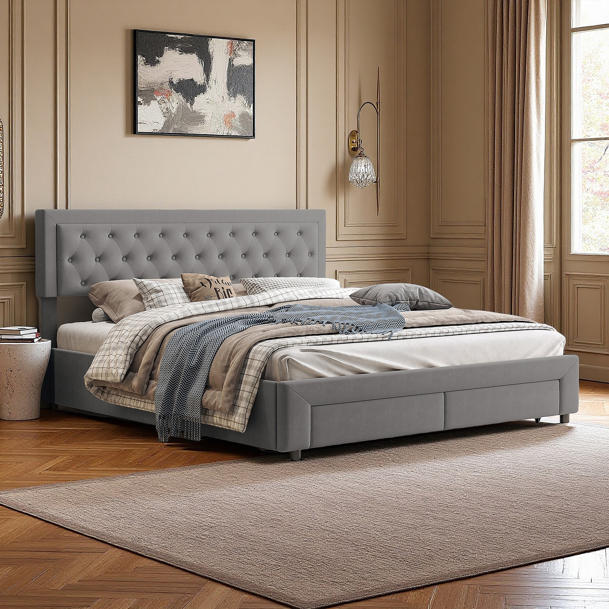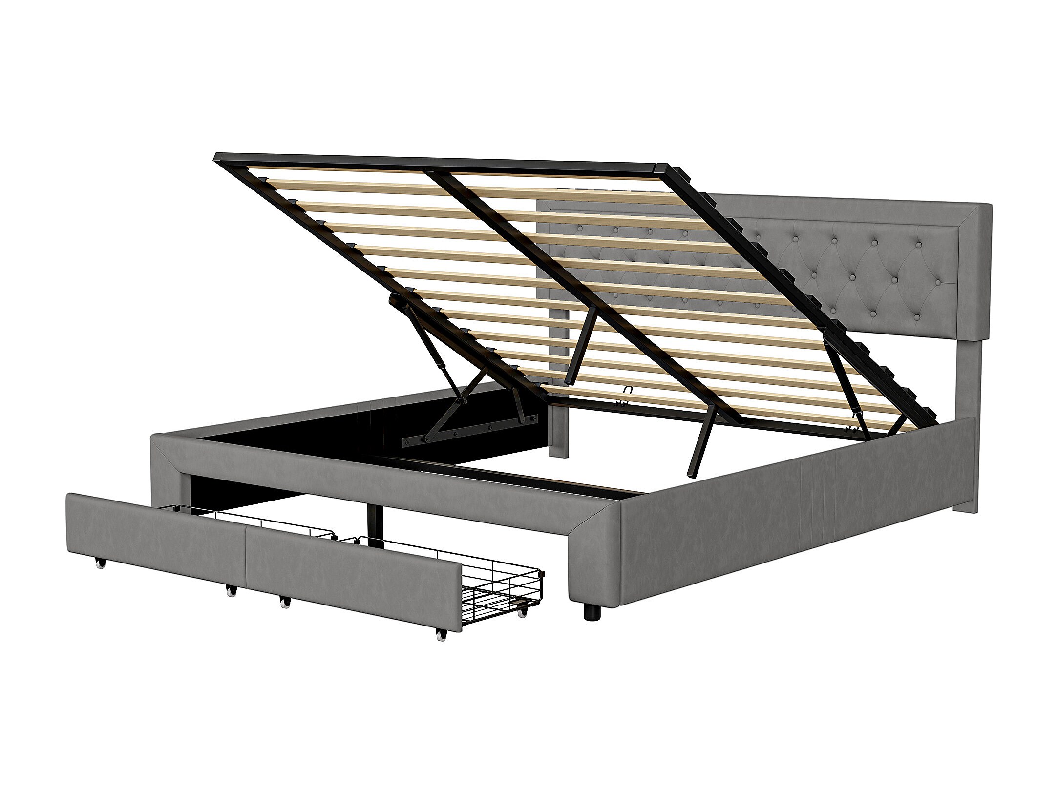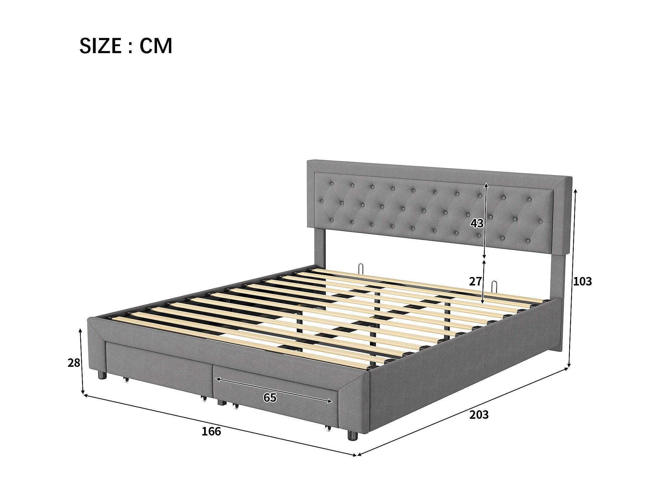 Lit 160x200 cm - NEXU - lit coffre 160x200 cm avec tiroir - lit adulte 160x200 cm avec sommier à lattes - tissu en velours - gris
