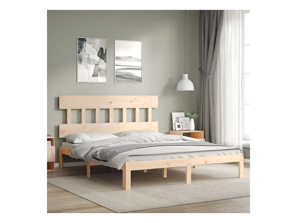 Lit-160x200 cm + tête de lit bois massif HOQW27322