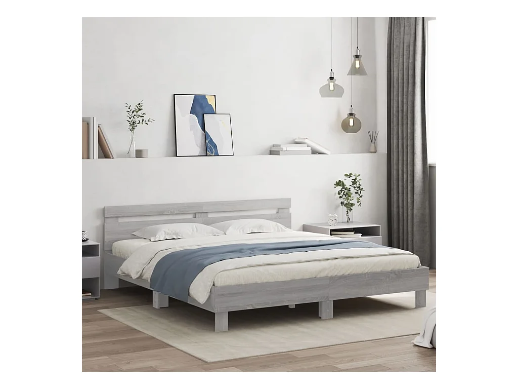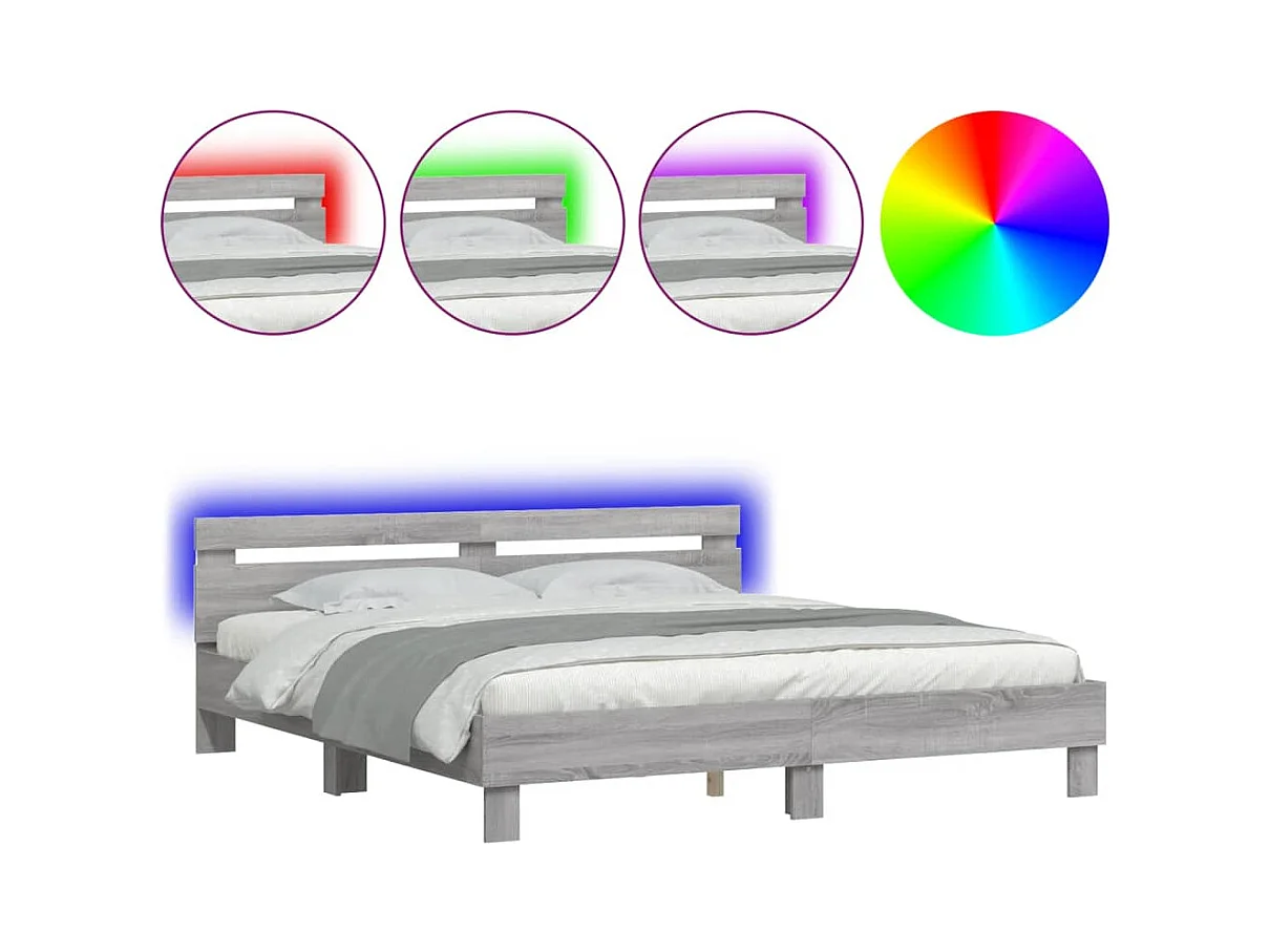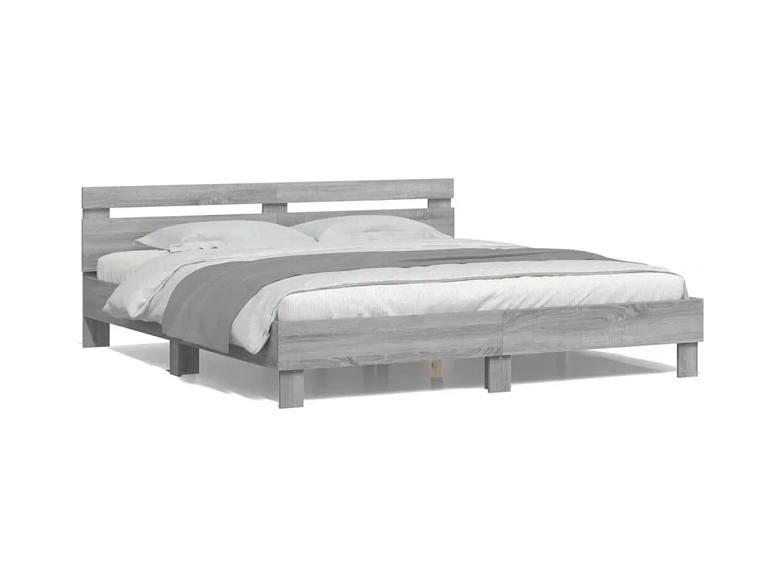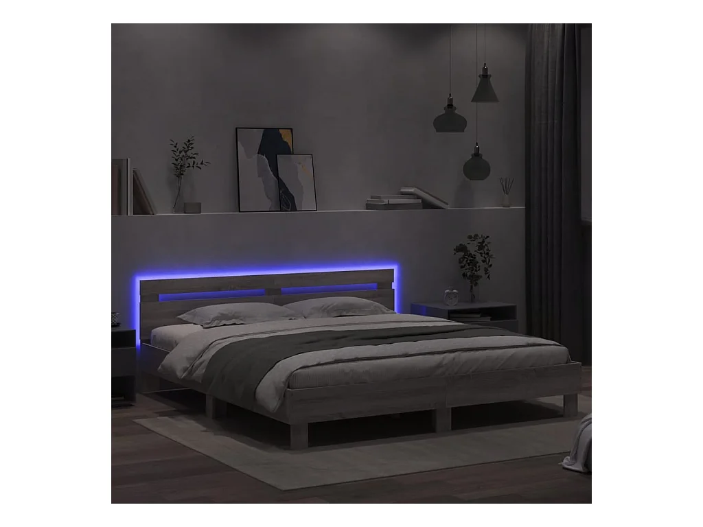 Lit-160x200 cm + tête de lit et LED sonoma gris HOQW59117