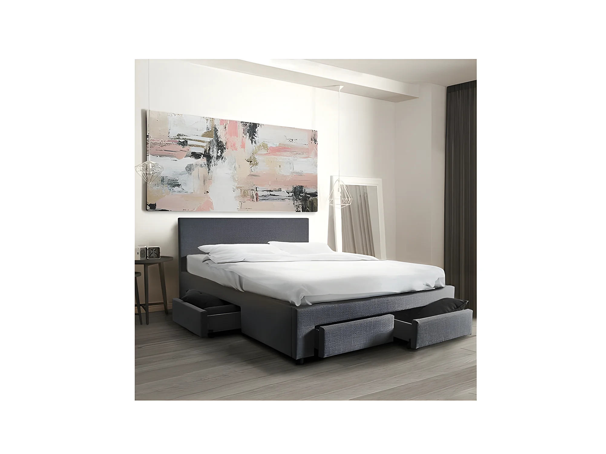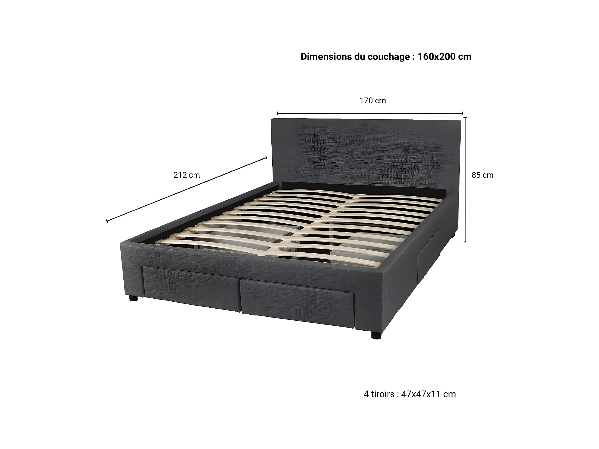 Lit LUGANO 160x200 + 1 sommier + 4 tiroirs / Gris foncé