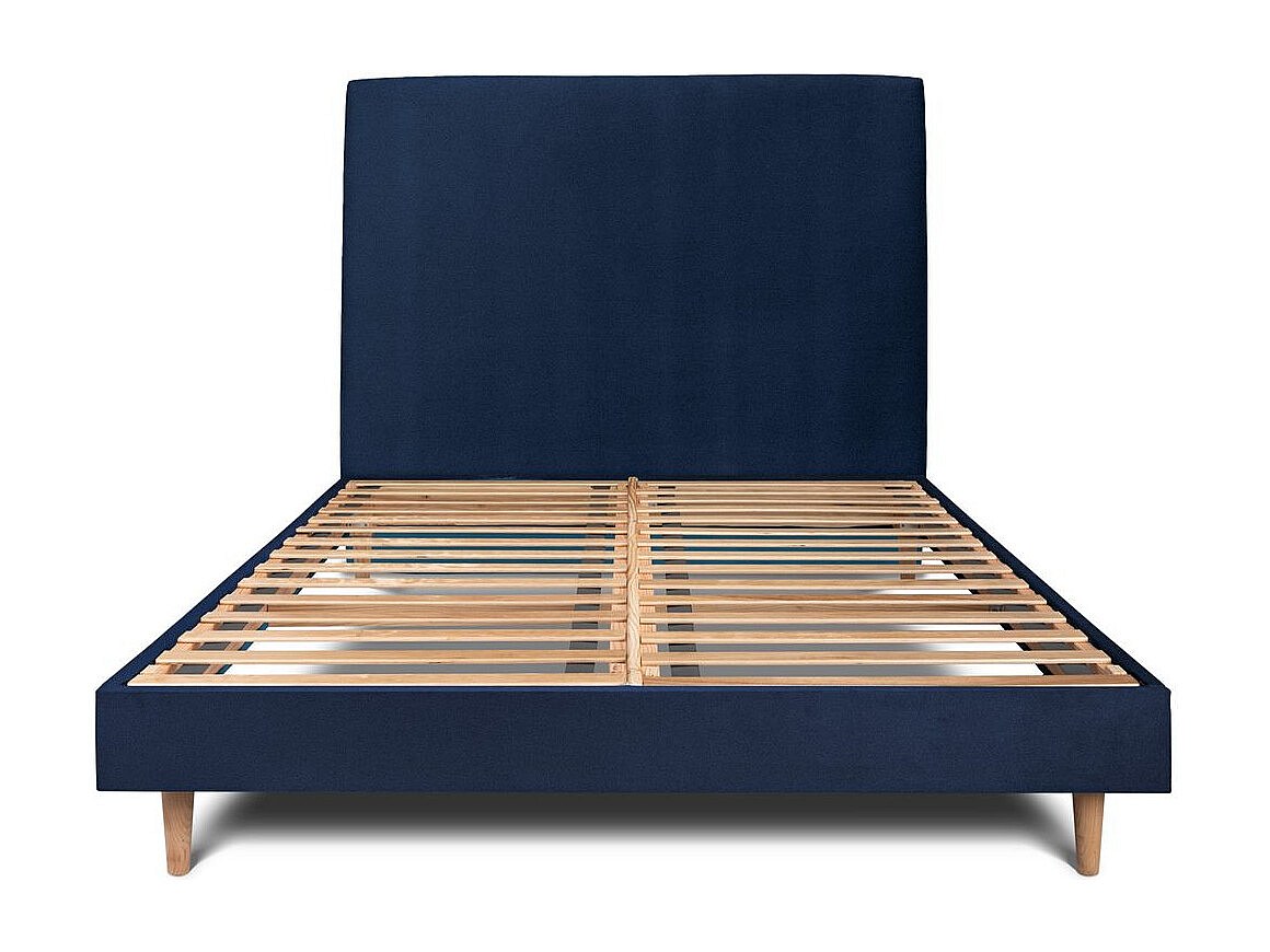 Lit 160x200cm avec tête de lit tapissier velours et sommier kit Bleu - Hauteur totale : 29cm