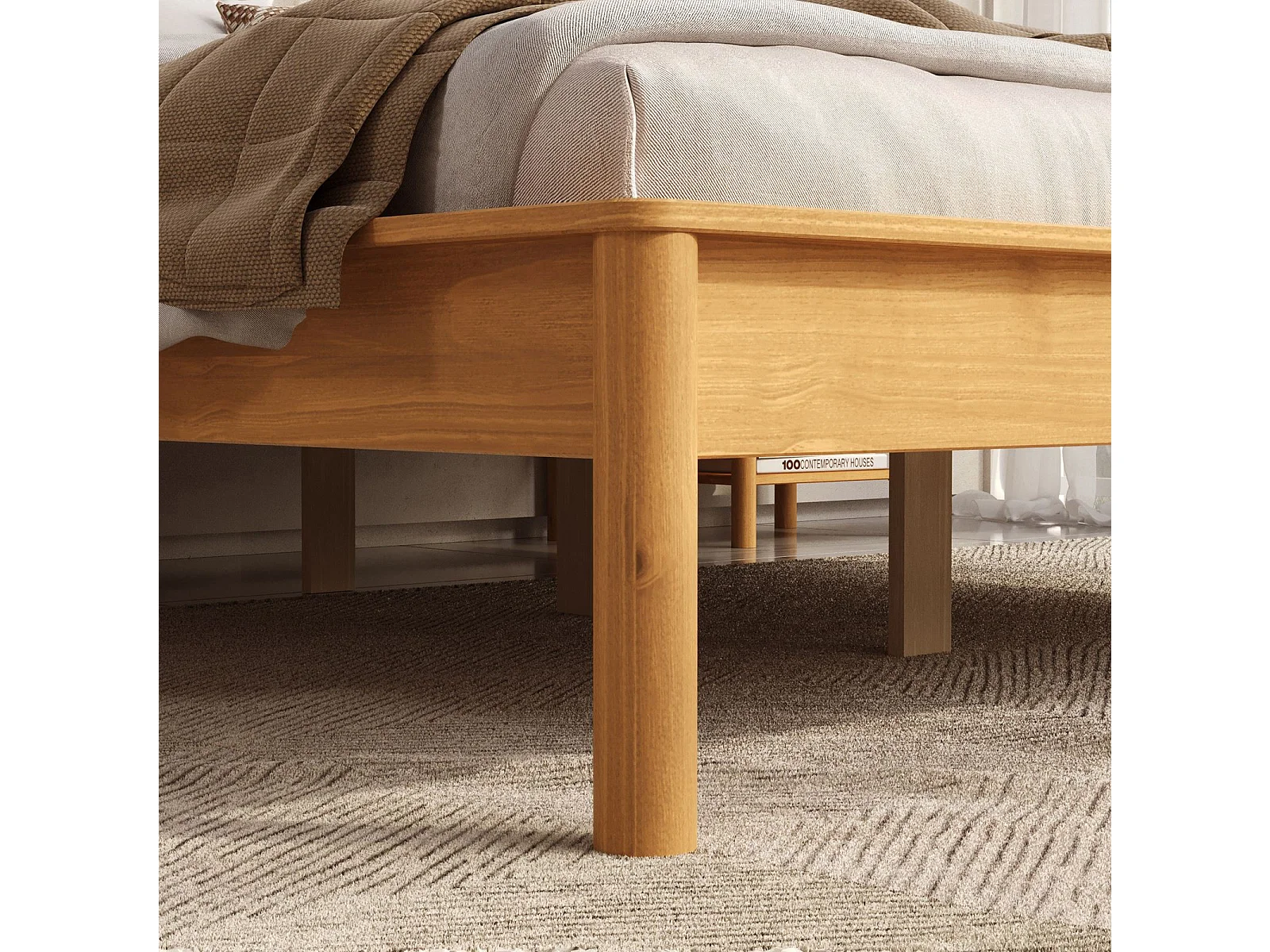 Lit 180 x 200 avec sommier APOANA en bois massif coloris chêne, cadre robuste avec tête de lit à barreaux, lit adulte double