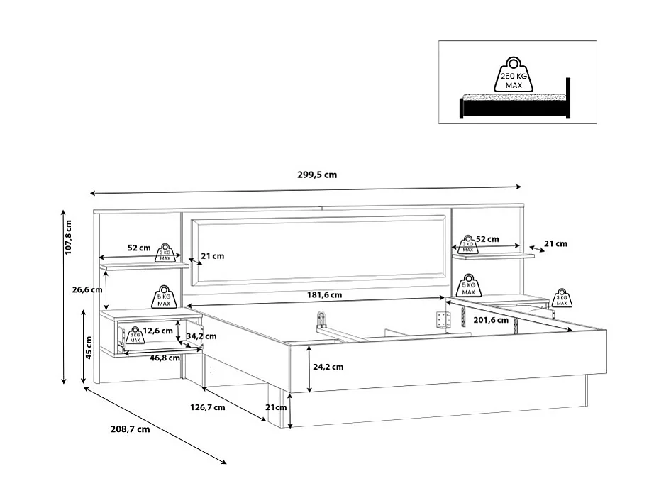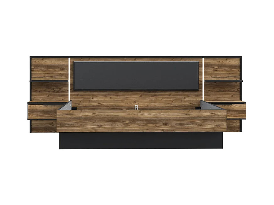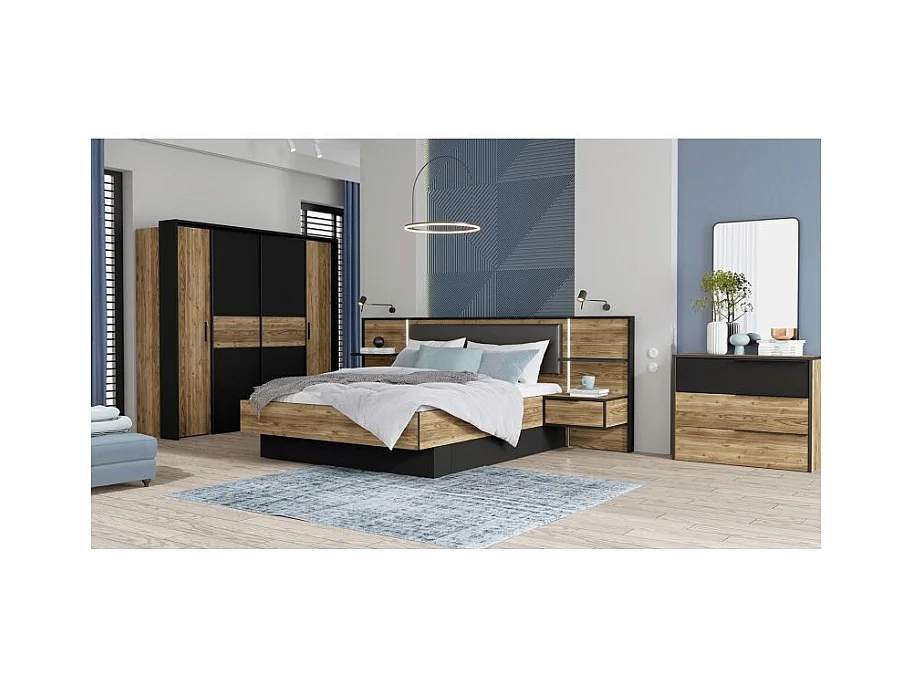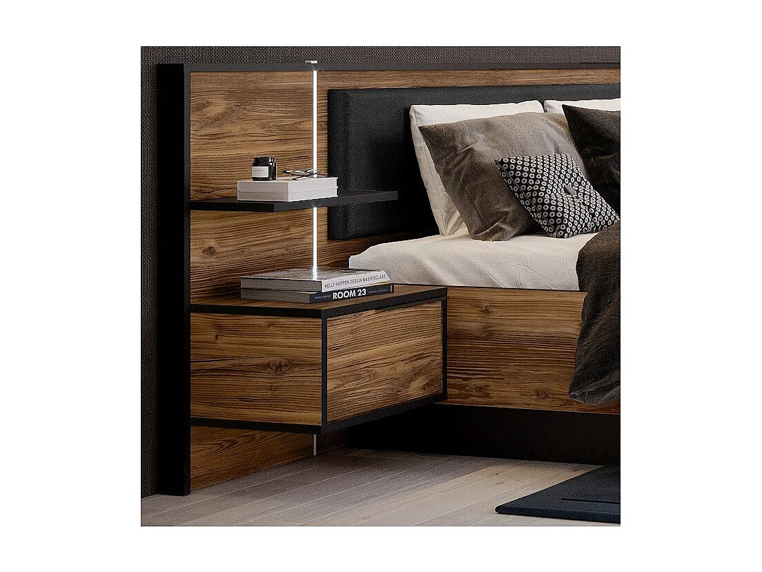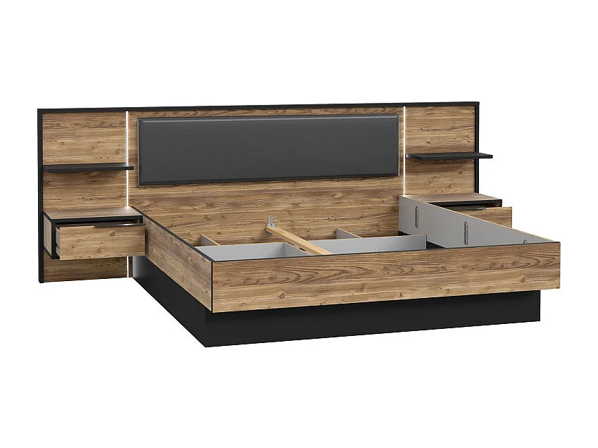 Lit 180 x 200 cm décor bois épicéa et noir avec éclairage LED - CELIA