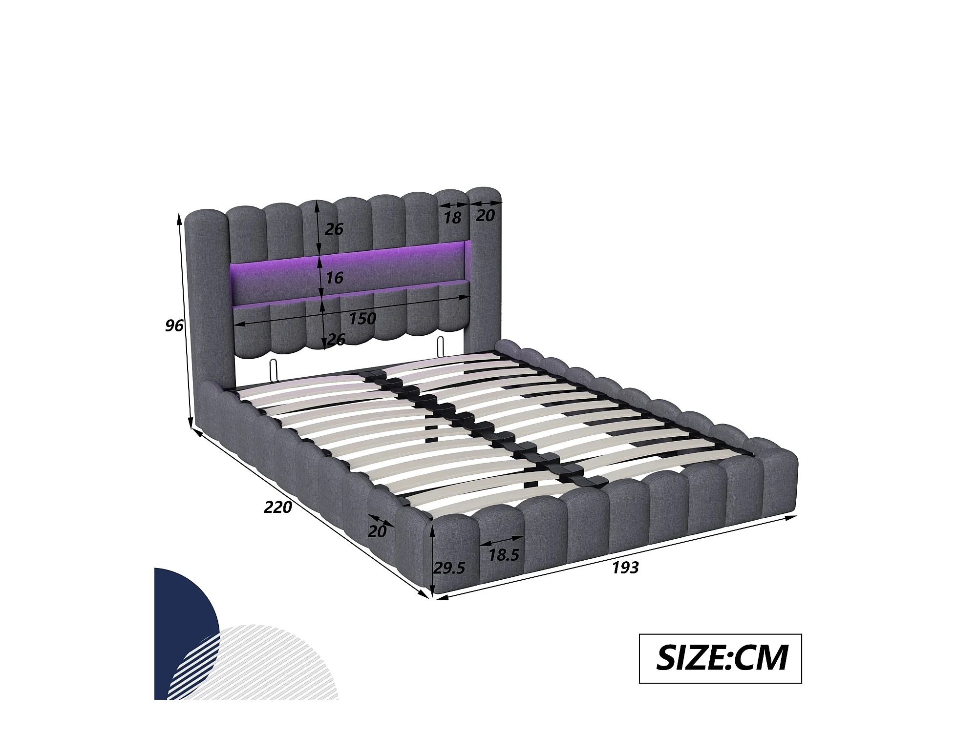 Lit 180x200 cm - NEXU - lit double 180x200 cm avec sommier à lattes - LED - USB - lit adulte 180x200 cm tissu en Lin - cadre de lit coffre 180x200 cm - gris