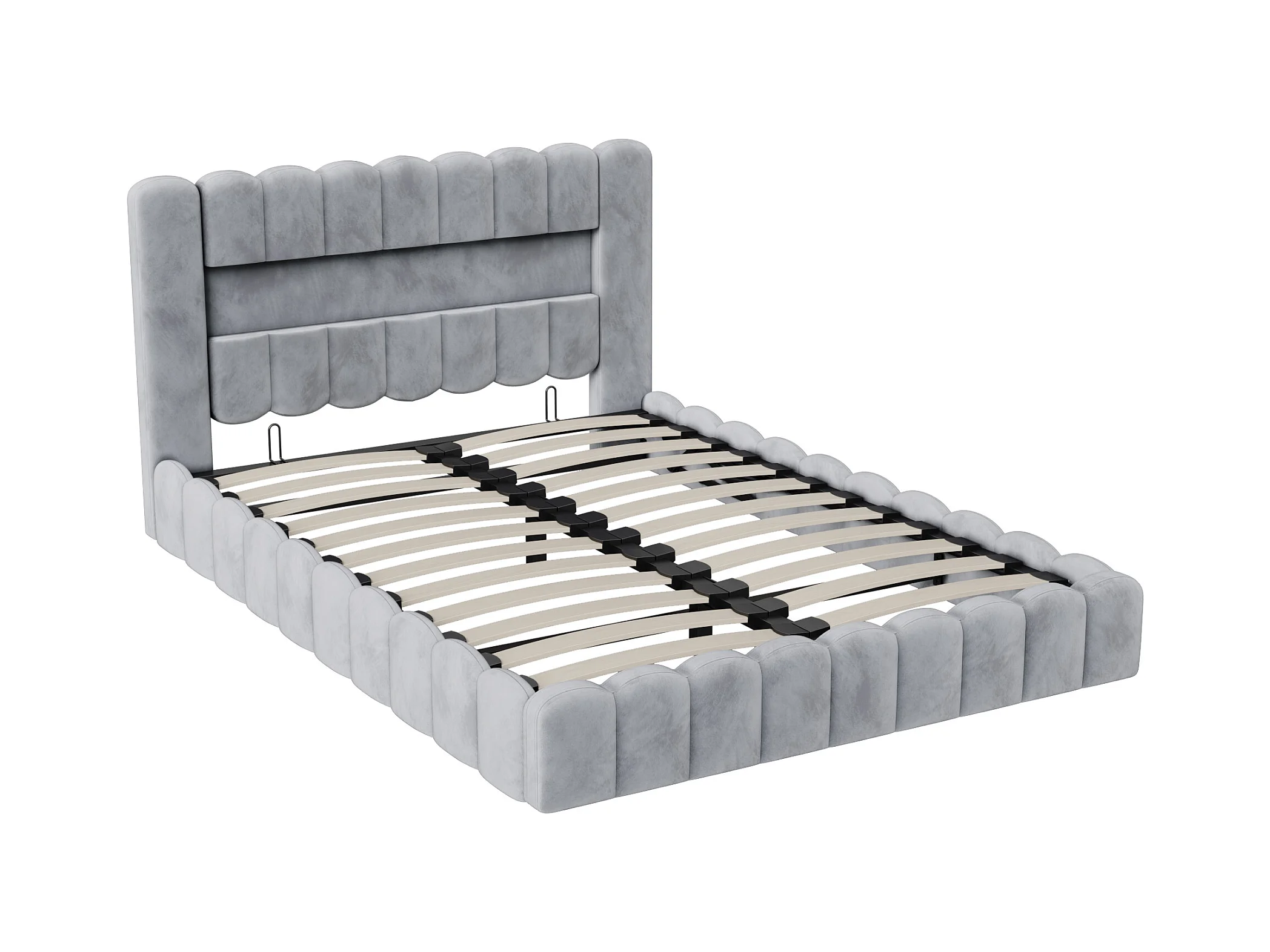Lit double 180*200cm, chargement USB-avec lumière LED-tige de pression d'air-avec coffre de lit, gris, velours