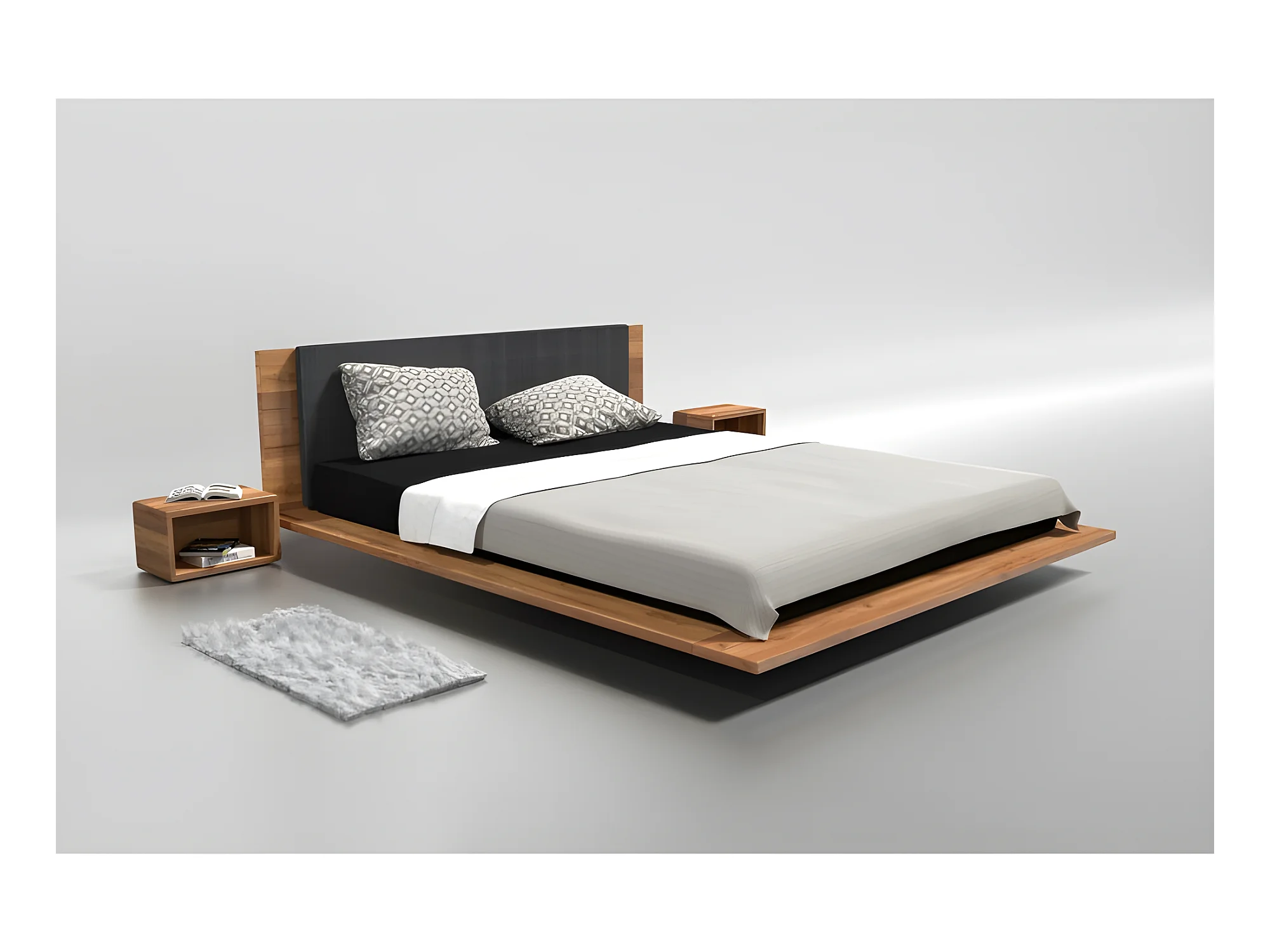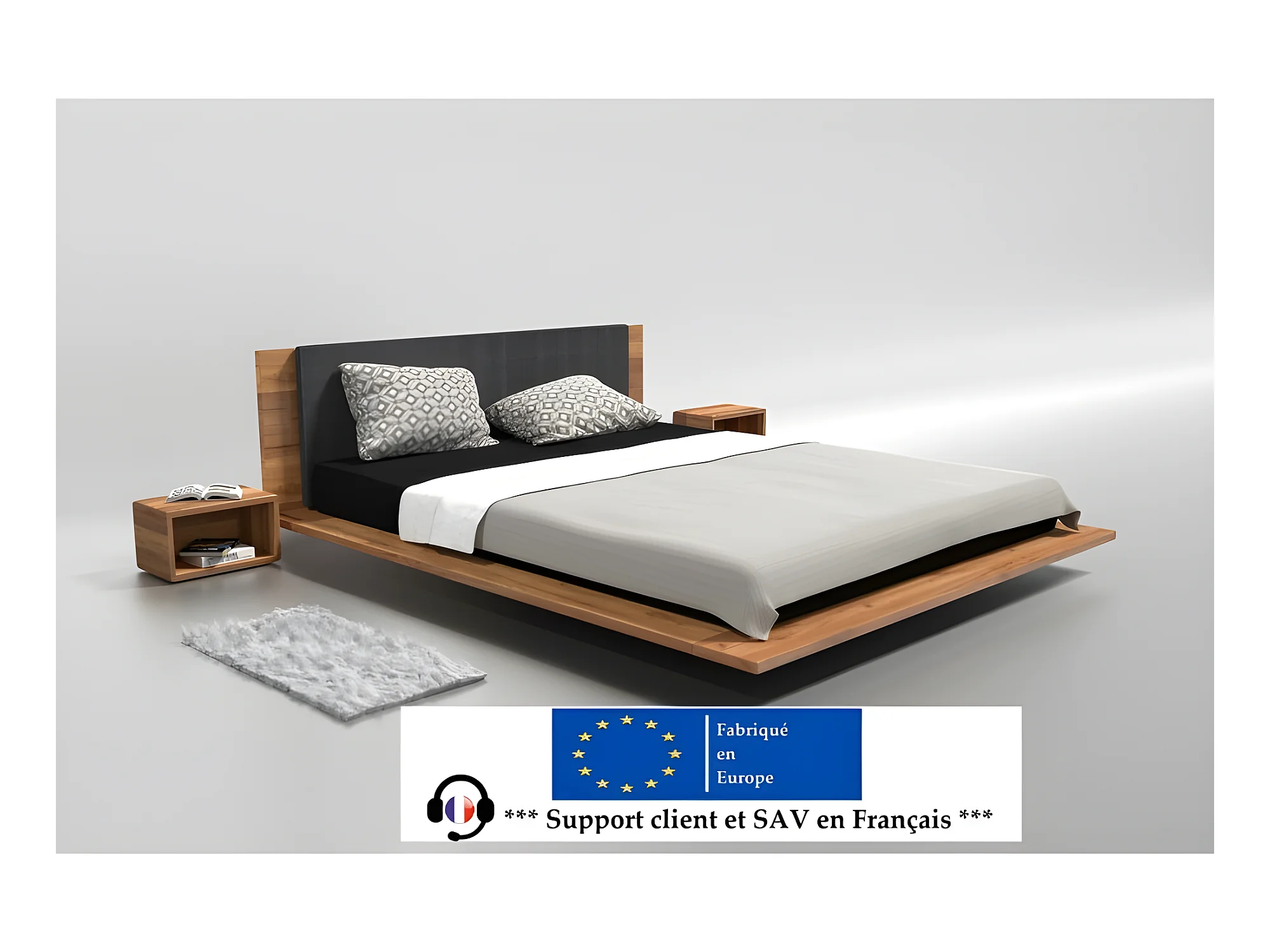 Lit 2 personnes pour adulte 180x200cm avec tête de lit robuste modéle KUZUM Couleur Chêne