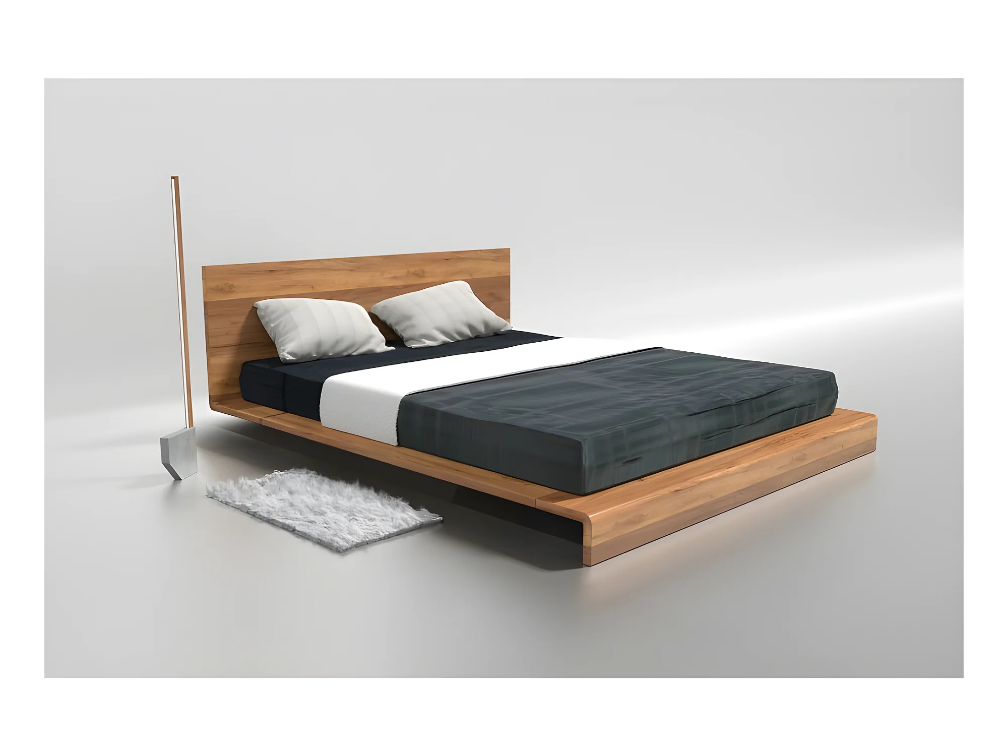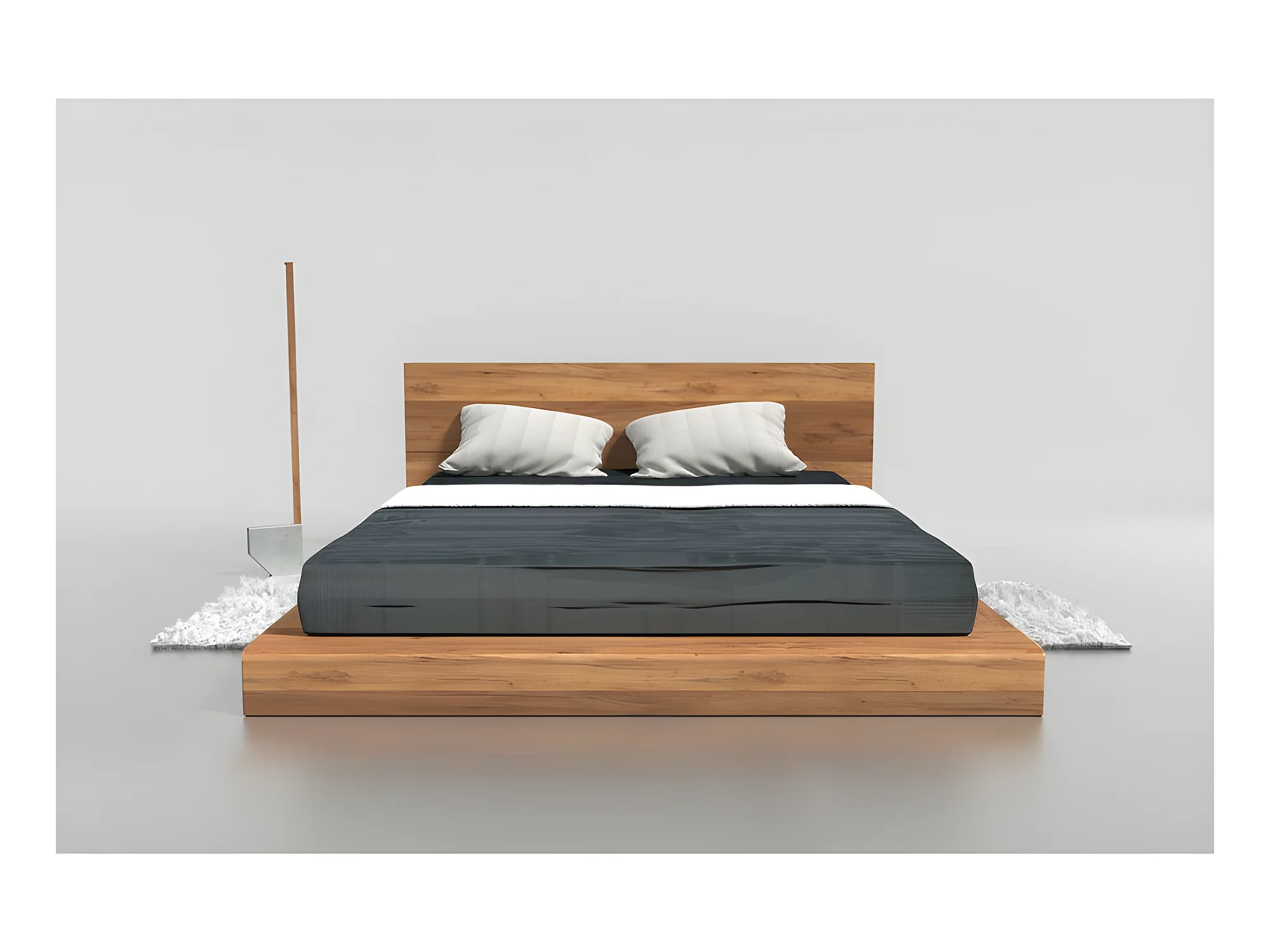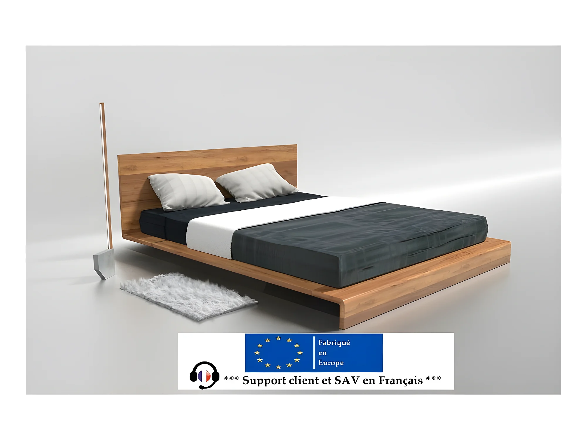 Lit 2 personnes pour adulte 200x200cm avec tête de lit robuste modéle PAULI Couleur Chêne