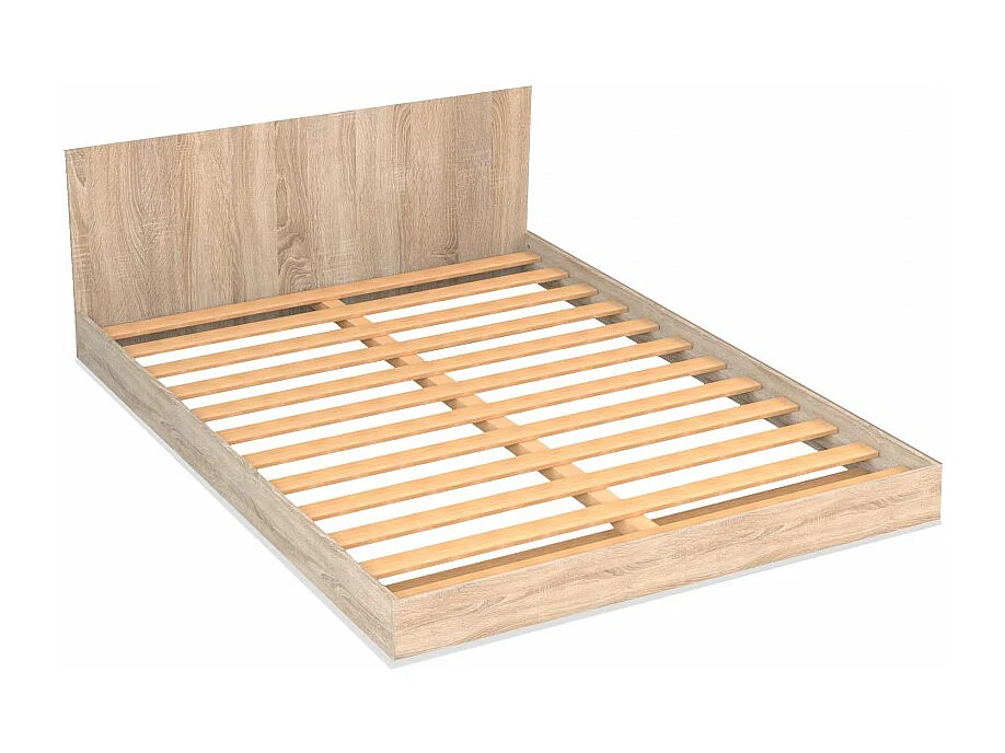 Lit 2 places 140x190cm Couleur chêne LIFA inclus sommier et tête de lit