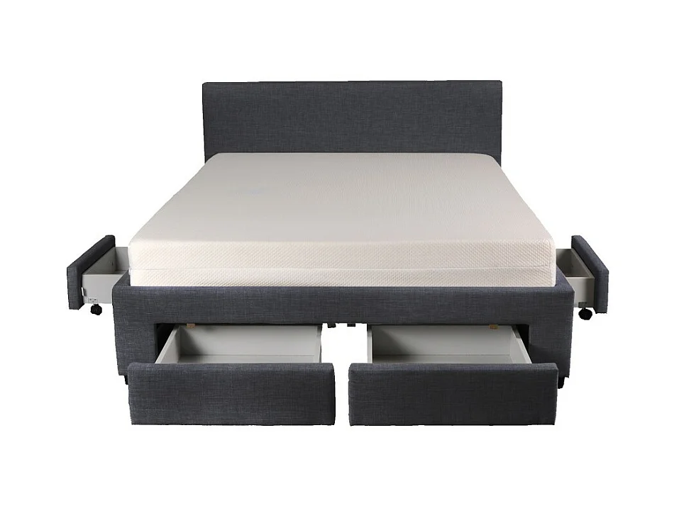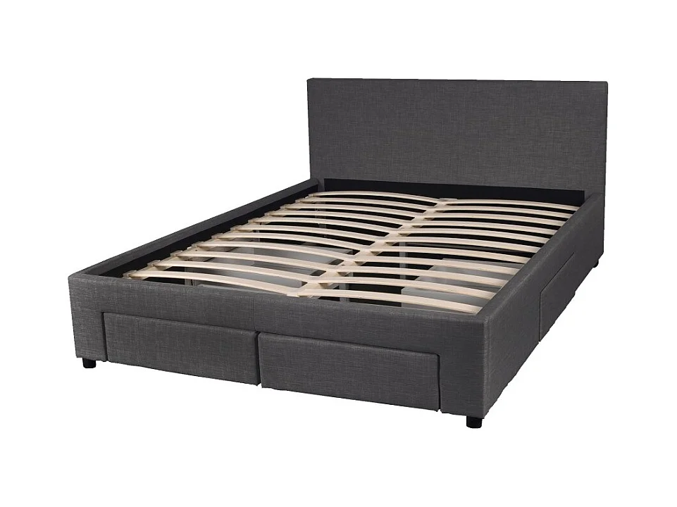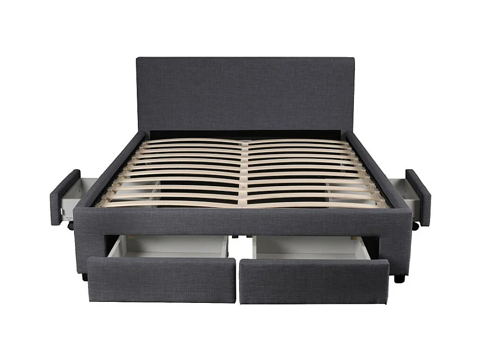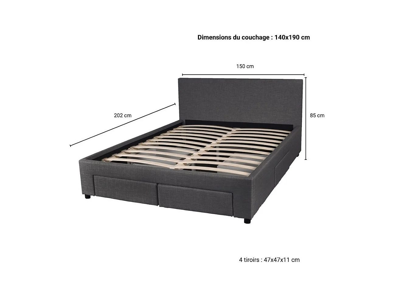 Lit 2 places 140x190cm Tissu Gris foncé LOUGNE inclus sommier et 4 tiroirs