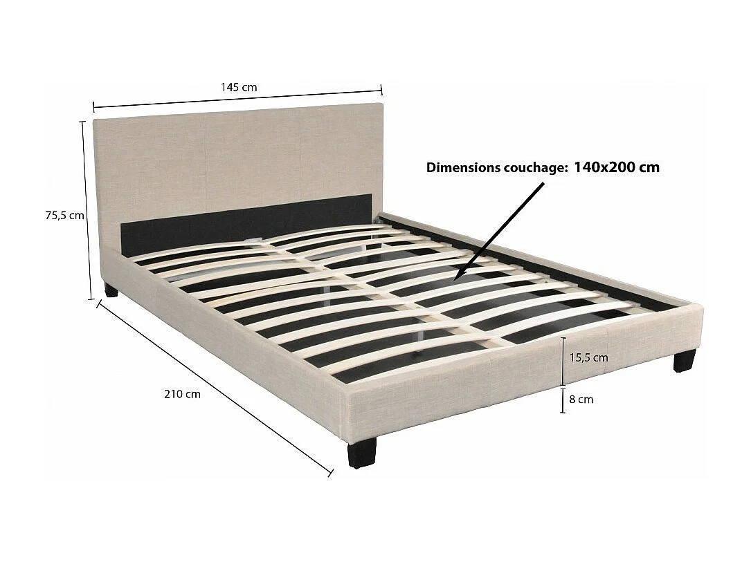 Lit 2 places 140x200cm Tissu Beige avec sommier DUSIN