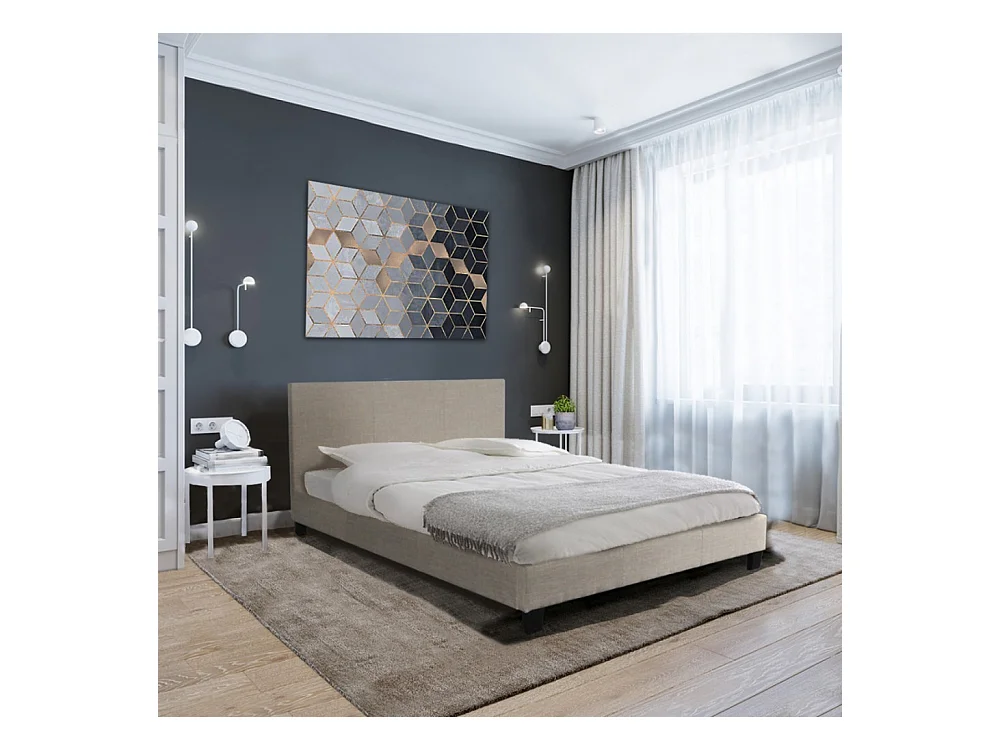 Lit 2 places 160x200cm Tissu Beige avec sommier DUSIN